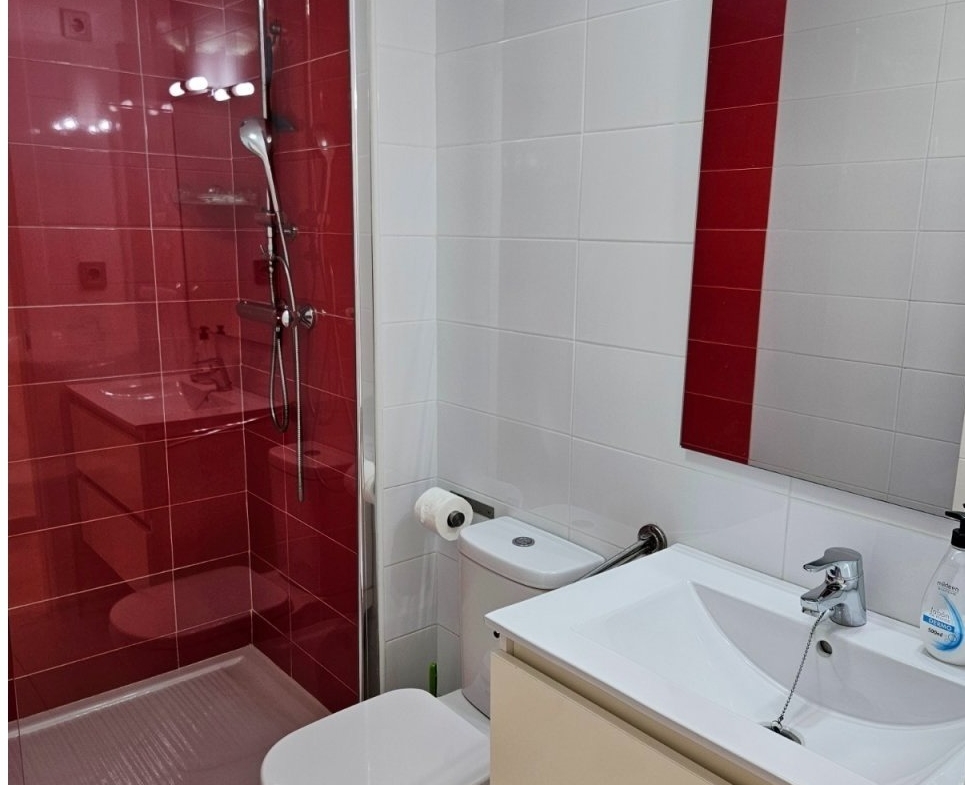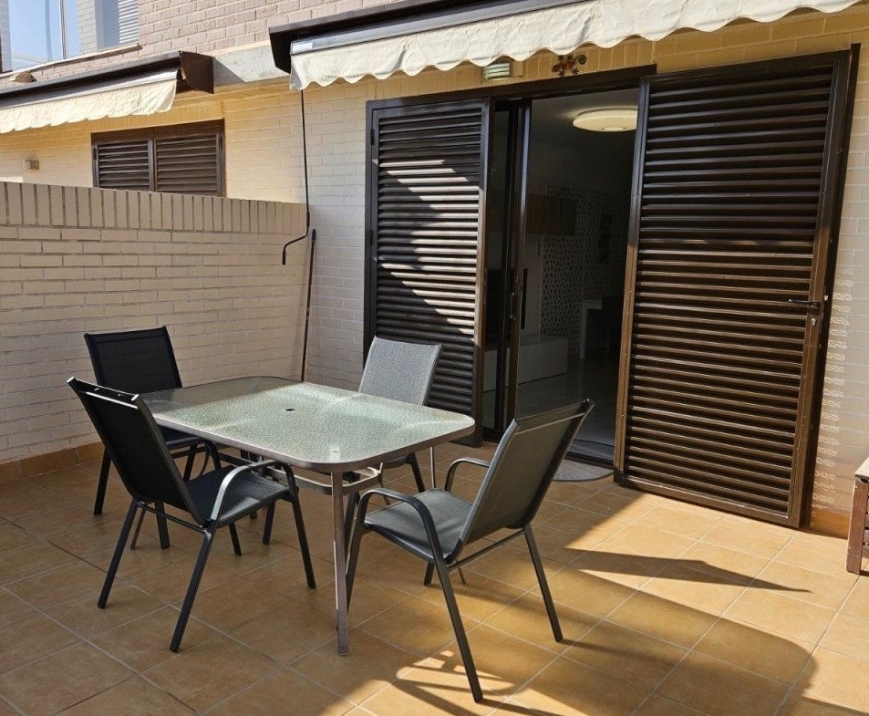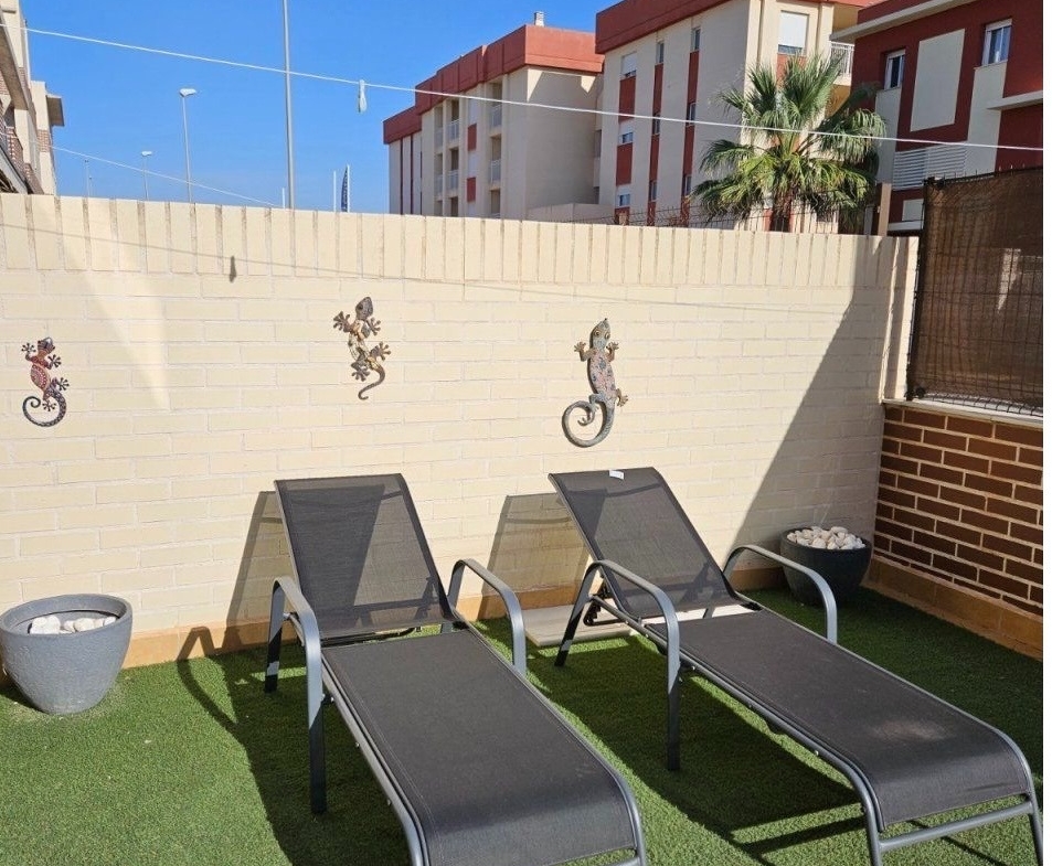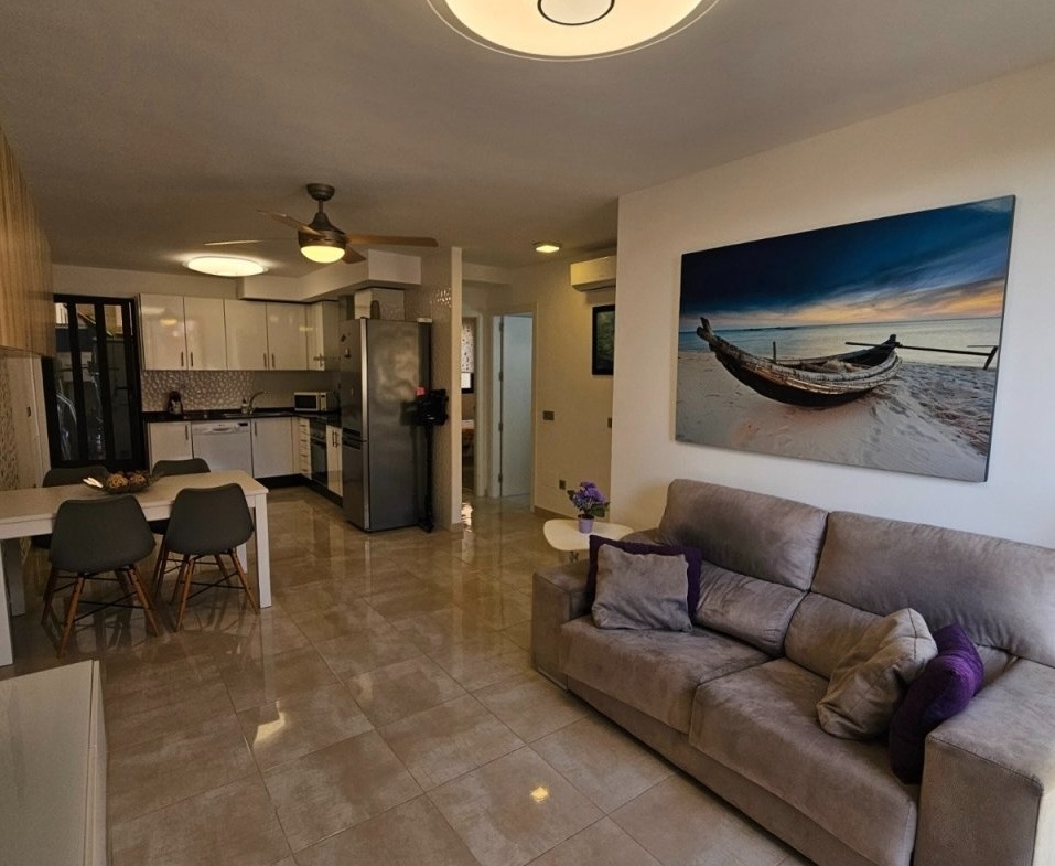 This super second-hand apartment features 2 bedrooms, 2 bathrooms, a living room, equippedkitchen, and a modern bathroom. Enjoy a spacious private terrace with direct access to acommon area that includes an outdoor pool, gym, sauna, and indoor jacuzzi.