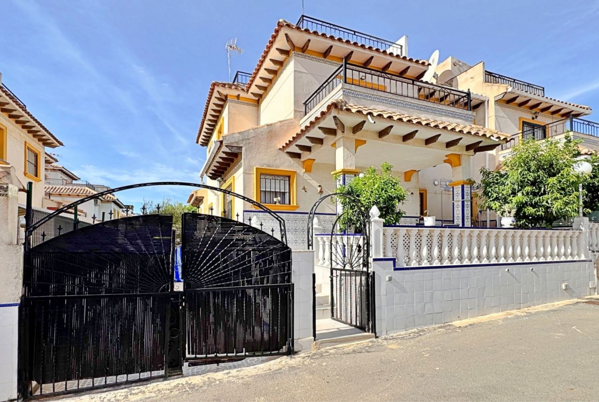 Semi-detached villa with solarium and private plot in a gated community with a swimming pool.