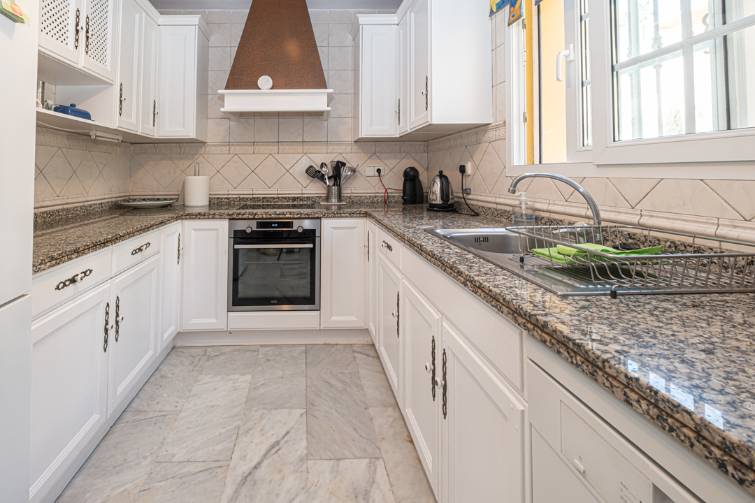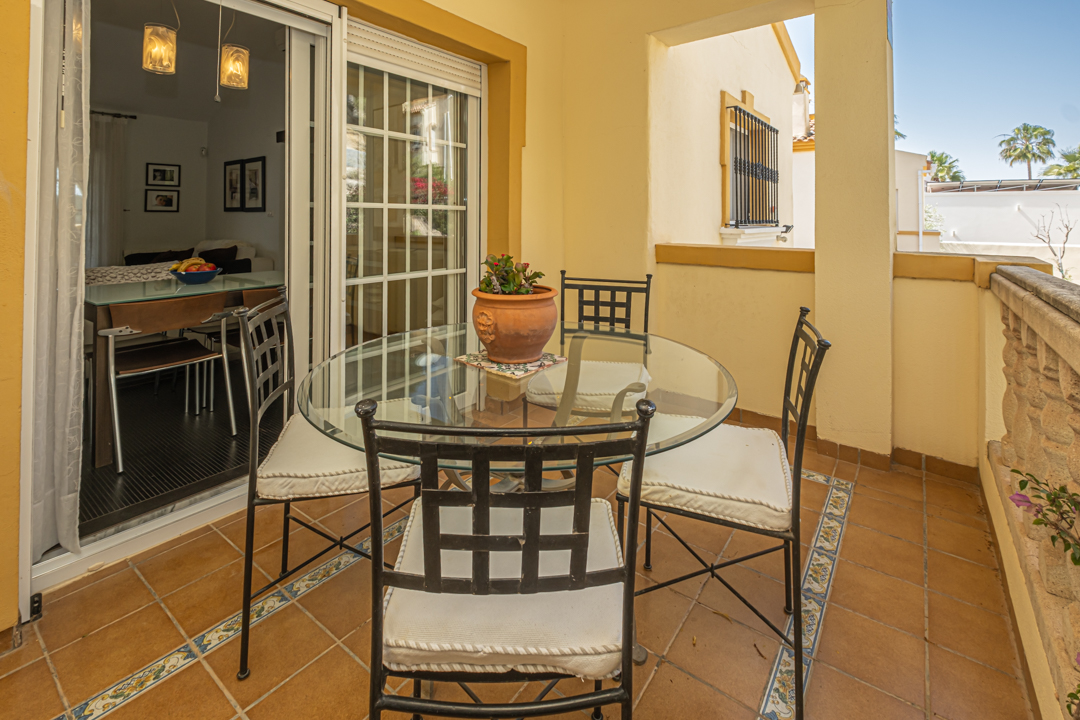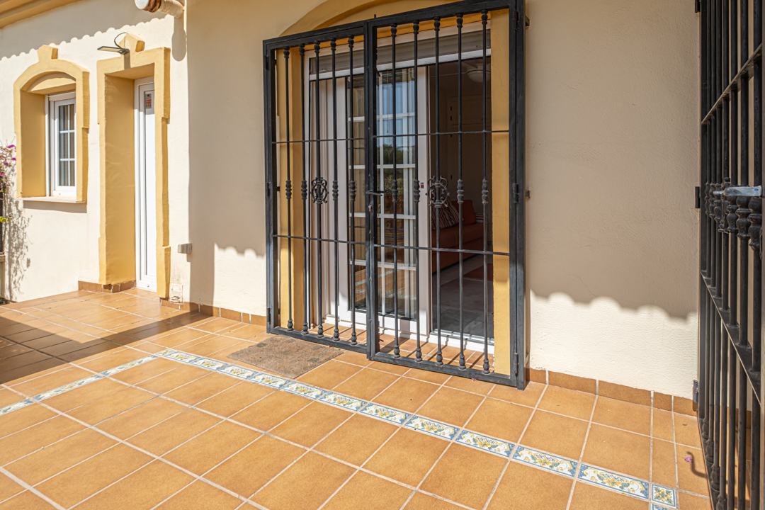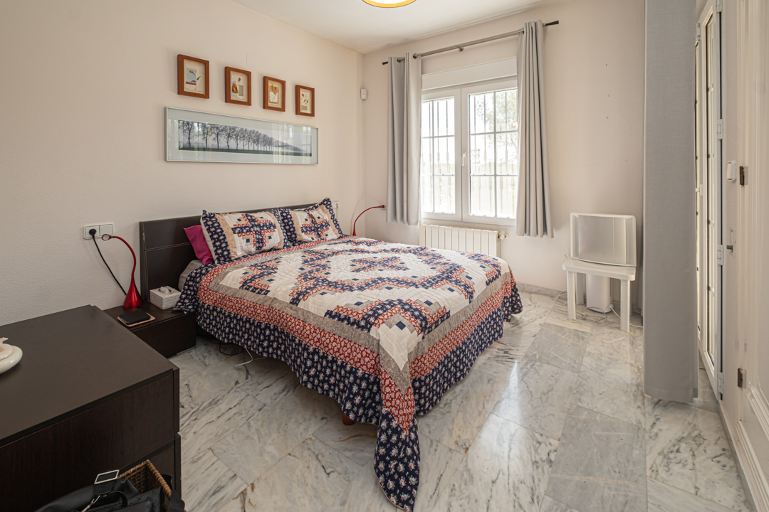 3 double bedrooms all with built-in wardrobes, one with en-suite and two with doors leading out to small terrace and down to the pool area, one currently being used as a sitting room
