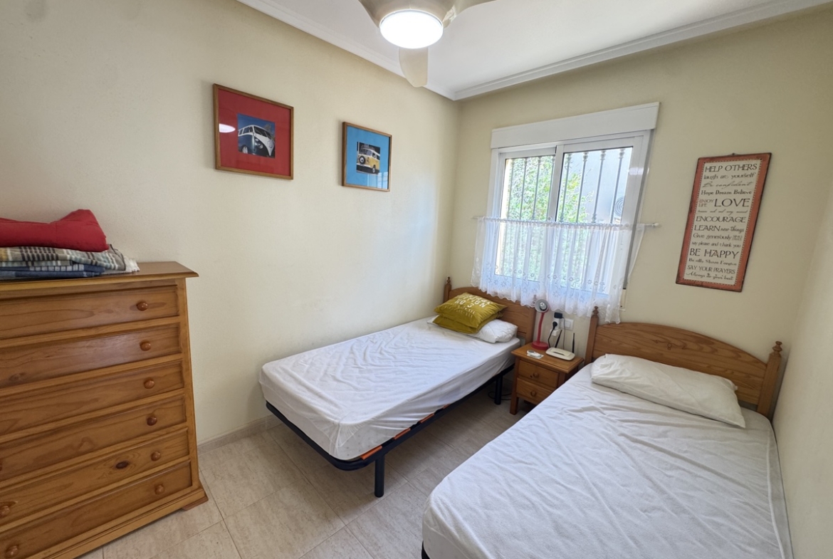 Discover a charming 3-bedroom, 2-bathroom Inspirations Quad house in Villamartin, perfectly situated to capture the Mediterranean sunshine. KEY FEATURES: – Elevated Front Terrace with Side Garden: Enjoy the sunshine on the elevated front terrace, perfect for alfresco dining or relaxation, with a lovely side garden. – Spacious Internal Lounge: A bright and airy lounge area, perfect for relaxing and entertaining. – Large Open-Plan Kitchen: A modern kitchen area flows seamlessly into the lounge, perfect for cooking and socializing. – 2 Bedrooms on Ground Floor: 2 bedrooms on the ground floor share a convenient bathroom, perfect for families or guests. – 1st Floor Bedroom and Bathroom: A private bedroom and bathroom on the 1st floor, perfect for parents or teenagers. – Roof Terrace: Perfect for sun bathing and dining. LOCATION: – Short Walk from Communal Pool and Gardens: The property is just a short stroll from the communal pool and gardens, perfect for relaxation and recreation. – 5-Minute Walk from Villamartin Plaza: The vibrant town centre is just 5 minutes away, with shops, restaurants, and more.
