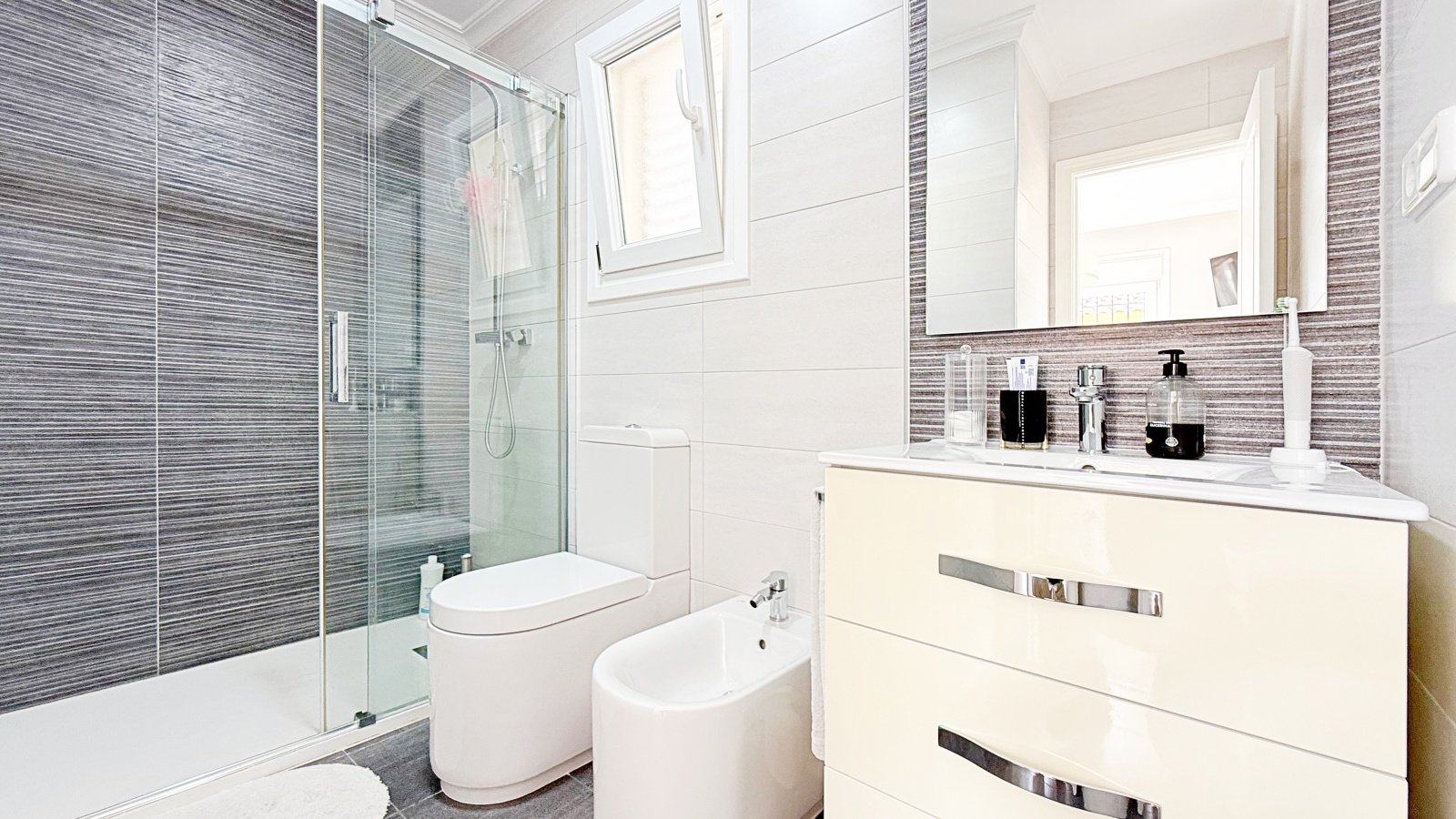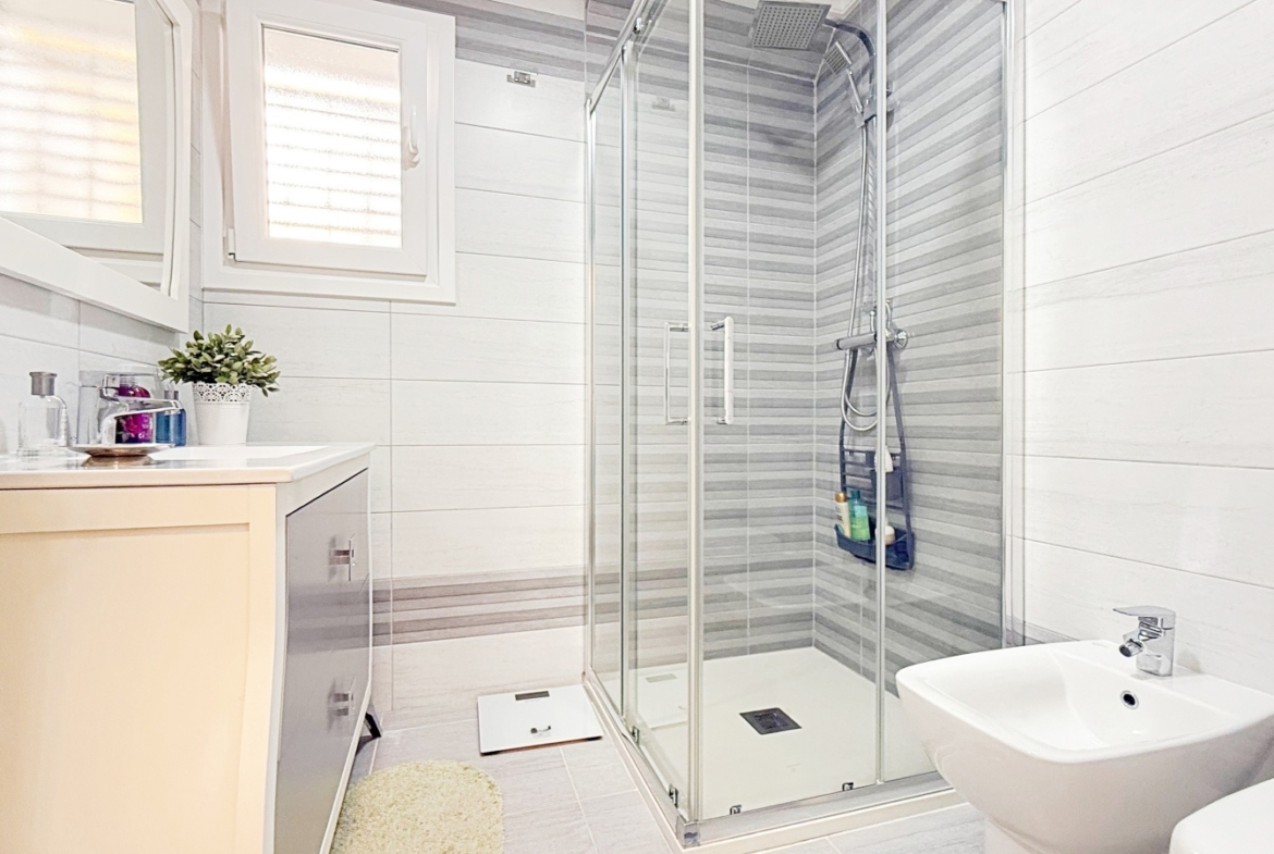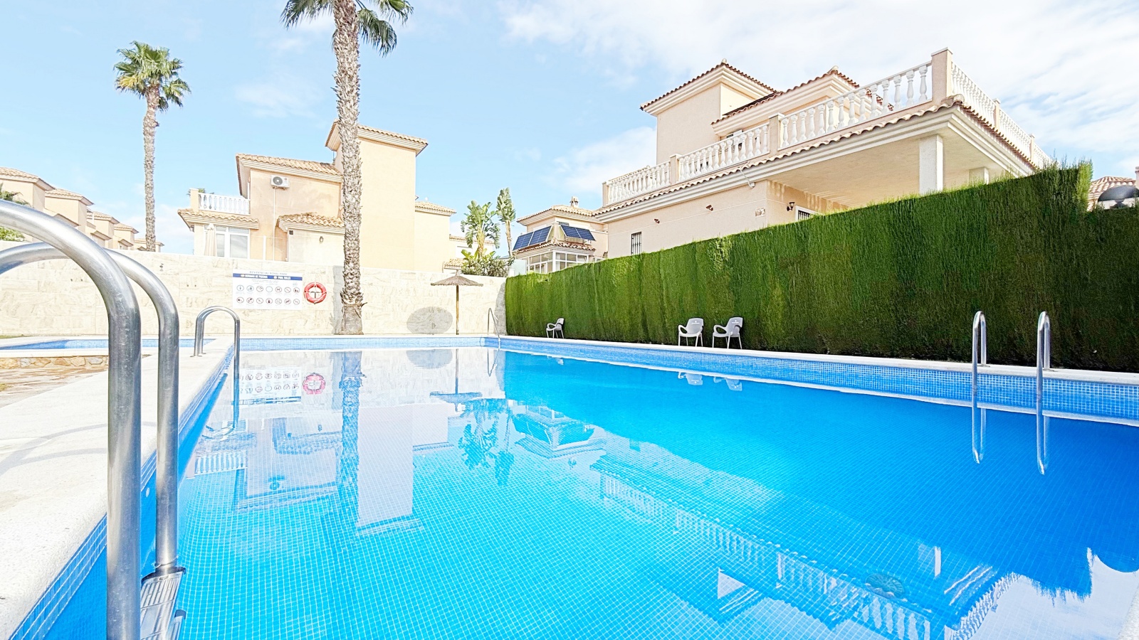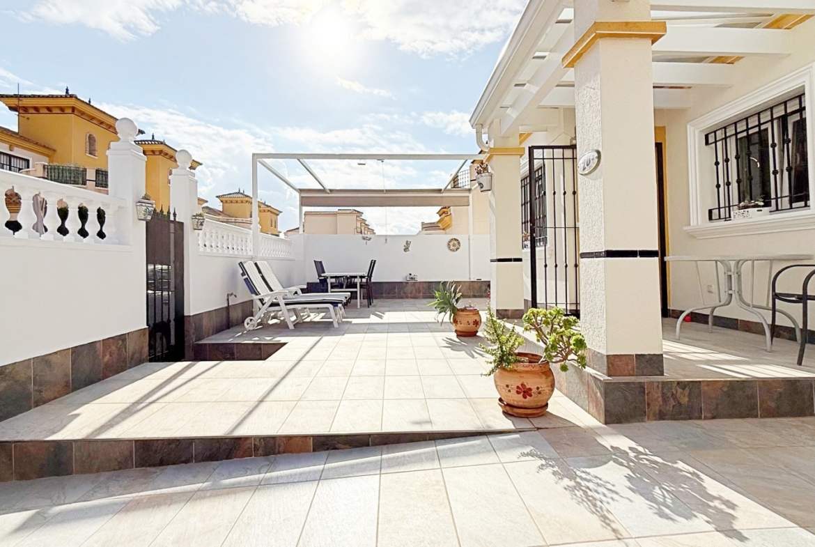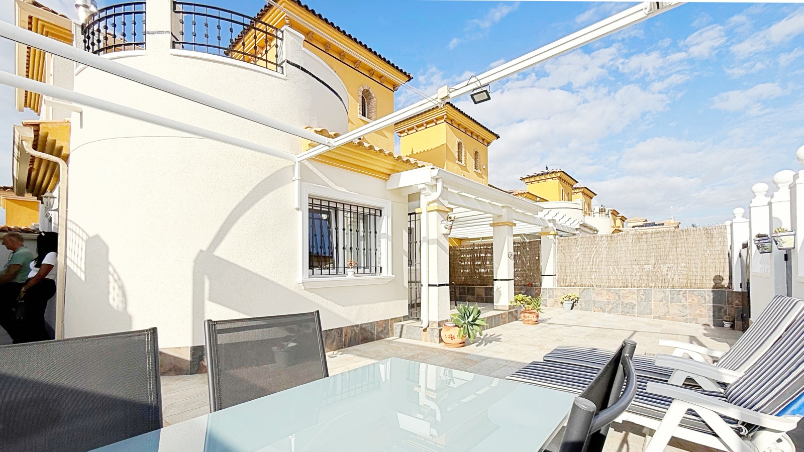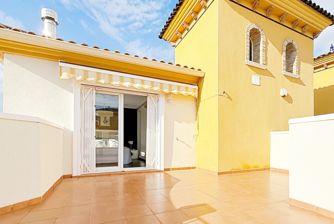 This magnificent detached villa situated in Los Altos has a build area of 105 m², is fully renovated and distributed over two floors. It is located in a private residential complex with a communal swimming pool, just a short distance from the beach. The ground floor offers a spacious and bright living-dining room with an open-plan kitchen, creating a modern and functional space, ideal for enjoying with family or friends. On this same level there are also two well-sized bedrooms and a fully renovated bathroom, making this floor practical and comfortable for everyday living. The upper floor is dedicated to the master bedroom, a large and bright space with an en-suite bathroom, providing privacy, independence and comfort. The interior has been renovated with high-quality materials: wooden flooring, Climalit double-glazed tilt-and-turn windows, ensuring excellent thermal and acoustic insulation while adding a modern and welcoming style throughout. Outside, the villa offers a private plot with parking area and storage room, providing extra convenience and space. The gated community features landscaped common areas and a communal pool, perfect for enjoying the Mediterranean climate. Its privileged location, very close to the beach and surrounded by all essential services, combines a quiet residential atmosphere with the comfort of having everything at hand. A villa ready to move into, ideal both as a permanent residence and as a holiday home