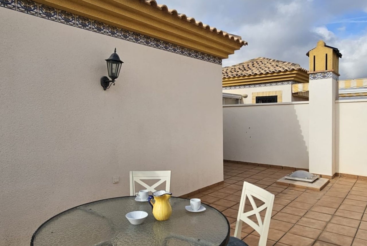 Charming Mediterranean-style townhouse located in the prestigious residential area of Los Dolses, one of the most sought-after areas of Orihuela Costa. Its excellent location offers easy access to all amenities, restaurants, and shopping centers, including the popular La Zenia Boulevard.