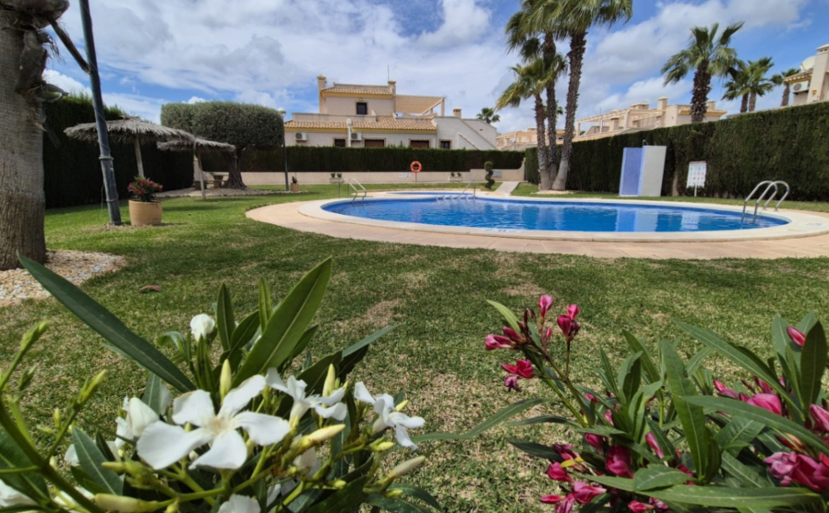This immaculately presented 3 bedroom quad villa located in the desirable residential complex of Oporto Golf in Pau 8, Villamartin. This beautiful property has its living accommodation across two levels, and offers great outdoor space including a tiled terrace with awnings, a large 25m2 roof solarium and garden with off-road parking. Located just a short stroll to the ever popular Villamartin Plaza and golf course, which hosts a great variety of bars, restaurants and shops.