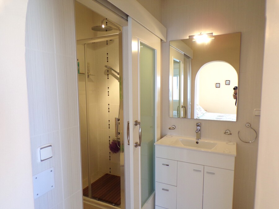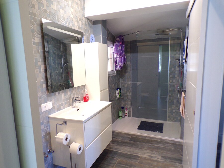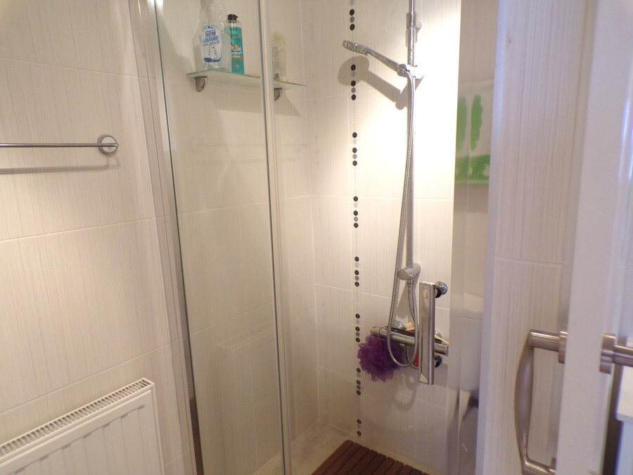 There is also a modern walk in shower room with Jack and Jill doors leading to the bedroom and hallway and a large double bedroom with built in wardrobes and Full A/C, hot and cold.