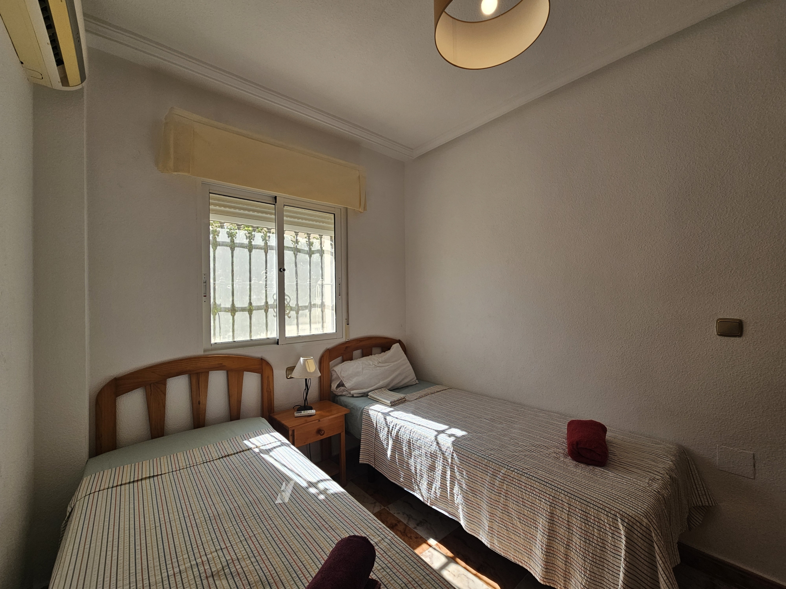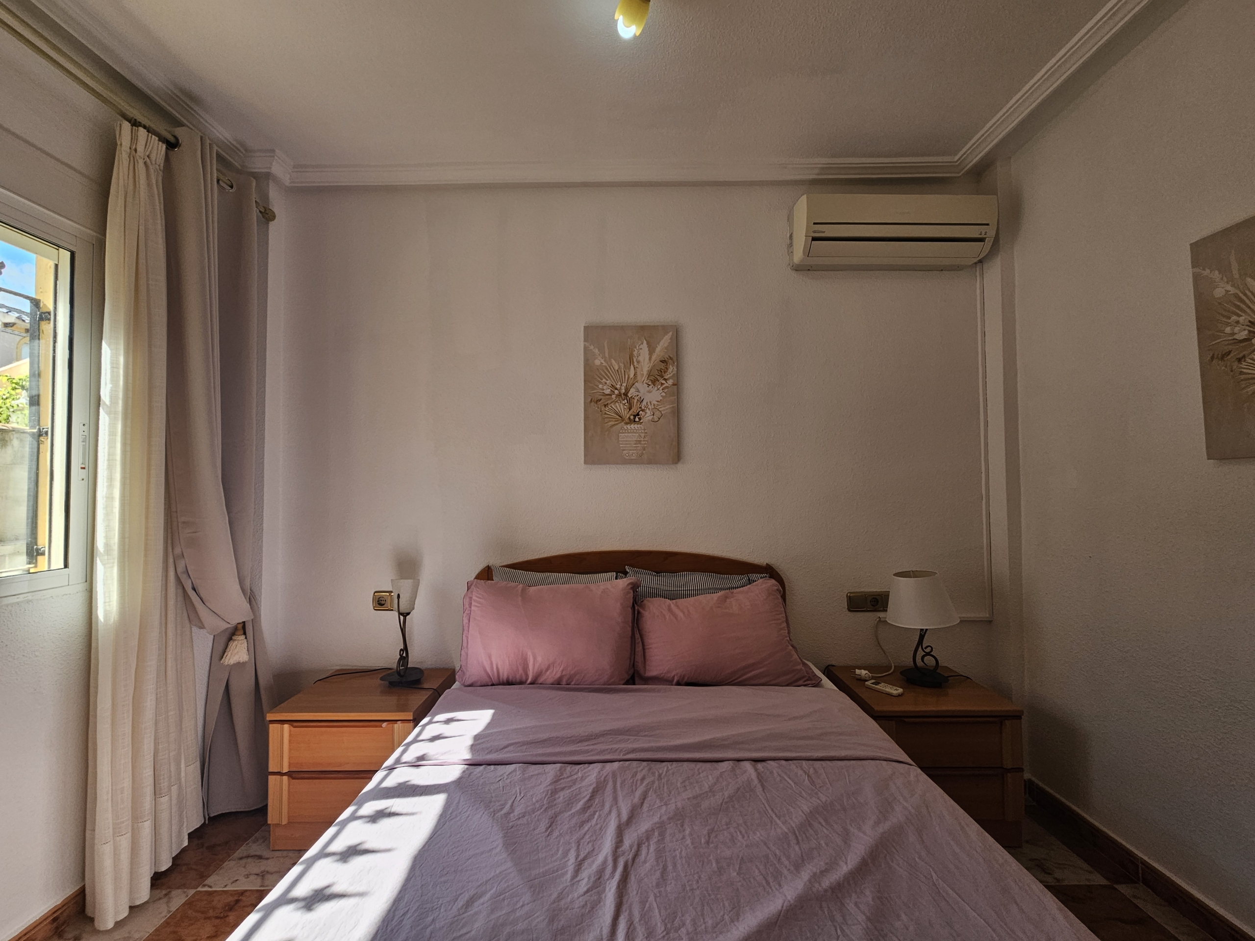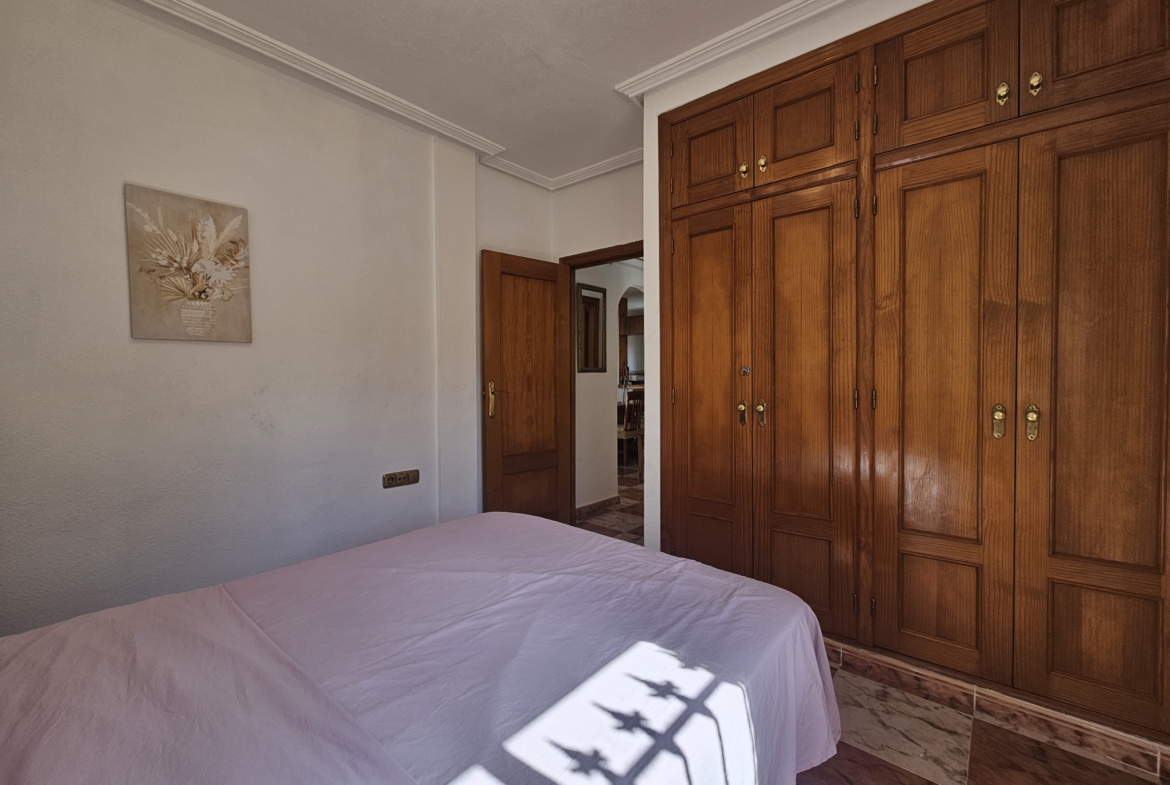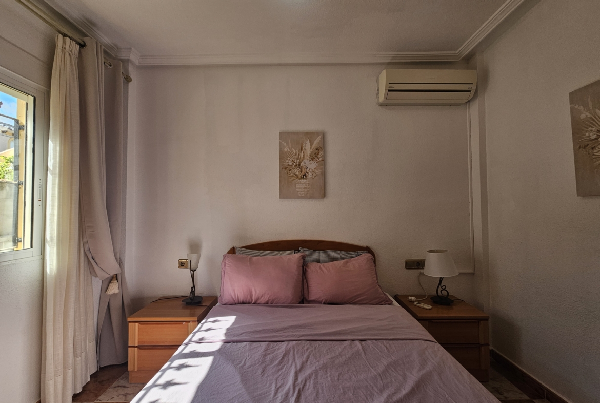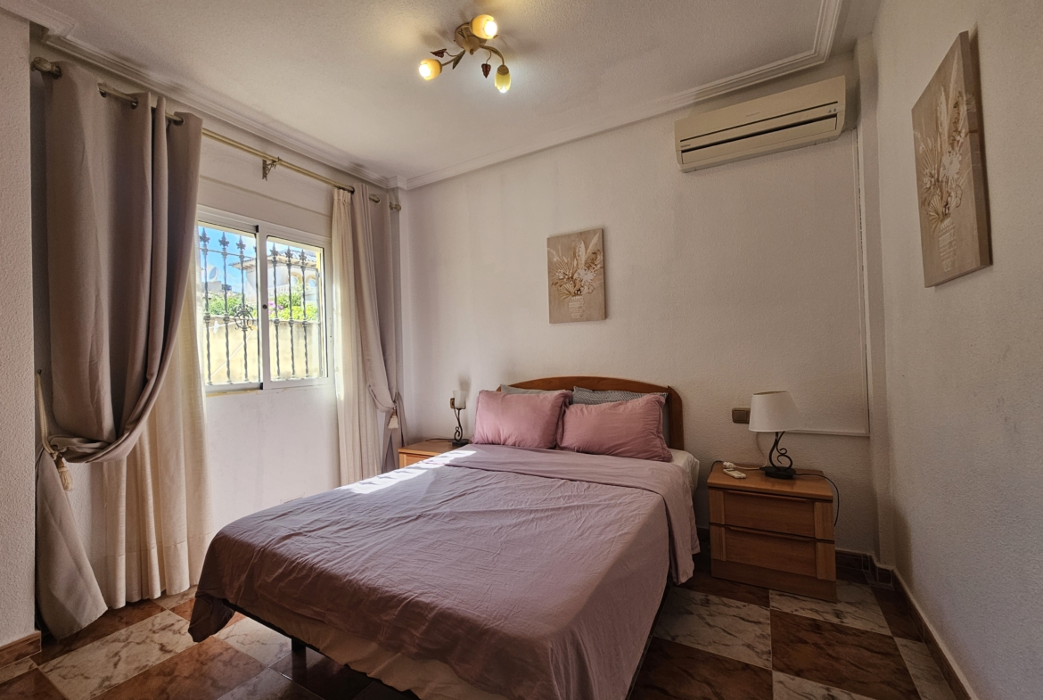 This property sits on an ample 300m2 easy to maintain plot with private swimming pool, outside dining and bbq area, plenty of space for sun-bathing and even park the car! An elevated covered terrace leads directly into the villa where you will find an open plan living room and fully equipped kitchen. There are two large bedrooms along with a family bathroom.