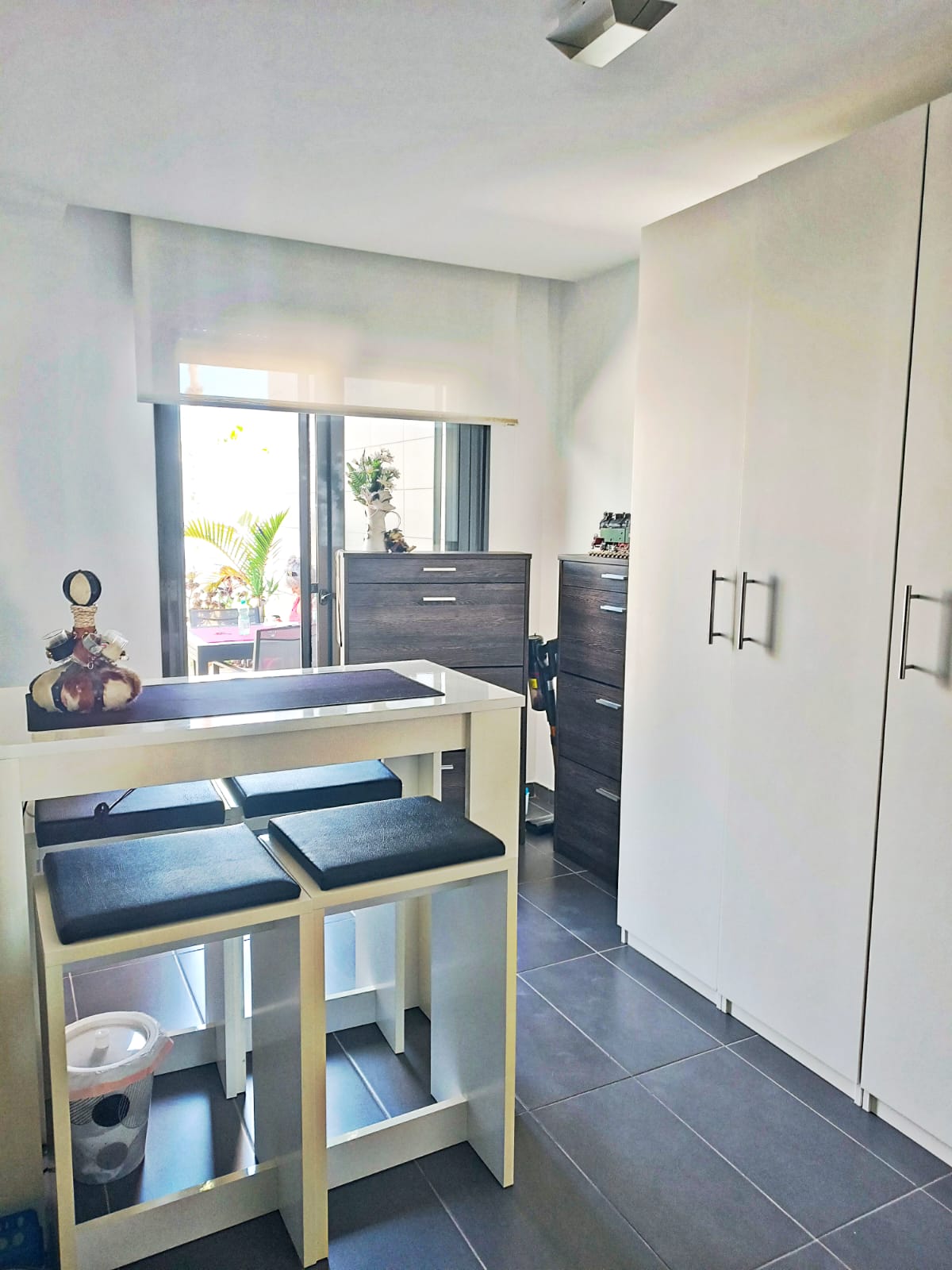 This elegant, spacious home boasts a stunning rooftop terrace overlooking palm trees, Mediterranean gardens, and a pristine communal pool. Your private retreat among the palm trees.