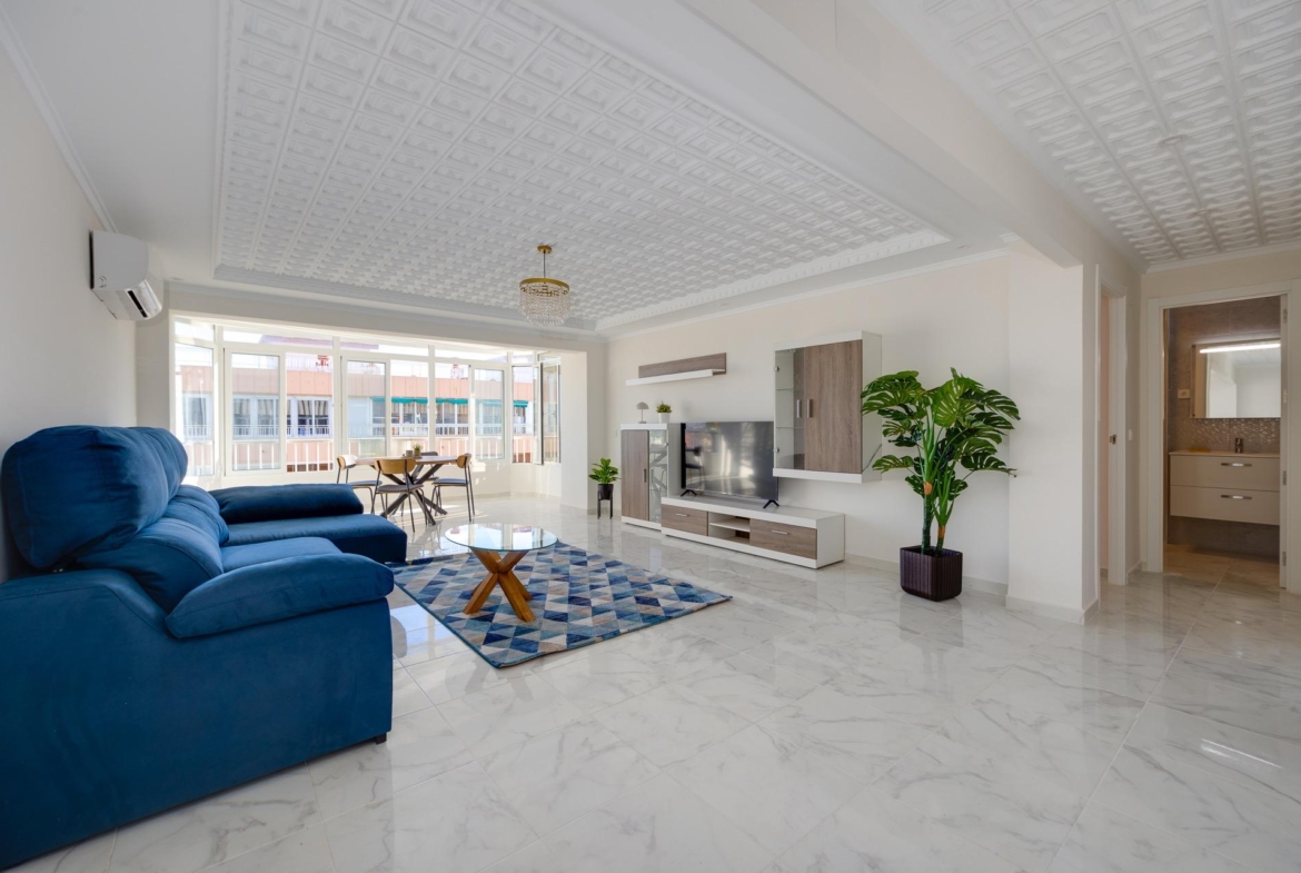 Discover this wonderful renovated penthouse, located on the frontline of the beach with stunning views of both the sea and the Torrevieja lagoon. With a generous area of 110 m², this property features three bright bedrooms and three modern bathrooms that offer comfort for the whole family. Enjoy a spacious living-dining room of 40 m², perfect for family gatherings or special moments 🎉. The independent kitchen is equipped and has a gallery, ideal for your daily activities 🍽️.~~The building is in good general condition and includes a community pool 🏊♂️ right next to the direct access to the beach! This apartment is the perfect place to enjoy the summer near the vibrant center of Torrevieja 🌞🌴. Don’t miss out on this unique opportunity!~