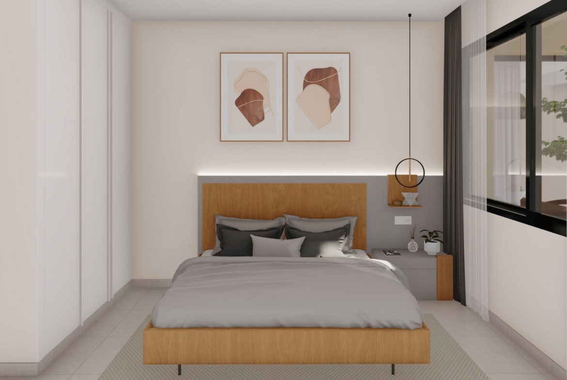 NEW BUILD VILLAS IN ALTAONA GOLF RESORT, MURCIA New development of beautiful villas in Altaona Golf resort, Murcia. Located in a privileged environment where we can live quietly, in contact with nature and the mountains, we get quality of life, fresh air and open spaces. The beautiful 1 level villa has 3 bedrooms, 3 bathrooms, open plan kitchen with living area, private gardens with the pool and parking space. Exclusive new build residential located in Altaona Golf just 15 minutes drive from the centre of Murcia city and 20 minutes from the beaches you can enjoy the tranquillity and security offered by the 18 hole golf course and the convenience of living close to all amenities. Murcia Corvera airport is only 15 minutes away by car. 1049