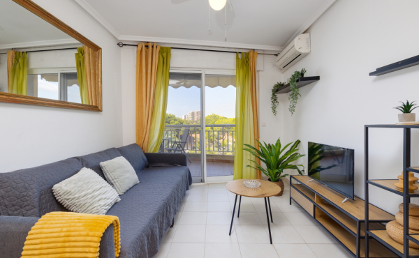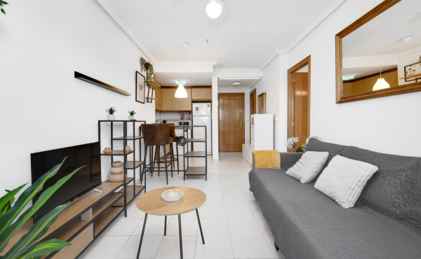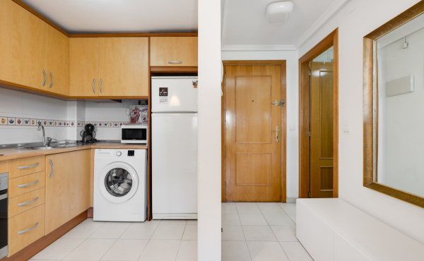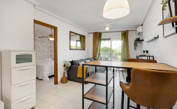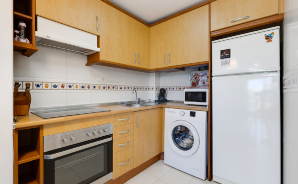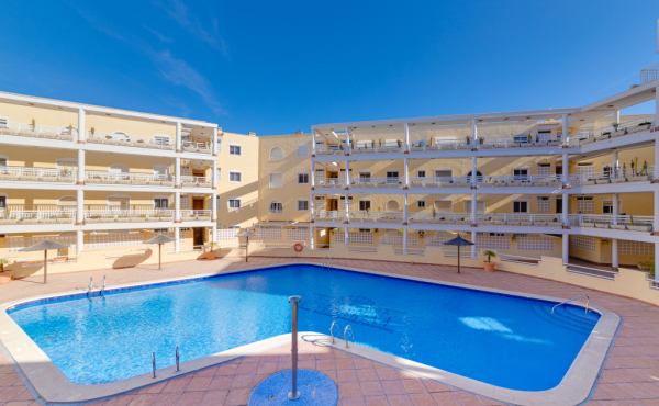 This property consists of 1 bed, 1 bath, sea views from balcony connected from the living room with sliding doors, open plan kitchen, living room and dinning table, communal pool and close to beach. Also included in the price is an underground parking space and storage room.