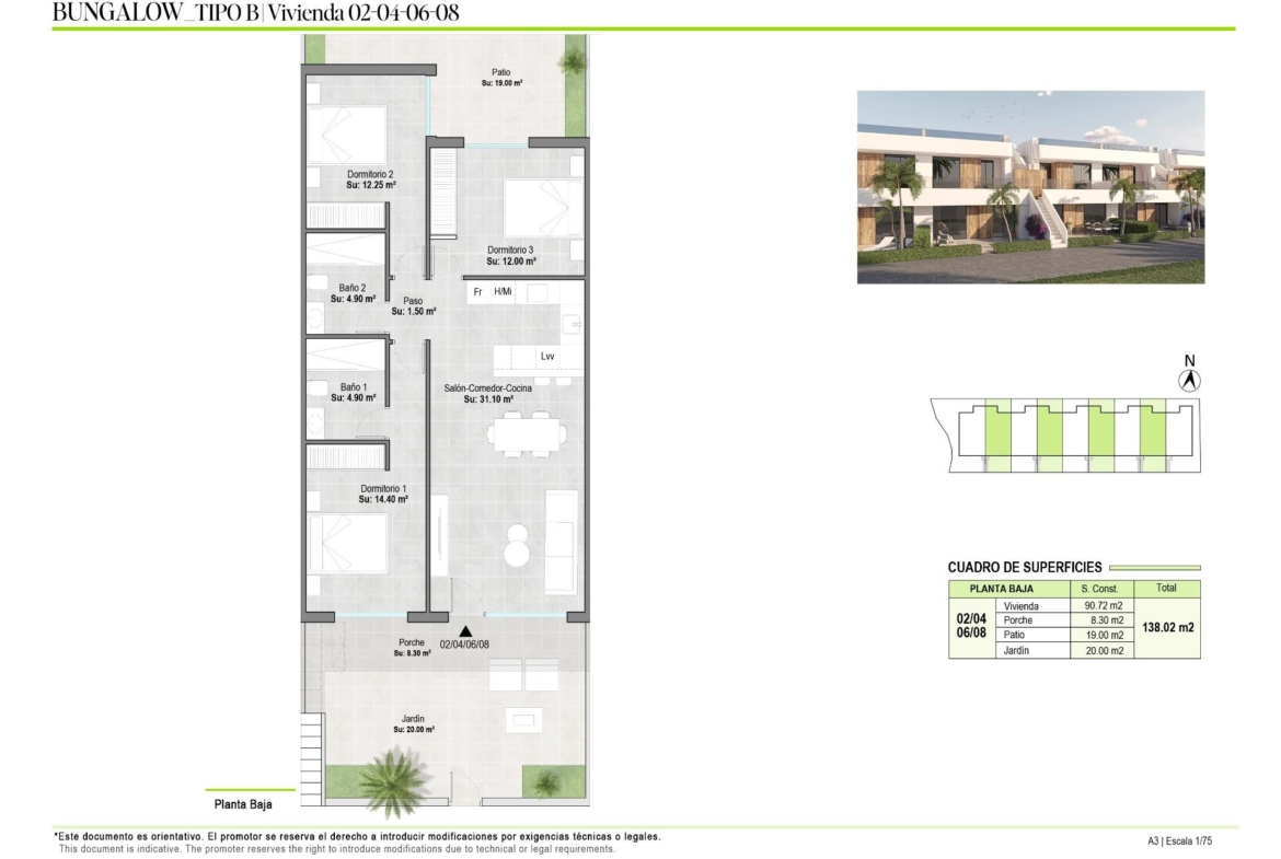 NEW BUILD BUNGALOW APARTMENTS IN CONDADO DE ALHAMA GOLF COURSE New Build exclusive complex of 18 bungalows apartments in Condado de Alhama. Beautiful bungalows with 2 or 3 bedrooms and 2 bathrooms,been designed with the wellbeing and quality of life of their inhabitants in mind. Residential offers spacious communal areas, including several communal swimming pools, one of which is heated, where you can enjoy moments of relaxation and fun. In addition, the complex has landscaped areas for strolling and enjoying the surroundings, as well as parking areas designed for the convenience of residents. The ground floor bungalows have 3 bedrooms and generous gardens, ideal for spending time outdoors and organising get-together with family and friends. The top floors, on the other hand, have 2 bedrooms and a spacious solarium that allows you to make the most of the sunlight and views of the natural surroundings. Condado de Alhama Golf Resort is a fantastic Golf Resort with many facilities and services . A shopping centre, a sports centre, a variety of bars and restaurants, supermarkets and over 25 communal swimming pools and gardens. Condado de Alhama Golf Resort has its own Jack Nicklaus designed golf course and is only 15 minutes from the beautiful beaches of Bolnuevo and Mazarron. Mazarron has over 35 km of coastline, much of which is unspoilt coastline. Numerous beaches in the Bay of Mazarron have been awarded the Blue Flag for their quality. Condado de Alhama Golf Resort is only 20 minutes from the new Corvera International Airport. 1049