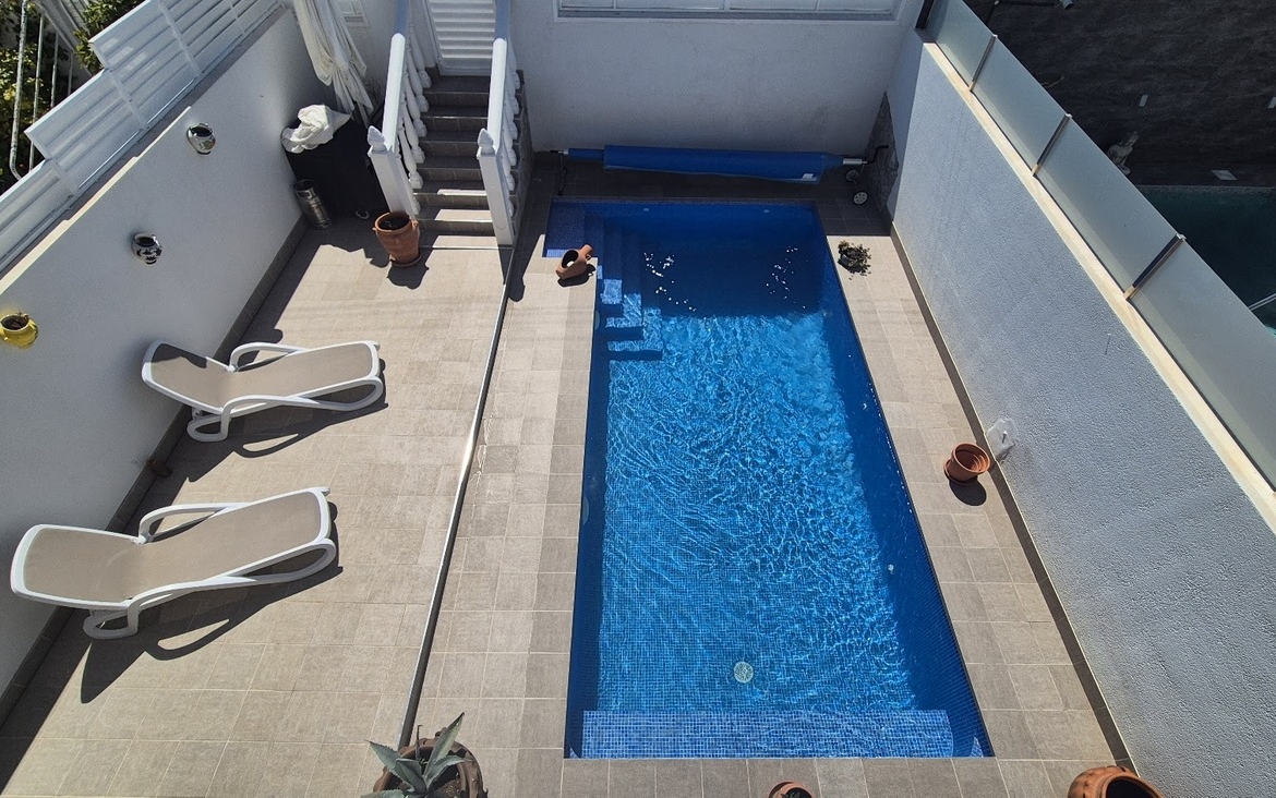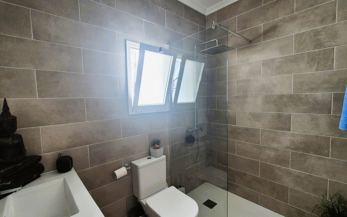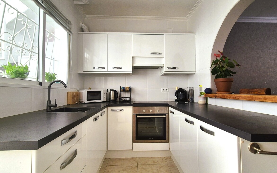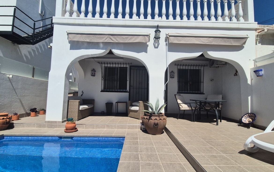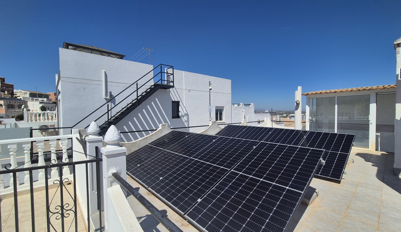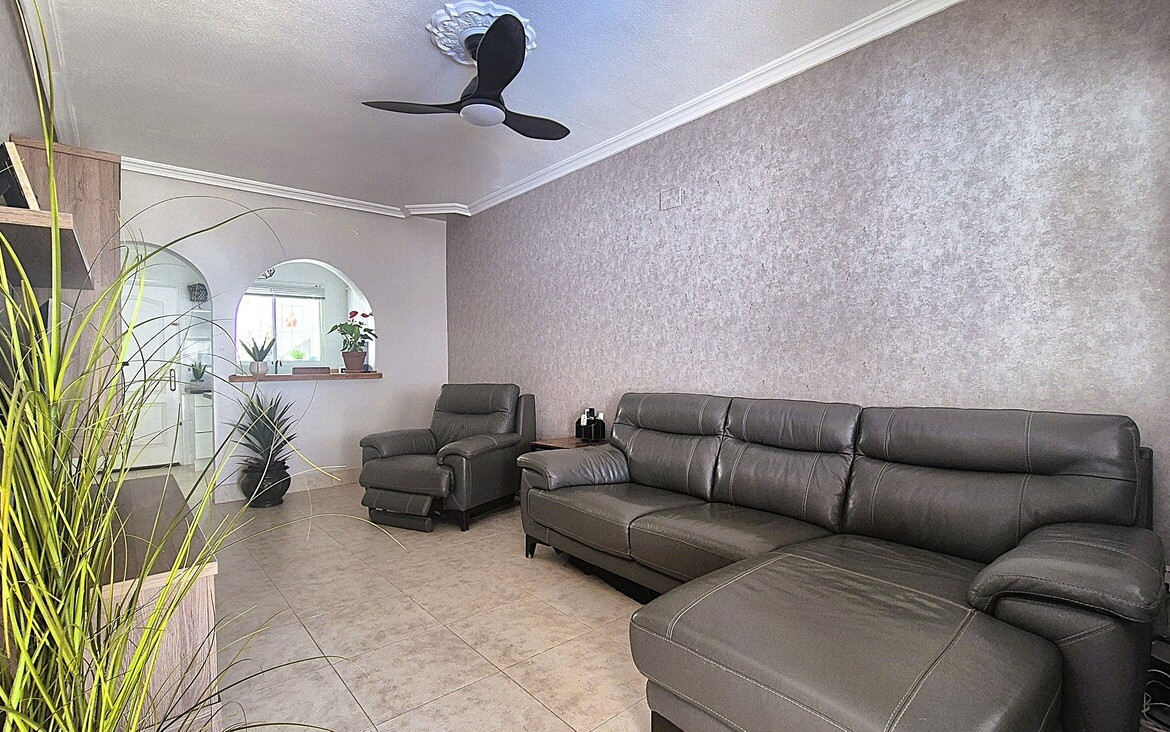 The renovation includes:New Metal Fencing to the boundary of the propertyNewly built – HEATED and Covered – SALT WATER Swimming Pool to ensure all year round swimming. The pool has steps entery and a seating area at one end, the full width of of the pool.Newly tiled patio/terraceFreshly painted exterior to the house and boundary wallsNew Gas BoilerSOLAR PANELS – with Solar wallet to supplier and giving free ElectricityRefurbished BathroomRefurbished KitchenInternal walls Plastered to smooth finishNew fitted wardrobe to the main bedroomNew Air-conditioning units running also from wifi if required, allowing you to remotely start on a timer or immediately, from anywhere. Ideal if out and wanting a cool home to return to.New Remote controlled Ceiling FansImagine yourself sitting in the garden of this Beautiful South Facing property, being able to swim, all year round in the Newly Built, Heated Salt water Swimming pool or just simply relaxing on the Terrace.Entering the property, you have a bright spacious lounge and semi open plan to the kitchen which leads onto a utility area, which houses the Washing machine, Dishwasher & Fridge Freezer.The rear stairs lead to the Solarium which currently is home to the Solar Panels. (The Solarium has views to the Salt lakes and offers the potential to be extended to add further bedrooms and bathrooms)There are 2 Large Bright Bedrooms and a refurbished Bathroom.To the side of the property is an external Brick Built Storage area.This Semi Detached property is located in San Miguel De Salinas, which is a multi National community. It is just a 10 minute walk from the Village of San Miguel, which offers Supermarkets, Bars, Restaurants, Shops, Schools and more. There is also a Bar, just at the end of the road of which the Villa is situated.There is a bus service just a 2 minute walk from the house, taking you into La Zenia and also Torrevija (links to the airport). Also a good local Taxi service.Villamartin – GOLF – La Zenia Boulevard and local Beaches & Zoco Market are just a 8- 10 minute drive from the property.Padal Courts, Tennis Courts, Petanque, 5 Min walk from the property.