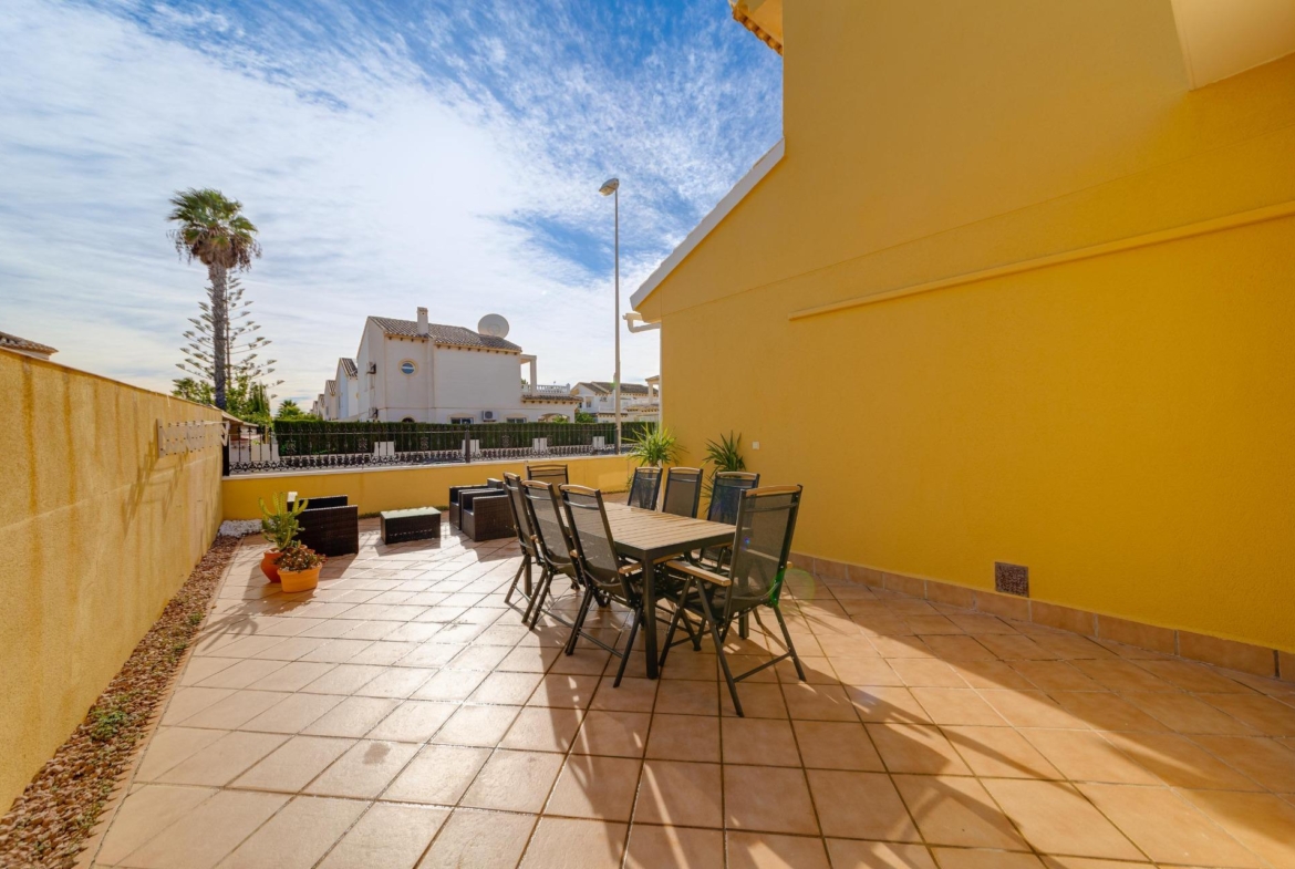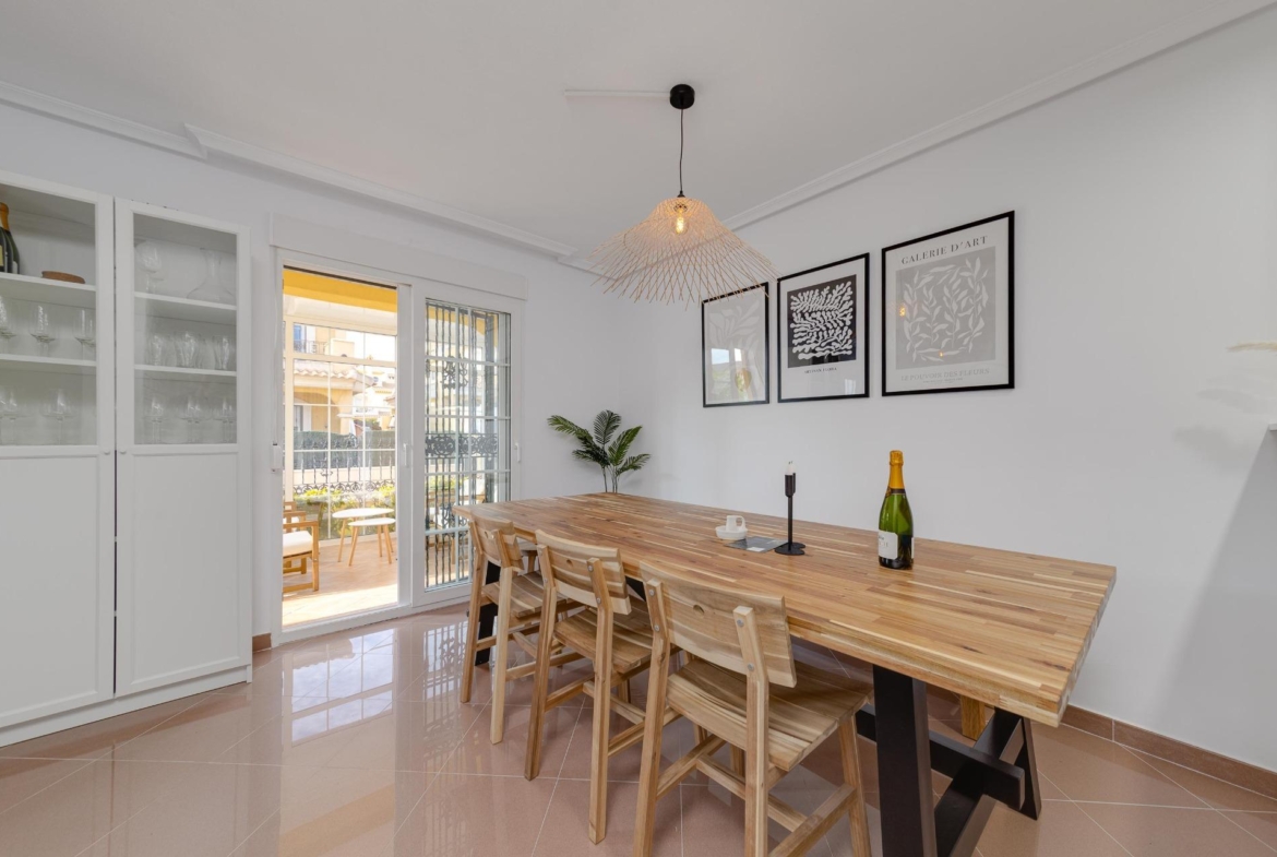With a generous built area of 104 m² and an expansive total plot size of 278 m², this property offers both space and comfort. Consisting of 3 bedrooms, 2 bathrooms, a spacious living/dining room and a beautiful modern kitchen. The property benefits from a large garden with off road parking and enough space to install a private pool if desired, however there is access to a lovely communal pool on the residence. Sold fully equipped & furnished, you can move right in without any hassle!