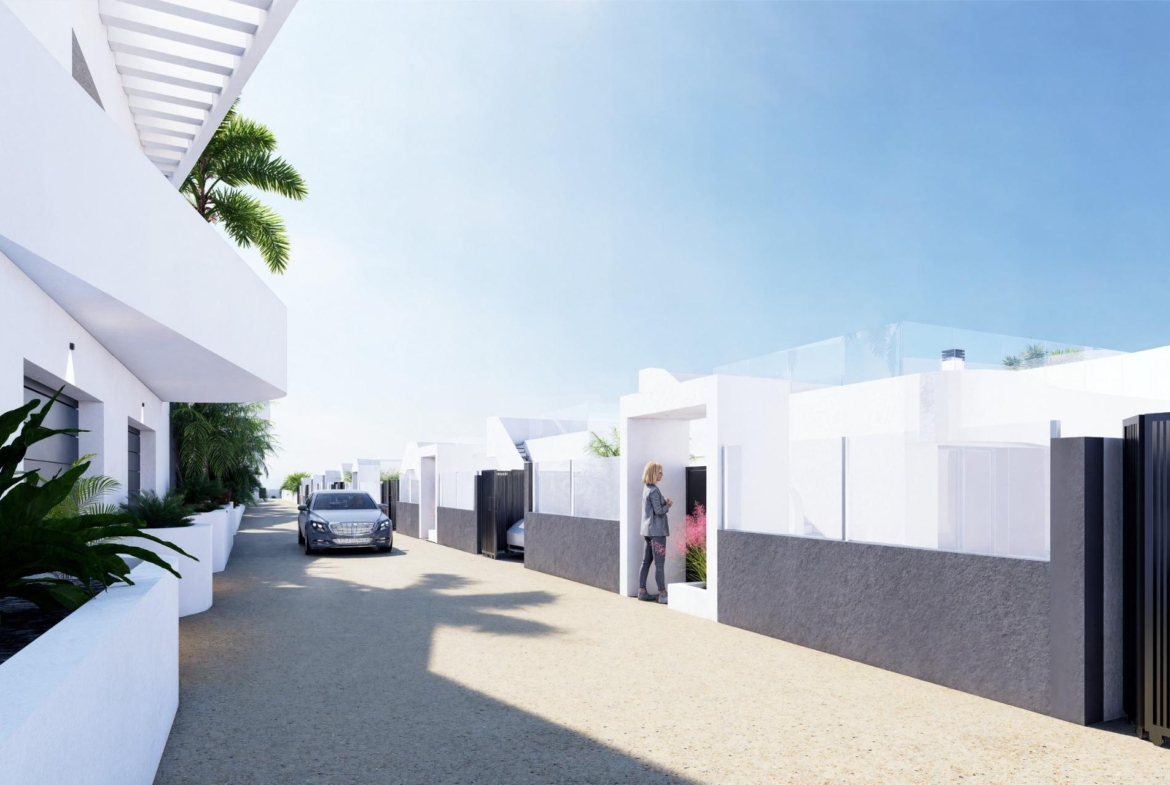 New Build Villas in La Finca Golf Resort Algorfa Exclusive New Development in a Prestigious Golf Setting This new residential development of 53 modern villas is located in the renowned La Finca Golf Resort in Algorfa, one of the most sought after areas of the Costa Blanca South. Surrounded by lush green landscapes, citrus groves and the rolling fairways of the golf course, this location offers tranquillity, privacy and a high quality Mediterranean lifestyle, while remaining close to essential services and the coast. Choice of Villa Models and Layouts The project offers a wide selection of detached and semi detached villas in three different sizes of approximately 98 m2, 111 m2 or 135 m2. Homes are available on one or two levels and all feature three bedrooms and two bathrooms. The larger models also include a guest toilet. Villas on one level enjoy a spacious private rooftop solarium, while two level homes feature a large open terrace on the upper floor. Some units include a basement and others offer this option at an additional cost. All villas come with a private swimming pool and parking space within the plot. Ibiza Style Design and Outdoor Living The villas stand out for their elegant Ibiza style design with soft curved lines and bright white finishes that blend perfectly with the natural surroundings. Spacious outdoor areas are designed to enjoy the mild climate all year round, offering ideal spaces for relaxing, entertaining and making the most of outdoor living in a peaceful golf environment. High Quality Specifications and Comfort All homes are built to a high standard and include a reinforced security entrance door, fully fitted kitchens, pre installation for ducted air conditioning and an aerothermal system for domestic hot water. These features ensure comfort, energy efficiency and modern living, whether as a permanent residence or a holiday home. La Finca Golf Resort and Algorfa Lifestyle La Finca Golf Resort is known for its championship golf course, luxury hotel, spa facilities, restaurants and sports areas, all within a secure and well maintained environment. Algorfa is a charming Spanish town offering local shops, traditional restaurants and a relaxed atmosphere, while nearby towns provide a wider range of services and amenities. Key Distances and Connections La Finca Golf Course is located within the resort. Guardamar del Segura beaches are approximately 14 km away. Shopping centres in Torrevieja and Orihuela Costa are around 15 km. Almoradi, Benijofar and Ciudad Quesada are between 5 and 10 km. Alicante International Airport is approximately 35 km away. A Smart Investment on the Costa Blanca With over 300 days of sunshine per year, excellent road connections and proximity to golf, beaches and shopping areas, these villas are ideal for living, holidays or investment. Contact Us Today Secure your new villa in La Finca Golf Resort today. Contact us now for more information or to arrange a private viewing.
