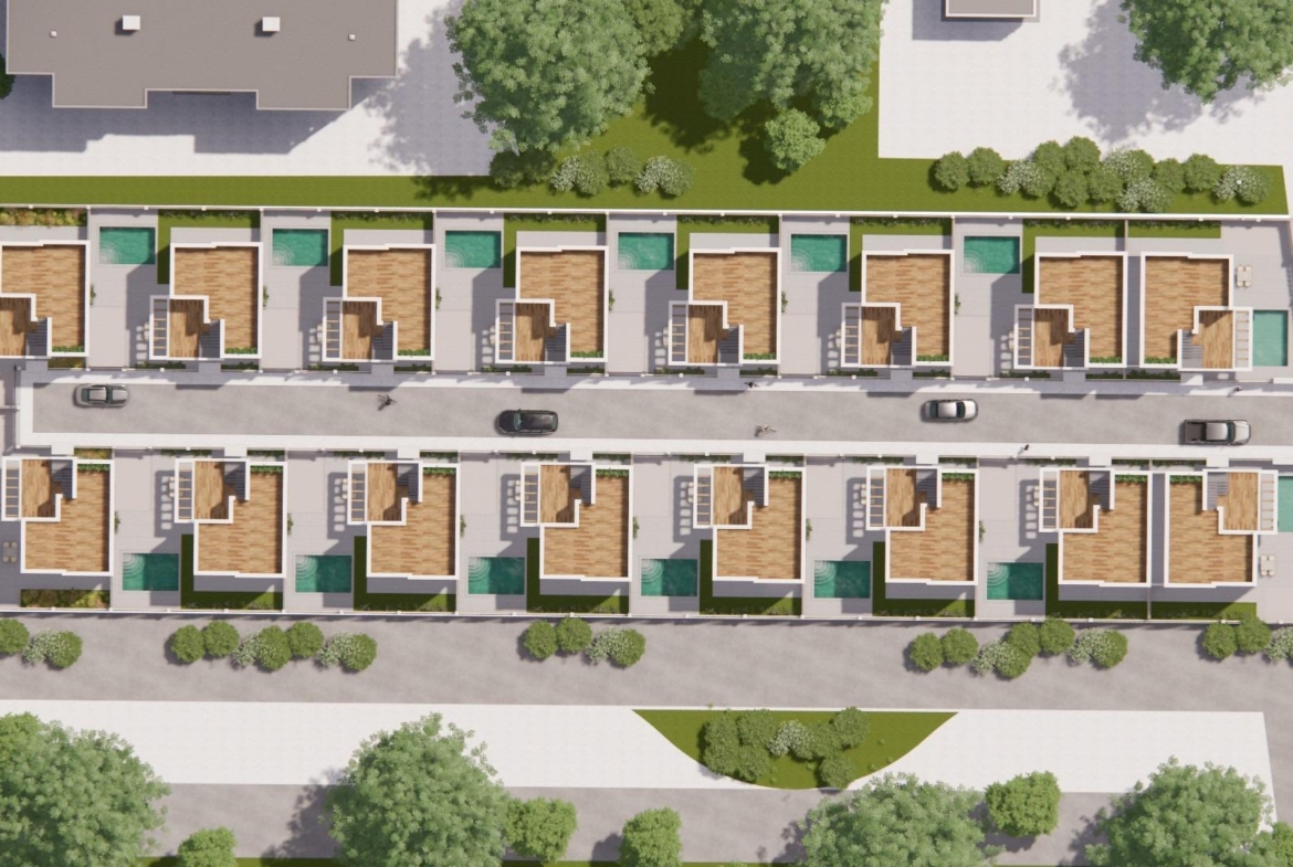 Modern, newly built villas in La Herrada Los Montesinos with private swimming pool Exclusive residential project in a peaceful setting Located in the prestigious La Herrada residential area in Los Montesinos, this exclusive development of 16 modern villas offers privacy, comfort and an excellent quality of life. La Herrada is known for its peaceful residential atmosphere, its proximity to everyday amenities and its privileged location between the famous salt flats of Torrevieja and La Mata. It is an ideal place for those seeking a relaxed and healthy Mediterranean lifestyle in the south of the Costa Blanca. Contemporary design with optimised interior spaces Each villa has 130 m² of well-distributed living space on two floors, designed to maximise natural light and functionality. Built on plots from 250 m², the properties offer spacious outdoor areas perfect for sunbathing, entertaining or relaxing by the private pool. Comfortable layout over two floors The ground floor features an open-plan living room with a fully integrated kitchen and direct access to the garden and pool area. This floor also includes two bedrooms, a full bathroom and a practical laundry room. Upstairs there are two spacious bedrooms, each with its own bathroom, one of which is en-suite. Both bedrooms have access to a 28 m² open private terrace. For those who want even more outdoor space, there is an optional rooftop solarium available at an additional cost. High-quality finishes and modern features The villas include quality finishes such as bathroom furniture, mirrors, shower screens and underfloor heating in all bathrooms. There is pre-installation for ducted air conditioning, a motorised entrance gate for vehicles, private parking on the plot and gated residential access via a private internal road. Prime location close to key amenities and attractions Guardamar and Torrevieja beaches 9 km away La Marquesa Golf, La Finca Golf and Vistabella Golf less than 5 km away Alicante Airport 29 km away Natural parks, salt flats, cycle routes and hiking trails in the vicinity Live comfortably in the heart of the Costa Blanca These newly built villas in Los Montesinos offer the perfect combination of modern comfort, natural surroundings and excellent accessibility. Whether you are looking for a permanent residence or a holiday home, this development offers everything you need to enjoy a peaceful and comfortable Mediterranean lifestyle. Contact us today to arrange a viewing and secure your new home in La Herrada. 1049