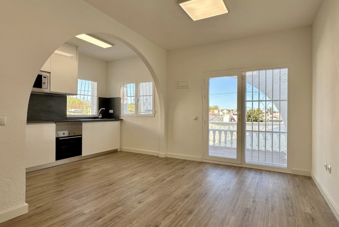 Brand-new wood-effect laminate flooring2 bedrooms1 modern bathroom with walk-in shower and screenFully equipped kitchen with washing machine and dishwasherSolarium with artificial grass and side enclosure