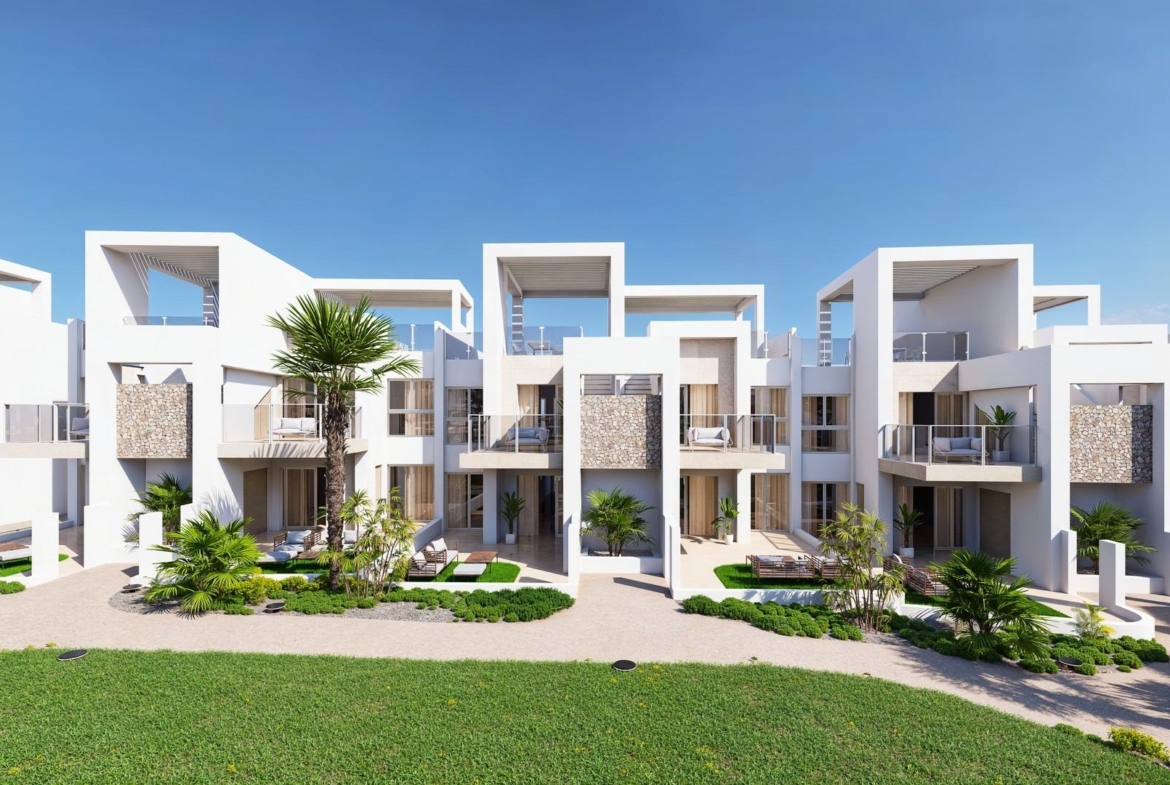 Exclusive New Build Properties in Lo Marabú, Ciudad Quesada Modern Design and Maximum Comfort in a Mediterranean Setting Discover this spectacular residential complex in Lo Marabú, Ciudad Quesada, comprising 80 2 and 3 bedroom homes with 2 bathrooms. Designed with a modern and efficient approach, these properties offer spacious terraces, cross ventilation and high quality finishes to maximise comfort and energy efficiency. The ground floor properties have private gardens, while the top floor properties have private solariums with pre-installation for a Jacuzzi and outdoor shower. In addition, the development has communal swimming pools surrounded by gardens, creating a perfect environment for relaxation and conviviality. High Quality Features for an Exclusive Lifestyle Each home has been designed to offer maximum comfort, with top quality materials and a contemporary design: Large sliding aluminium windows with thermal break. Motorised blinds for greater comfort. Climalit 4+4/14/4/4+4 glazing for thermal and acoustic insulation. Armoured front door with security lock. Fully fitted kitchens with electrical appliances included. Bathrooms with furniture, mirrors and shower screens. 150L aerothermal system for hot water. Complete installation of ducted air conditioning (hot/cold). Lighting in all rooms already incorporated. Parking space included. Thanks to its double façade design, the homes offer natural cross ventilation, providing coolness in summer and reducing energy consumption in air conditioning. Privileged location in Ciudad Quesada Lo Marabú is an exclusive residential area within Ciudad Quesada (Rojales), surrounded by natural spaces and with all services within easy reach. The urbanization is very close to the salt lakes of La Mata and Torrevieja, an ideal environment to enjoy nature and improve your wellbeing. From your new home, you will have quick access to the main points of interest in the area: Guardamar del Segura and Torrevieja beaches – 10 km (15 minutes by car). Alicante-Elche Airport (ALC) – 38 km (35 minutes by car). Murcia-Corvera Airport (RMU) – 65 km (50 minutes drive). Prestigious golf courses – Less than 5 km. Shopping centres and restaurants – Just a few minutes away. Quick access to the AP-7 and N-332 highways, connecting to the whole of the Costa Blanca. A Perfect Home for Enjoying the Mediterranean With their combination of modern design, strategic location and exceptional natural surroundings, these homes in Lo Marabu are ideal for permanent residence, holiday home or investment property. Don’t miss out on this unique opportunity. Contact us today for more information or to arrange a viewing of your future home in Ciudad Quesada. 1049