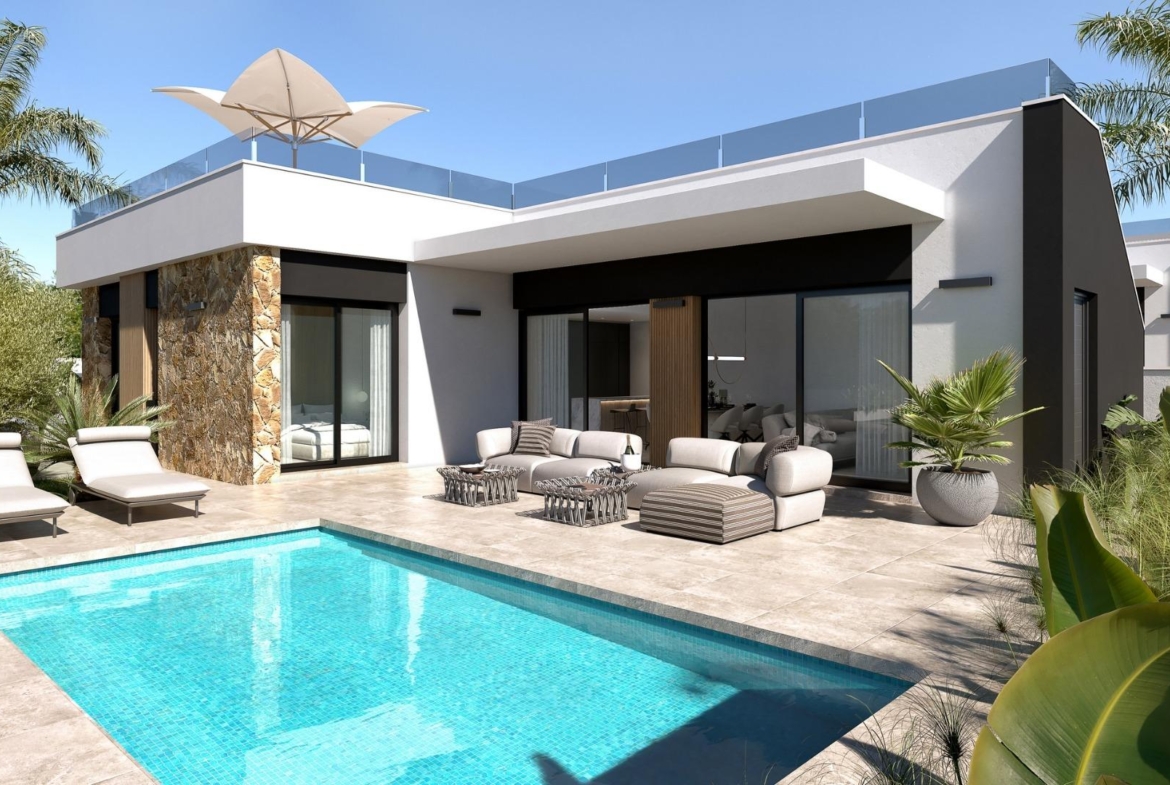 Exclusive Mediterranean Living in Lo Marabú, Ciudad Quesada Prime Location with Nature and Convenience Discover the charm of living in Lo Marabú, Ciudad Quesada, an exclusive residential area that combines modern comfort with the beauty of Mediterranean nature. Nestled in a prime location, this development offers easy access to essential services while providing a serene, tranquil environment. Just a short drive away, you’ll find the stunning salt lagoons of La Mata and Torrevieja, a paradise for nature enthusiasts, photographers, and those seeking wellness. Beautiful Beaches and Outdoor Activities Only 15 minutes away by car, the unspoiled beaches of Guardamar del Segura and Torrevieja invite you to enjoy golden dunes and crystal-clear waters. These coastal gems offer opportunities for relaxation, water sports, and picturesque walks along the shore. For outdoor enthusiasts, the area boasts numerous hiking and cycling trails, while golf lovers will appreciate the proximity to several prestigious golf courses, providing a first-class sporting experience. High-Quality Homes and Amenities This residential complex features thoughtfully designed homes, including: Bungalows: Ground-floor units with private gardens or top-floor options with solariums. All bungalows include two bedrooms, two bathrooms, a parking space, and a storage room, set around a central communal area with a swimming pool and landscaped gardens. Villas: Independent properties with three bedrooms and 2/3 bathrooms, available in one- or two-story layouts. Each villa includes a private pool, a solarium, and parking within the plot. Optional basements are also available. Modern Comfort and Exceptional Features Every home is built with top-quality materials and finishes: PVC windows with double glazing and remote-controlled motorized shutters. Electric underfloor heating in bathrooms. Ducted air conditioning installation. Villas with private pools (3.00 x 6.00 m) and stainless steel showers. Community pools with a children’s area for bungalow residents. As a special launch offer, select homes include white goods and a furniture package. Excellent Connectivity and Local Highlights Strategically located in Rojales, Alicante, this development offers excellent infrastructure and connectivity: Alicante-Elche Airport (ALC): 38 km (35 minutes by car). Murcia-Corvera Airport (RMU): 65 km (50 minutes by car). Proximity to major roads such as the AP-7 and N-332 ensures easy access to nearby cities and attractions. Local shopping centers, restaurants, and daily amenities are within walking distance. Embrace Mediterranean Living With its perfect blend of modern living, natural beauty, and unparalleled convenience, this residential complex in Lo Marabú is the ideal choice for those seeking a high-quality lifestyle. Don’t miss the chance to invest in your dream home in the heart of the Mediterranean. Contact us today to schedule a viewing or to learn more about this exceptional development! 1049