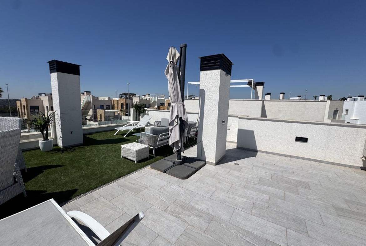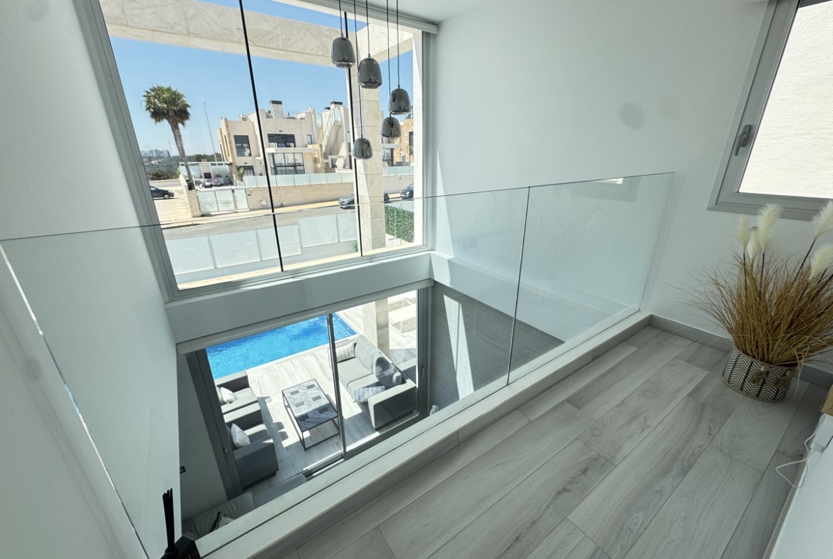 This stunning 4-bedroom modern villa is perfectly situated in the popular area of Lomas De Cabo Roig, offering a luxurious and private retreat for families and individuals alike.