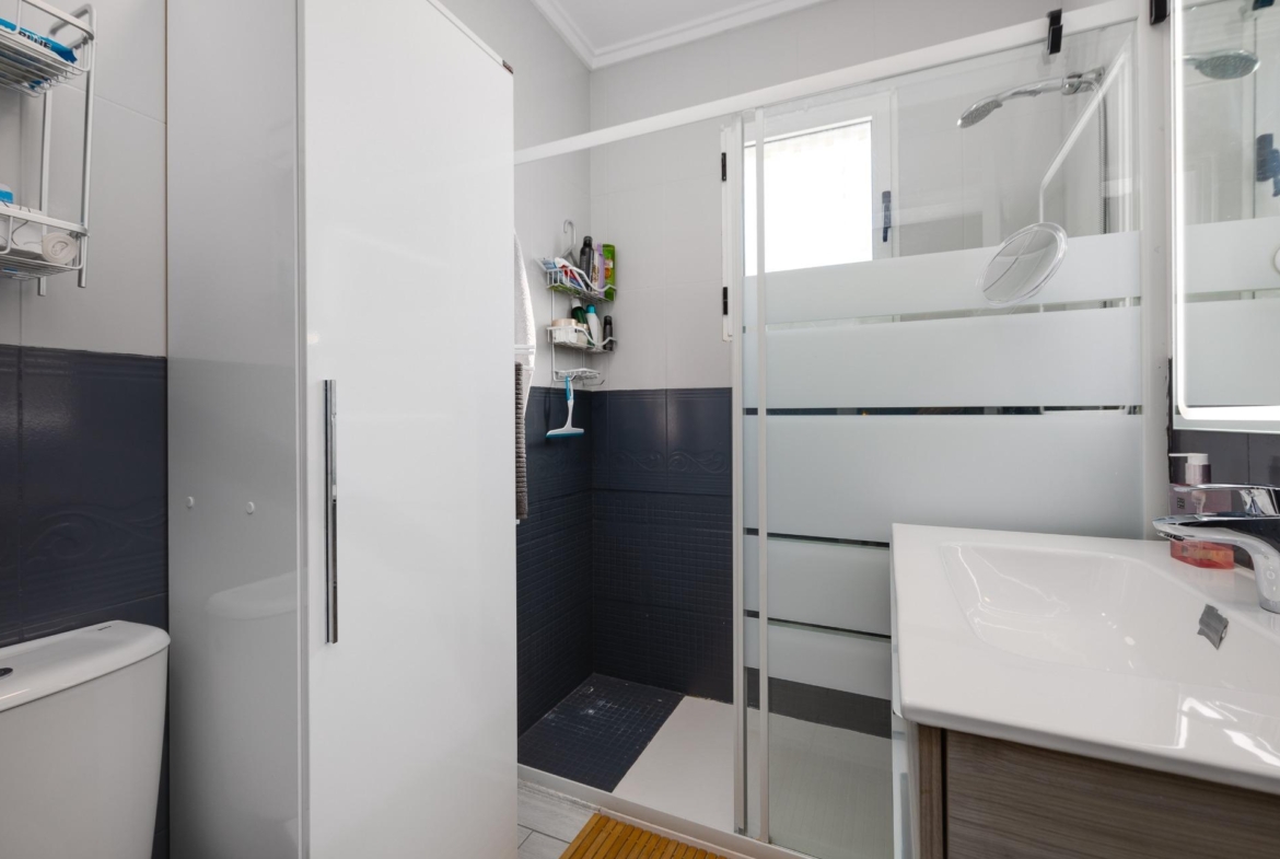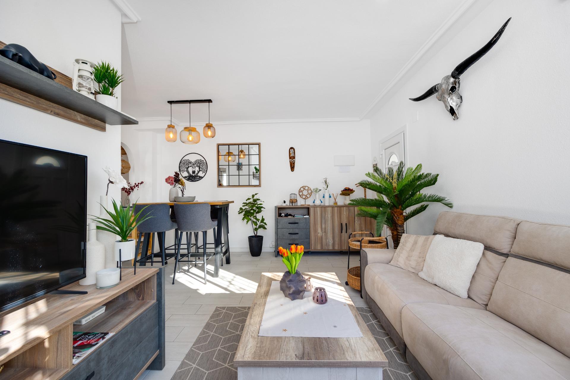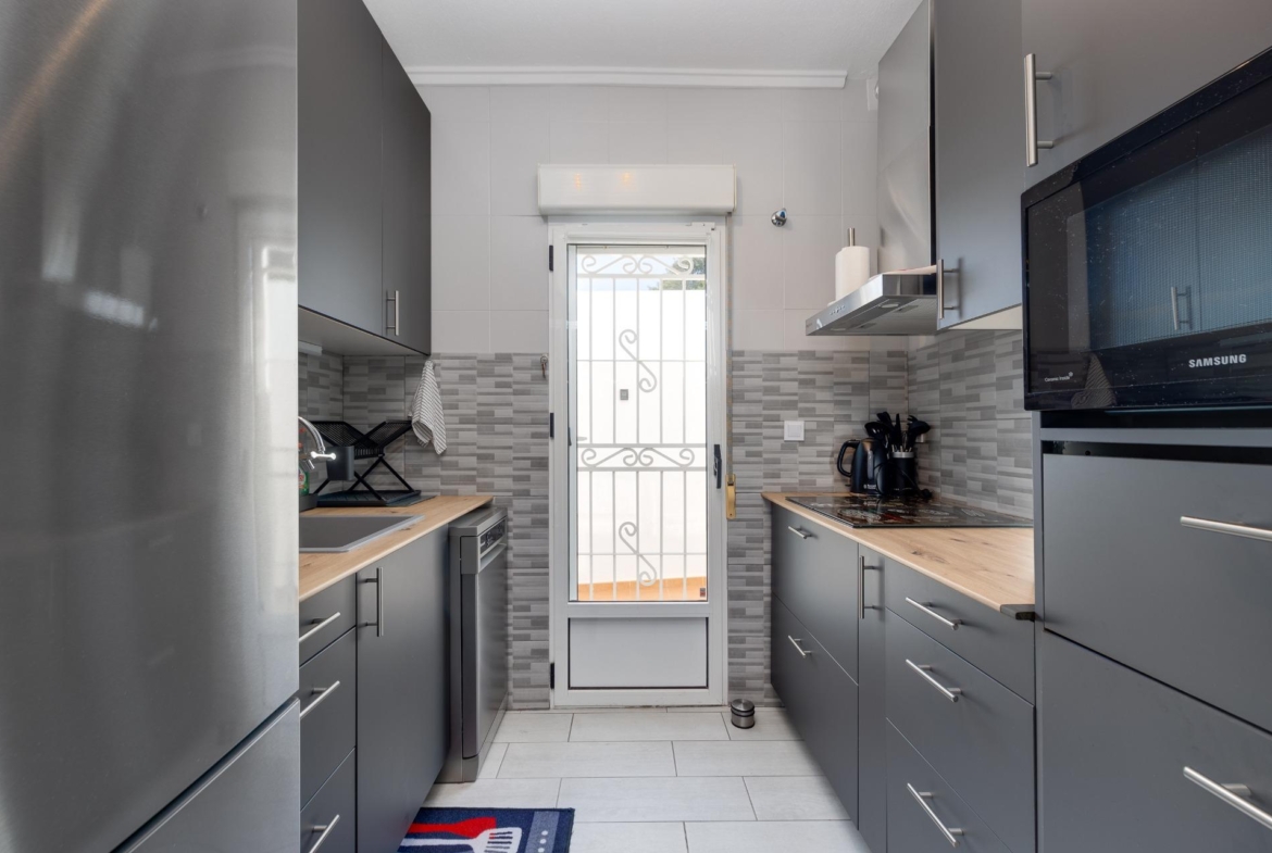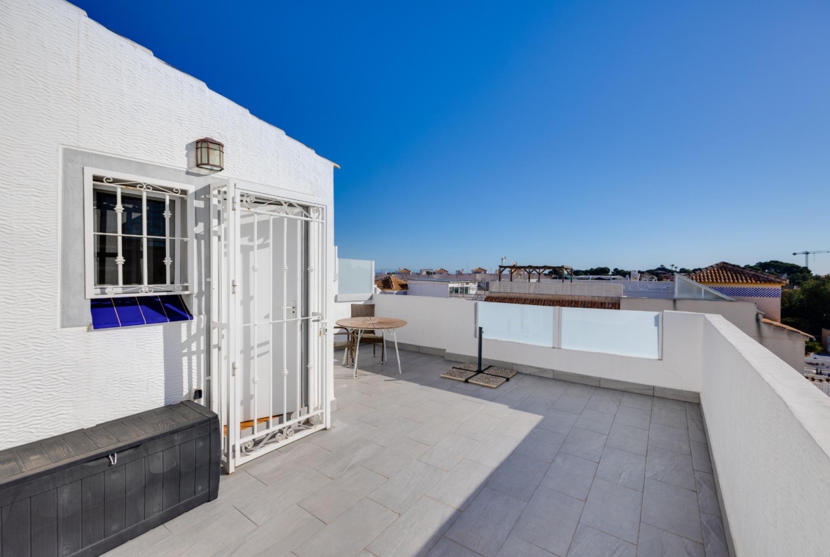 We present to you this stunning quad-style townhouse located in the desirable Dream Hills community of Los Altos. This beautifully furnished property features three spacious bedrooms ๐Ÿ›๏ธ and two modern bathrooms ๐Ÿšฟ, making it perfect for families or those seeking a holiday retreat. Enjoy plenty of sunshine in your expansive garden ๐ŸŒป, which includes a lovely porch area and an entrance suitable for vehicle parking ๐Ÿš—. You will also appreciate the convenience of having private laundry facilities ๐Ÿงบ and ample storage space with a dedicated storeroom.~~On the first floor, you’ll find another large terrace ideal for relaxation โ˜•๐Ÿชด as well as access to your own private solarium showcasing breathtaking unobstructed views ๐ŸŒ…! The location is just 300 meters from communal swimming pools๐ŸŠโ€โ™‚๏ธ surrounded by lush green areas ๐Ÿƒand free padel courts available exclusively for residents ๐ŸŽพ.~~Private numbered resident parking ensures ease when returning home after exploring all that nearby Torrevieja (10 minutes away) has to offer ๐Ÿ˜Š. La Zenia beach is also within easy reachโ€”just like other beautiful beaches within ten minutes’ drive โฑ๏ธ๐Ÿš™!~~Donโ€™t miss out on this exceptional opportunity ; make it yours today!~