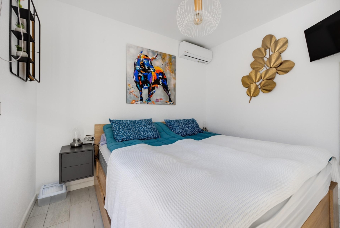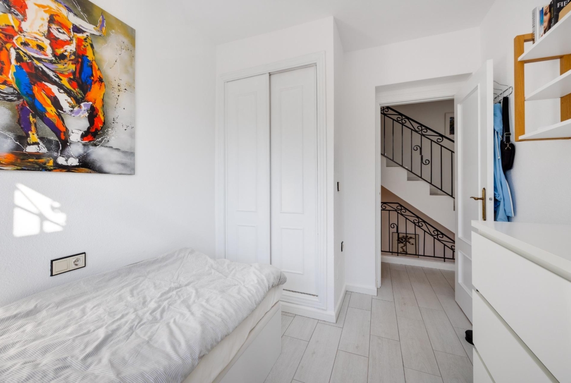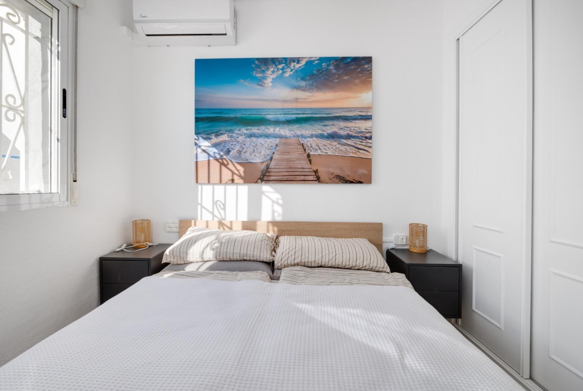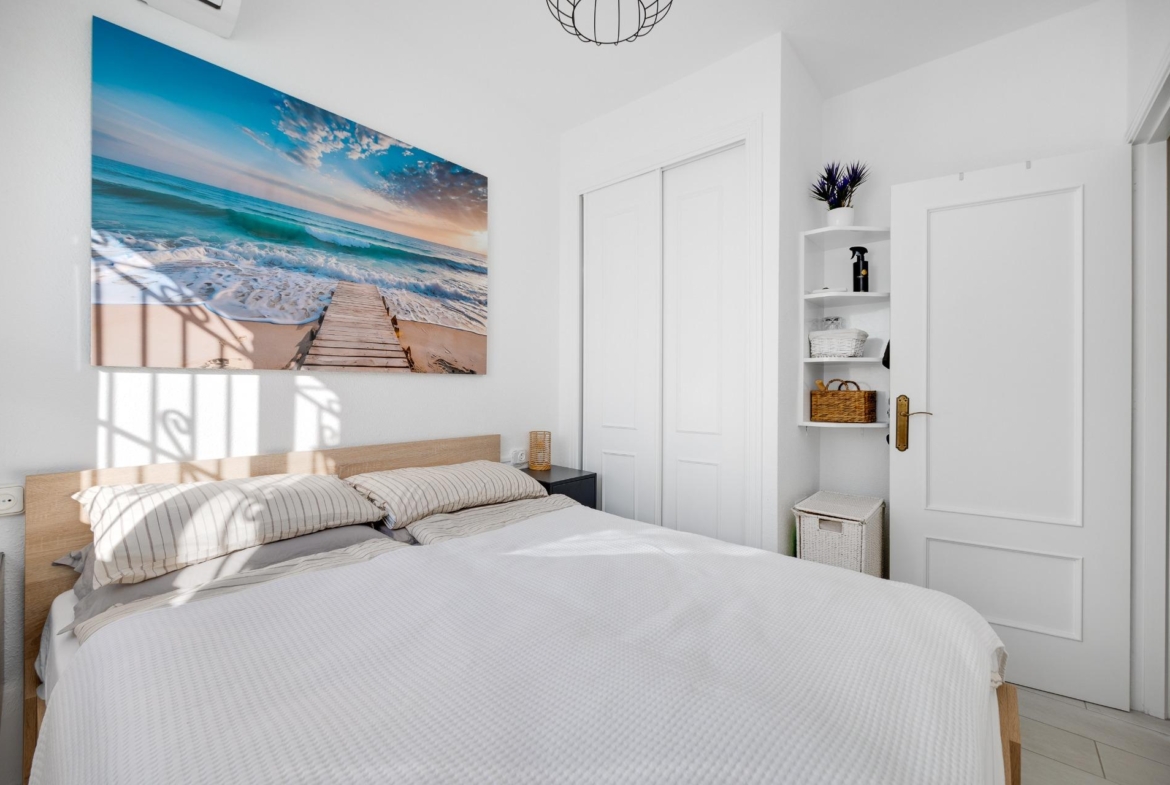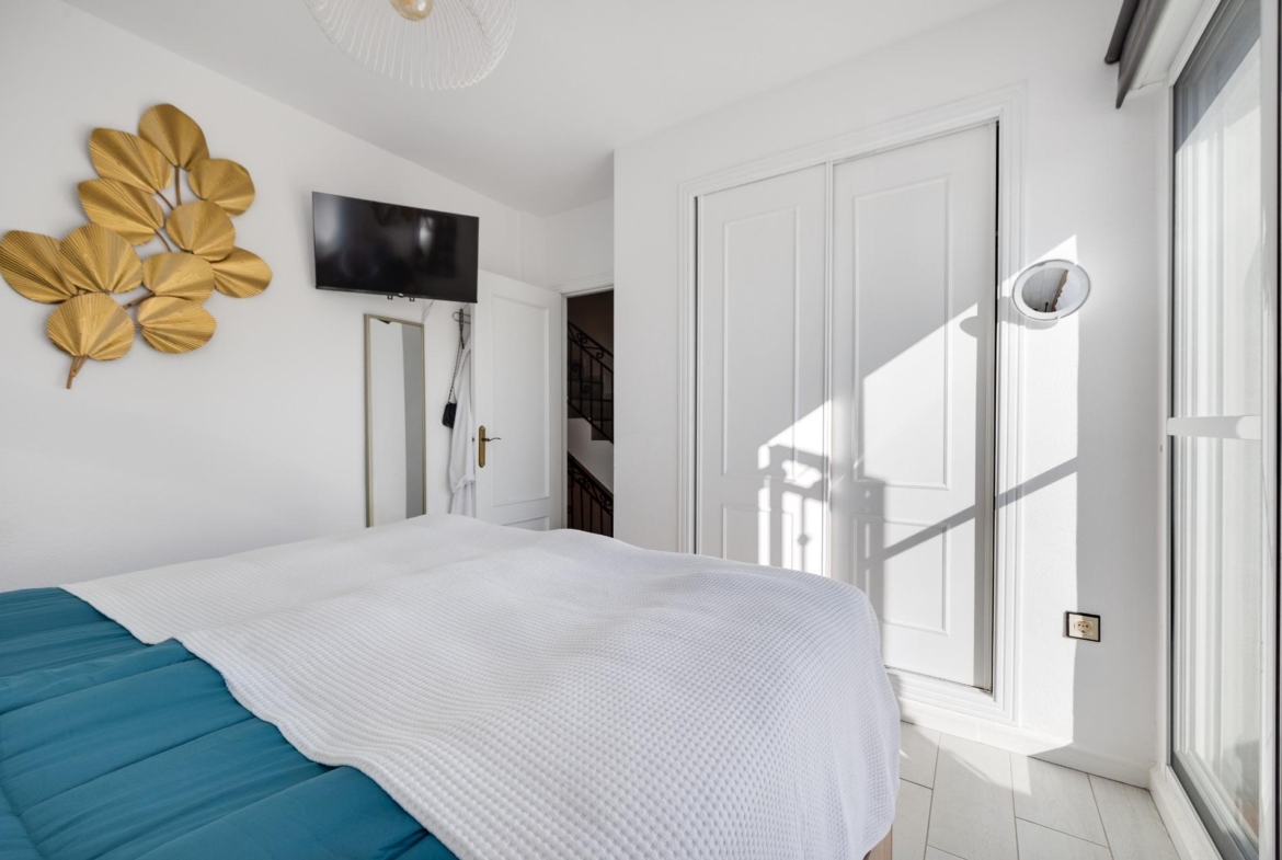 We present to you this stunning quad-style townhouse located in the desirable Dream Hills community of Los Altos. This beautifully furnished property features three spacious bedrooms ๐Ÿ›๏ธ and two modern bathrooms ๐Ÿšฟ, making it perfect for families or those seeking a holiday retreat. Enjoy plenty of sunshine in your expansive garden ๐ŸŒป, which includes a lovely porch area and an entrance suitable for vehicle parking ๐Ÿš—. You will also appreciate the convenience of having private laundry facilities ๐Ÿงบ and ample storage space with a dedicated storeroom.~~On the first floor, you’ll find another large terrace ideal for relaxation โ˜•๐Ÿชด as well as access to your own private solarium showcasing breathtaking unobstructed views ๐ŸŒ…! The location is just 300 meters from communal swimming pools๐ŸŠโ€โ™‚๏ธ surrounded by lush green areas ๐Ÿƒand free padel courts available exclusively for residents ๐ŸŽพ.~~Private numbered resident parking ensures ease when returning home after exploring all that nearby Torrevieja (10 minutes away) has to offer ๐Ÿ˜Š. La Zenia beach is also within easy reachโ€”just like other beautiful beaches within ten minutes’ drive โฑ๏ธ๐Ÿš™!~~Donโ€™t miss out on this exceptional opportunity ; make it yours today!~