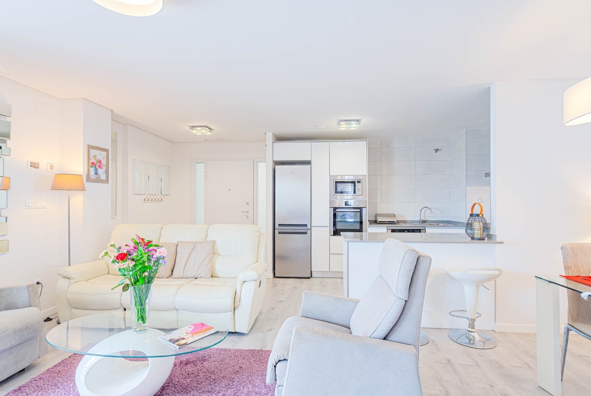 A great opportunity to own a home in Spain close to the sea. The apartment offers 2 bathrooms, a well-designed layout, and a comfortable living space, ideal for both permanent living and holiday stays. The building has a lift, and the property enjoys partial sea and city views from the terrace.