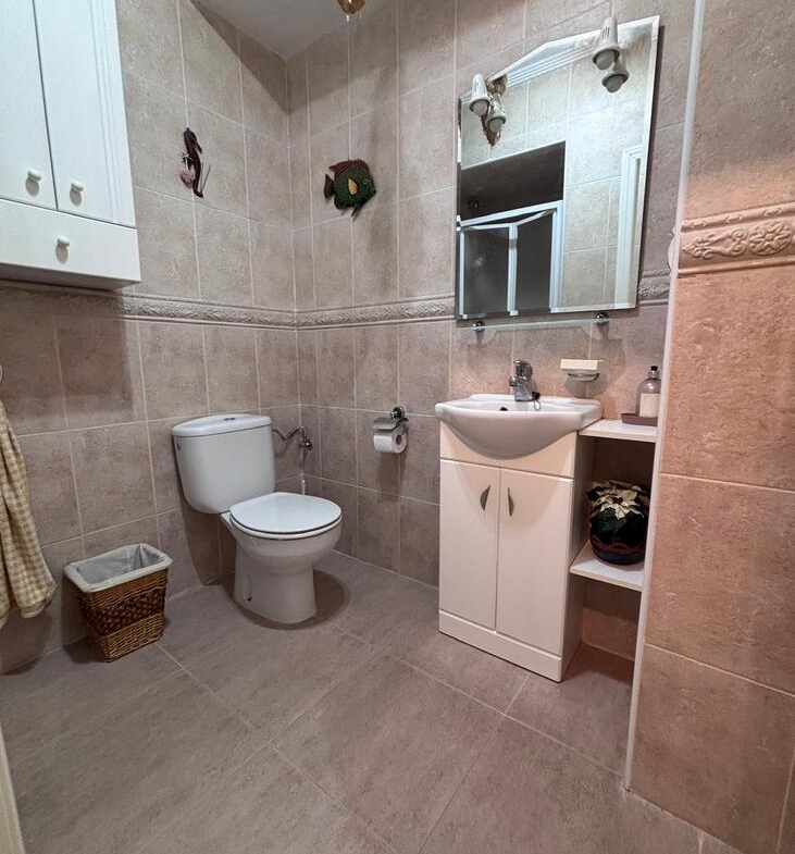 On the ground floor, you’ll also find a modern shower room for convenience. Upstairs, there are two generously sized double bedrooms with fitted wardrobes and a family bathroom. The main bedroom benefits from direct access to a lovely private terrace—ideal for enjoying the sunshine.
