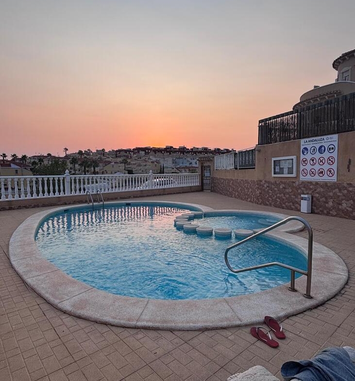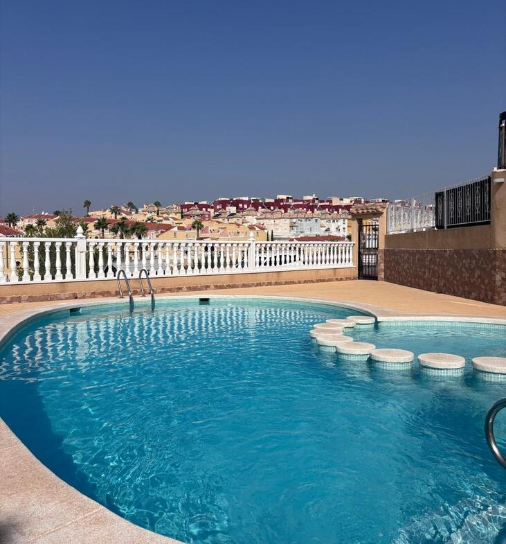 This lovely two-bedroom townhouse is situated within a secure gated community in the sought-after Villamartin area. The property features a nice front terrace that enjoys the morning sun, perfect for relaxing with a coffee or breakfast outdoors.