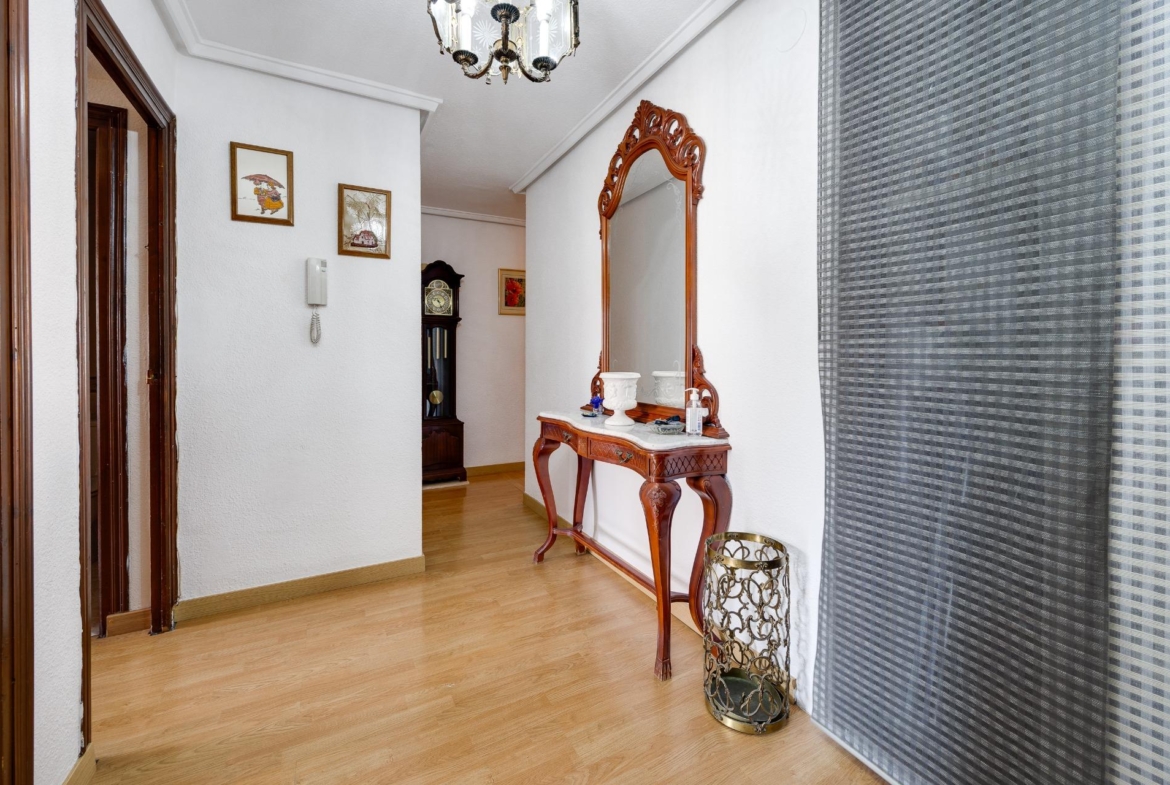 Apartment for sale on Caballero de Rodas Street, just 3 blocks from Playa del Cura.~~The apartment is on the fourth floor and includes 4 bedrooms, a spacious and cozy living room in perfect condition, with plenty of natural light and recently renovated.~~There are also 2 recently renovated, quite spacious bathrooms, and a large, fully independent kitchen with a utility room and cleaning equipment.~~Don’t hesitate to come and visit this spacious apartment full of possibilities in a fantastic area of Torrevieja, surrounded by all kinds of amenities and nearby beaches!~