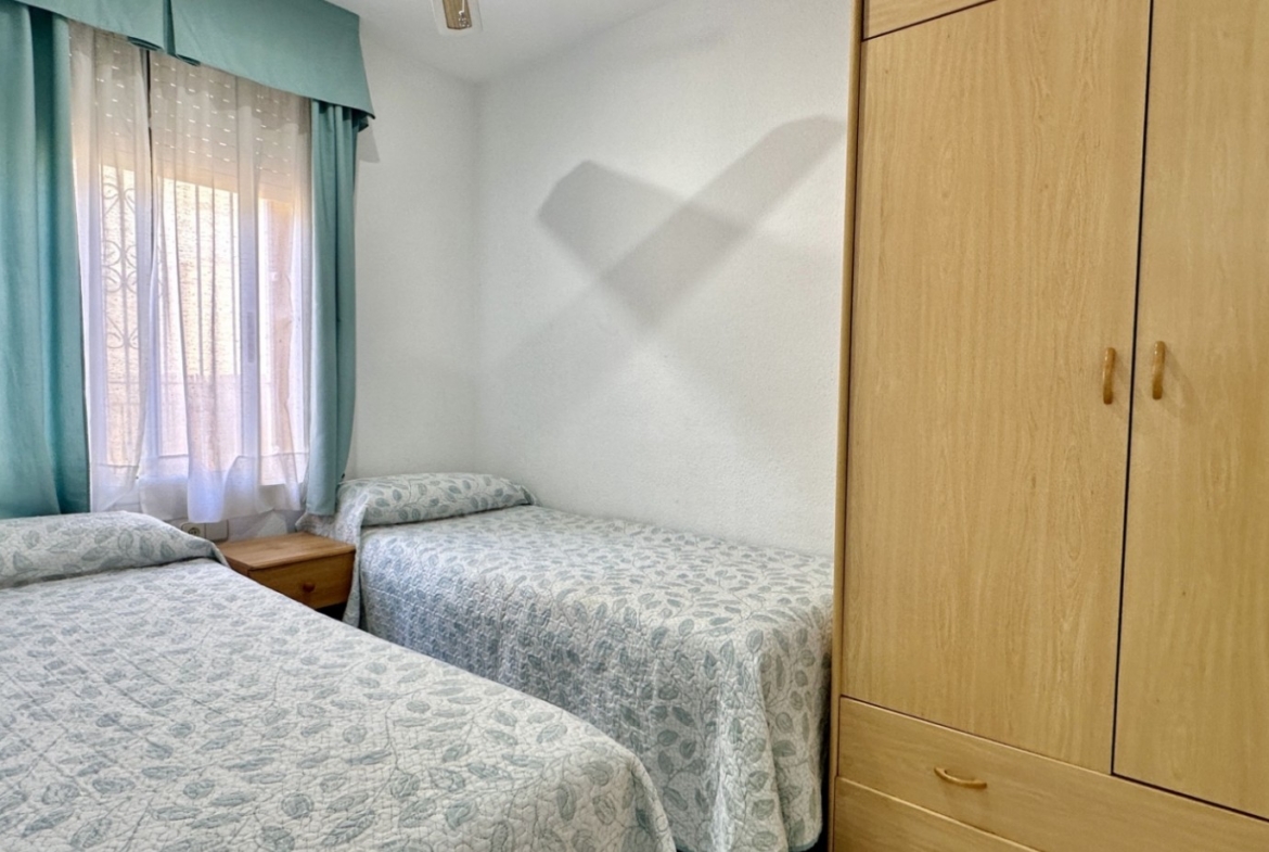 This well-maintained semi-detached chalet is located in a private residential complex in Playa Flamenca Norte, Orihuela Costa. The property offers a comfortable layout on one level and access to a communal swimming pool and garden areas.