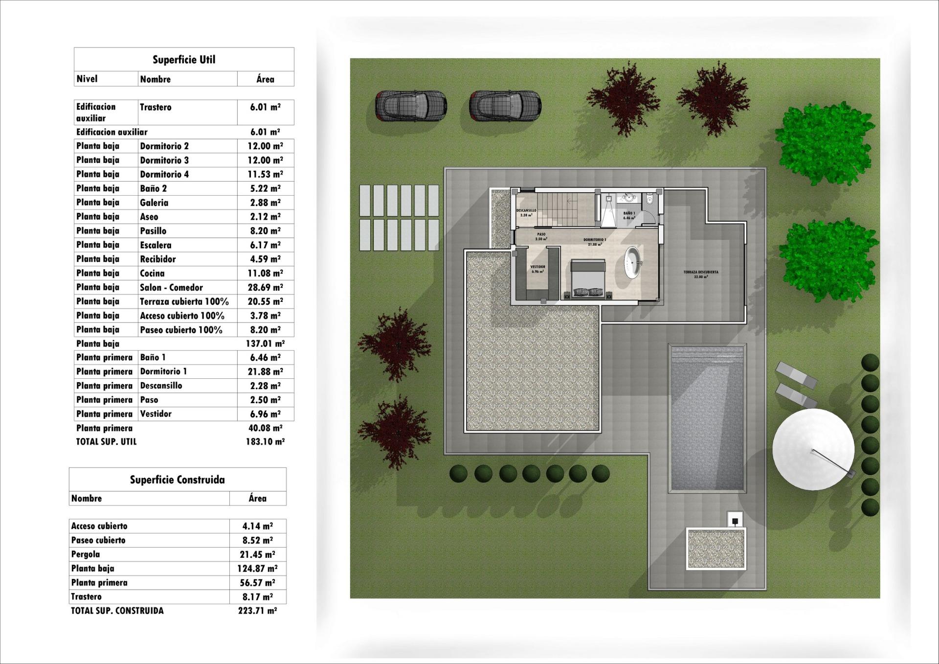 Newly built villas located in the municipality of Aspe. Newly built villas with several models to choose from, with 2, 3 or 4 bedrooms, on one or two floors and built with slabs or with a structure: depending on the model and the plot chosen, the exact price will be calculated. All the villas are built on rustic plots of over 10,000 m2, of which around 2,500 m2 will be fenced off. The villas have an open-plan kitchen with living room, built-in wardrobes, private swimming pool, porch, storage room and outdoor parking space. There are several plots to choose from. The price is based on a plot priced at €75 000 (if another plot is chosen, the difference will be paid or credited according to the price of the plot). Self-build project, delivery in approximately 12 months from the granting of the licence. If you are looking for a quiet environment, close to typical Spanish villages away from tourist crowds, surrounded by mountains, with a very large plot and about 30 minutes from the sea, this is your home. Aspe is a typical Spanish village with all the amenities for everyday life, surrounded by mountains and with several natural areas nearby where you can go hiking or mountain biking. Located 25 km from the beach, 9 km from Elche and about 20 km from Alicante airport.