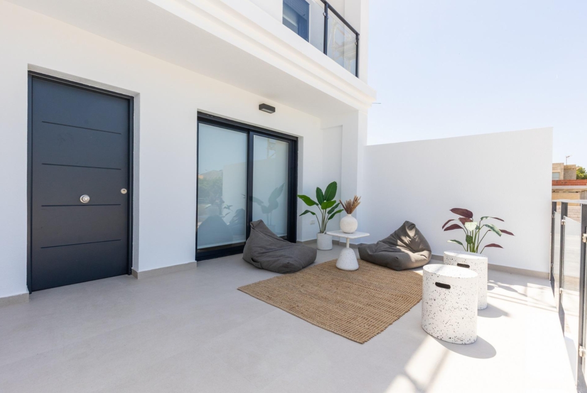Modern Townhouses with Solarium and Basement in Rafal, Alicante Spacious Homes in a Peaceful, Well-Connected Setting Located in the charming town of Rafal, in the heart of the Vega Baja region of Alicante, this newly regenerated residential development offers a unique opportunity to enjoy space, comfort, and quality of life in a relaxed Mediterranean environment. Set in a quiet area next to the municipal sports complex, this community is just a short walk from the town centre, where you will find all essential daily services. Exclusive Community of Just 9 Townhouses This boutique development consists of only 9 spacious townhouses, each with over 200 m² of built area including a 66 m² basement with private parking for 2 vehicles. The homes are distributed across three floors, featuring: 4 bedrooms 2 full bathrooms (one en-suite) 1 guest toilet on the ground floor Multiple terraces, including a private solarium on the second floor Communal pool with artificial grass area Enjoy open countryside views from the upper floors, and benefit from abundant natural light and generous interior spaces designed for modern family living. High-Quality Finishes and Energy Efficiency These homes are built with quality and sustainability in mind: Security entrance door Aluminium windows with thermal break and double glazing Motorised shutters in bedrooms and living room Resin shower trays with glass screens Pre-installed ducted air conditioning Hot water via aerothermal system Private off-street parking Come and visit the Show House to appreciate the wonderful finishings! With excellent access to the A-7 motorway, the development is well connected to major cities: Orihuela – 11 km Elche – 25 km Alicante – 45 km Murcia – 50 km Alicante-Elche Airport – 47 km Guardamar del Segura beaches – 25 km La Finca Golf Resort – 14 km A Sustainable Urban Renewal Project This project is the result of an ambitious urban regeneration initiative. Originally left incomplete due to the financial crisis, the buildings have now been transformed into modern, affordable, and sustainable homes, preserving their essence while adapting them to today’s standards. This development promotes responsible urban growth by reusing existing land instead of consuming new terrain. Your Ideal Home in the Vega Baja Region If you’re seeking a spacious, light-filled, and modern home in a peaceful yet well-connected town, this limited collection of just 9 homes offers comfort, exclusivity, and sustainable living. Get in touch today to reserve your place in this one-of-a-kind development in the heart of southern Alicante. 1049