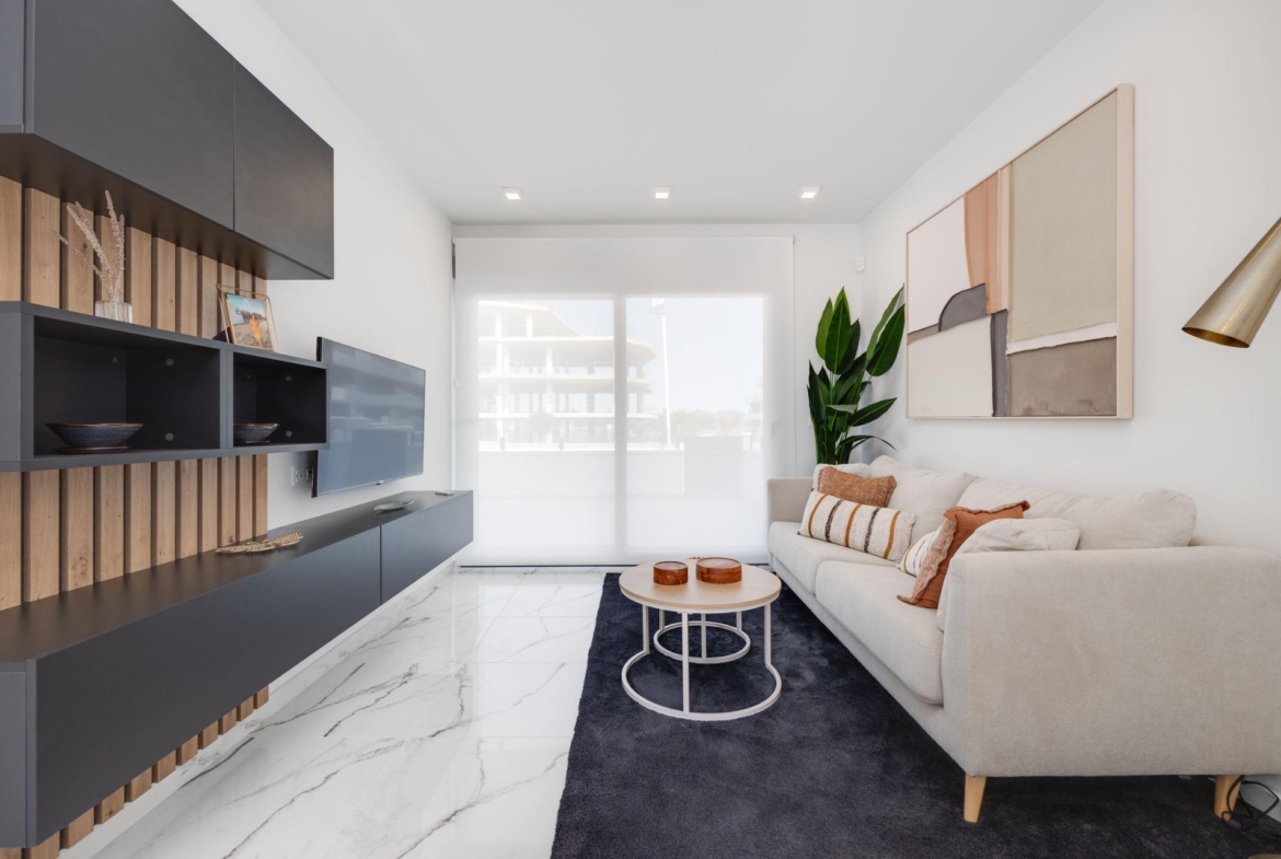 New residential development in San Miguel de Salinas, a stone’s throw from the centre Spacious apartments with impressive amenities This newly built residential complex in San Miguel de Salinas offers modern 2-bedroom apartments with spacious terraces, carefully distributed over seven floors. The gated community offers first-class facilities, including separate swimming pools for adults and children, lush green areas, a children’s playground and a petanque area. Privileged location on the Costa Blanca Nestled in the charming town of San Miguel de Salinas, this development enjoys a strategic location on the Costa Blanca. It is within walking distance of the town centre, where you will find all the essential services for daily life, including shops, restaurants and health centres. The property is a short drive from several points of interest: Las Colinas and Campoamor Golf Courses: Just 7 km away, perfect for golf lovers. Beaches of Orihuela Costa and Torrevieja: Located approximately 10 km from the residence, they offer beautiful sandy shores. Shopping Centres: Zenia Boulevard, a popular shopping destination, is only 9 km away. Alicante Airport: 50 km away. Murcia Corvera Airport: About 55 km away, ideal for regional connections. High-quality specifications Each apartment is designed with modern finishes and functionality in mind: Fully equipped kitchens with appliances included. Motorised blinds. Security entrance door. Hot water by aerothermal energy. Fully installed ducted air conditioning. LAUNCH OFFER: Furniture pack included for the first units sold. In addition, all apartments include a designated parking space. About San Miguel de Salinas San Miguel de Salinas is a picturesque municipality in the Vega Baja del Segura region, which forms part of the vibrant Valencian Community. Located near the border with Murcia, the town offers stunning views of the Torrevieja and La Mata lagoons, as well as a peaceful, family-friendly atmosphere. Your new home awaits Whether you are looking for a holiday retreat or a permanent residence, this new development in San Miguel de Salinas combines luxury, comfort and an unbeatable location. Contact us today to schedule a visit and take the first step towards owning your dream home on the Costa Blanca.