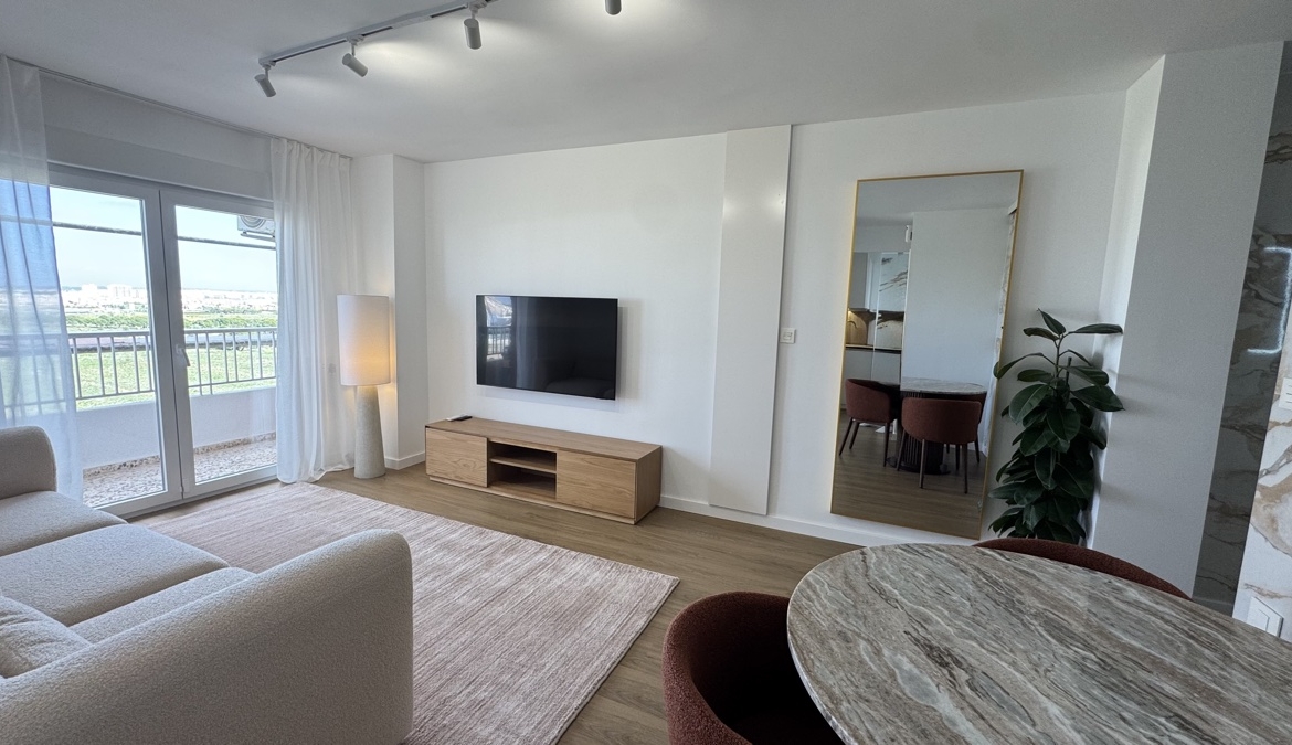 New on the market, this fully renovated corner penthouse in Punta Prima offers a rare opportunity to own a top-floor property with truly exceptional panoramic views, just 500 metres from the sea. This sixth-floor apartment combines privacy, natural light, and high-end finishes in one of the most sought-after coastal areas.