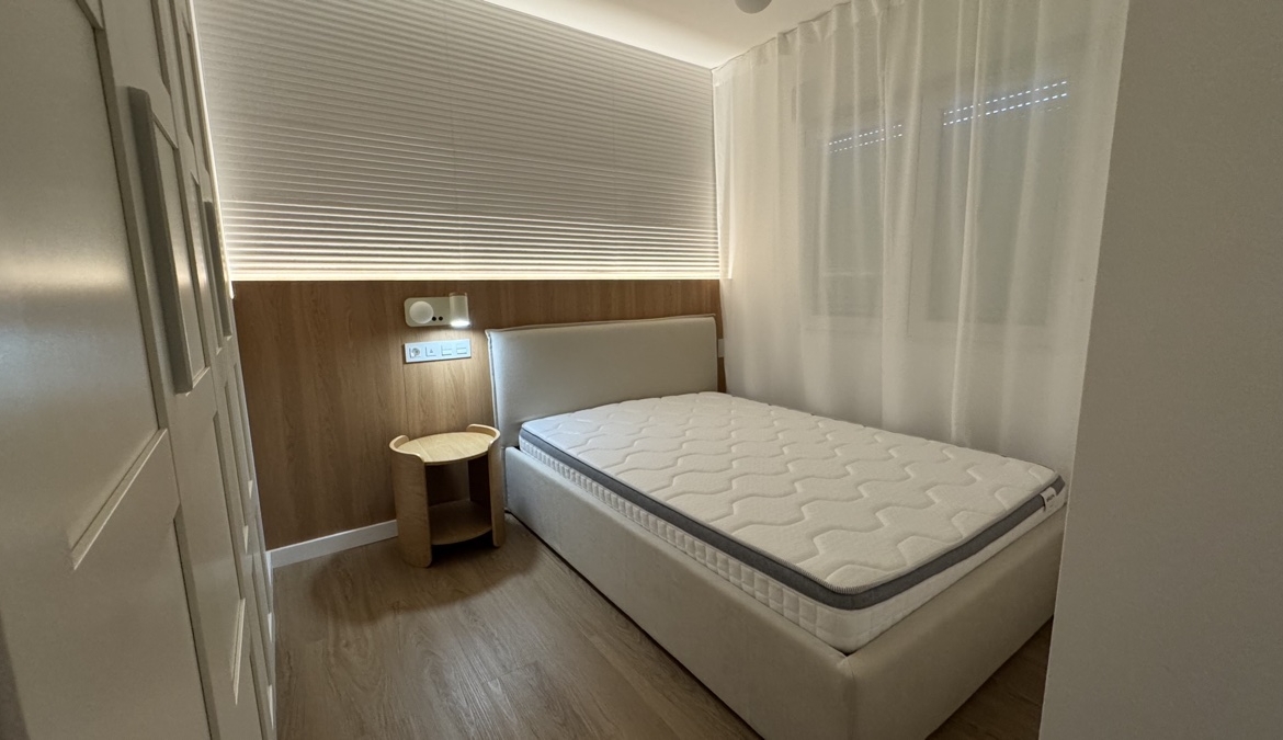 With a constructed area of 70 m², the penthouse comprises two bedrooms and one bathroom, all fully renovated to a high standard. Every window opens directly onto the terrace, ensuring there are no internal patios and enhancing the sense of space and connection to the outdoors. High-quality, sound-insulated panoramic windows and excellent overall insulation provide comfort and tranquility.