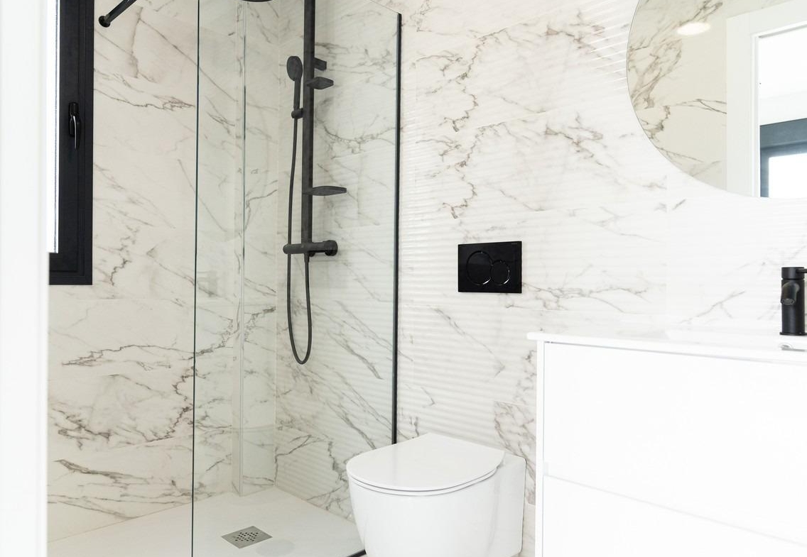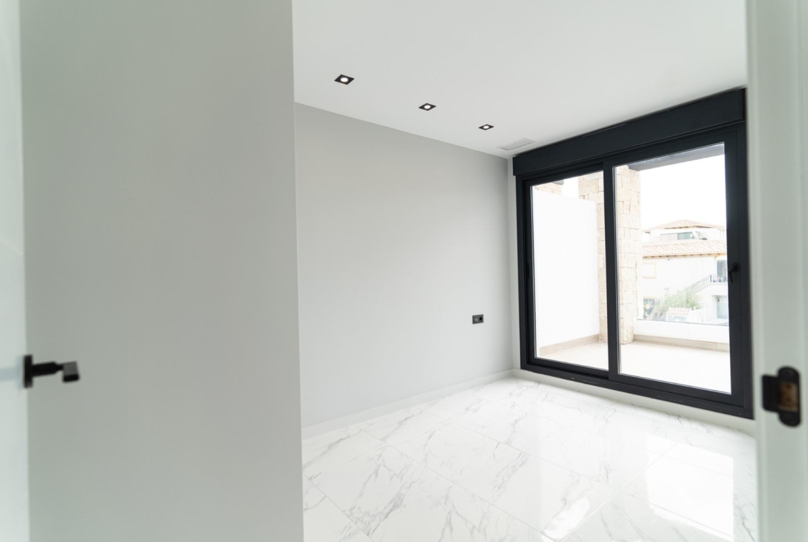 NEW BUILD RESIDENTIAL COMPLEX IN PUNTA PRIMA New Built residential complex of bungalow apartments and 7 detached villas in Punta Prima. New Build villas are distributed over two floors, plus the sunny roof terrace. On the ground floor there is a bright and spacious living room with its open plan kitchen, 1 bedroom with fitted wardrobe and 1 bathroom. On the first floor you can find other 3 bedrooms with fitted wardrobes and 2 bathrooms, from wich one en-suite with the main bedroom. From the main bedroom you can access a terrace. Stairs up you reach private solarium. The urbanization will offer nice green areas with a playground for children, a gym and two communal pools. Complex located a few meters from the centre of Punta Prima where you will find all the amenities you may need. In the surroundings you will find a wide range of nice restaurants, cafes, supermarkets, pharmacies and all the amenities you may need. Punta Prima, located just 5 km from Torrevieja, is characterized by good communication and health infrastructures, the proximity to Alicante airport, and the number of services open throughout the year. Just 10 km away we can find the golf courses of Villamartín, Campoamor, Las Ramblas, Las Colinas and Lo Romero, as well as the commercial centres of La Zenia and Habaneras.
