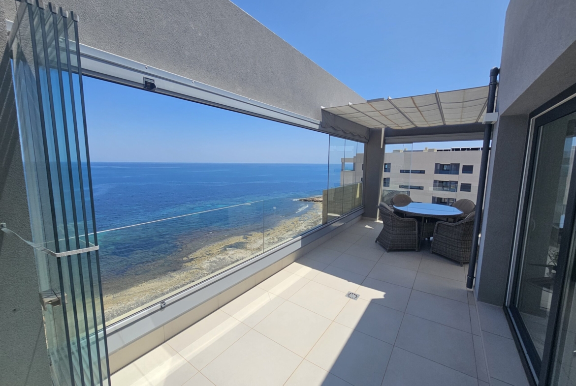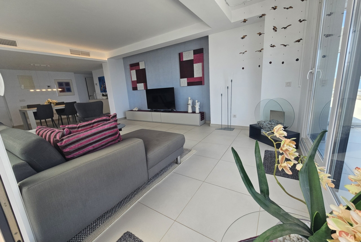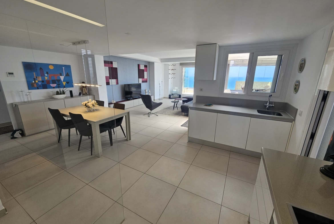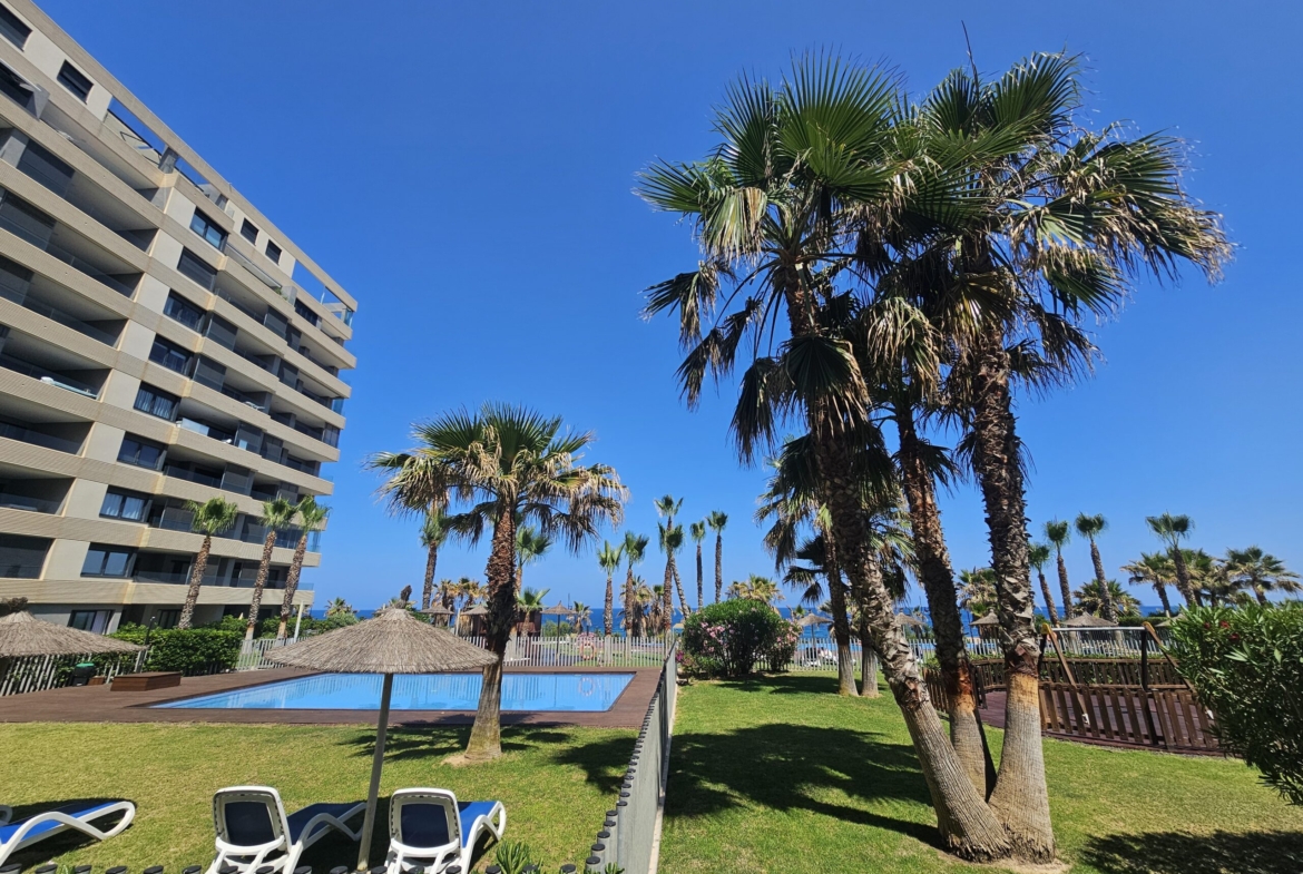 For sale an exceptional luxury penthouse on the beachfront with 3 bedrooms and 2 bathrooms and magnificent panoramic views of the Mediterranean Sea located in Punta Prima (Alicante) in the exclusive Panorama Mar residence, within a complex that offers excellent facilities next to the beach and the promenade, and close to all services. It is the last penthouse for sale with these views.