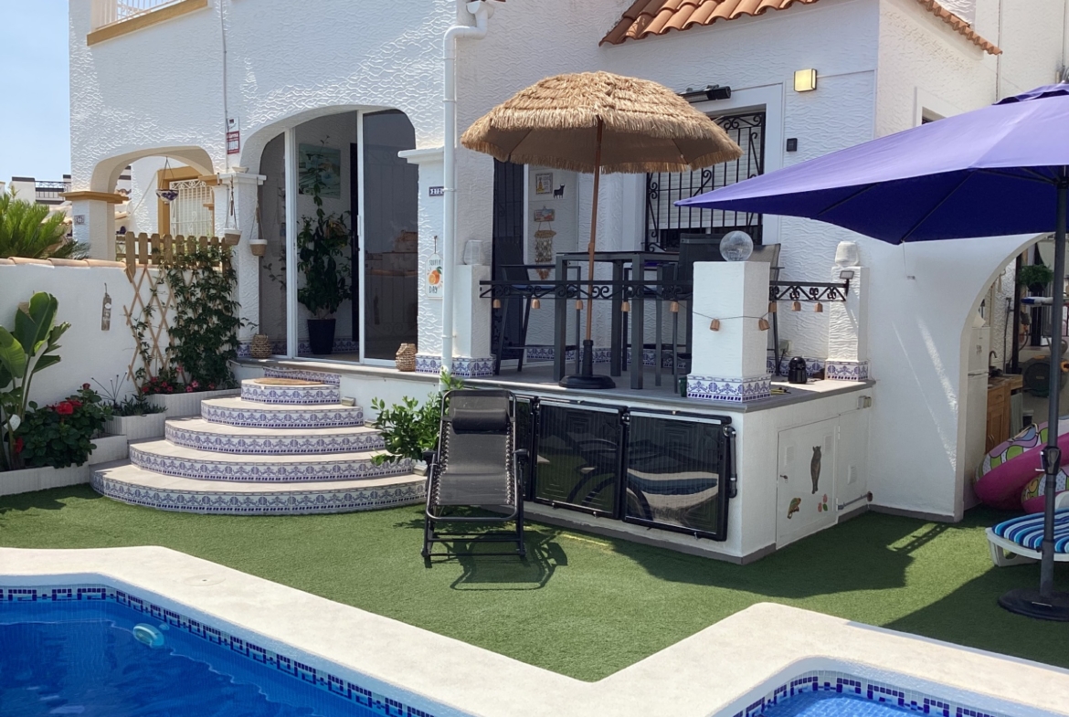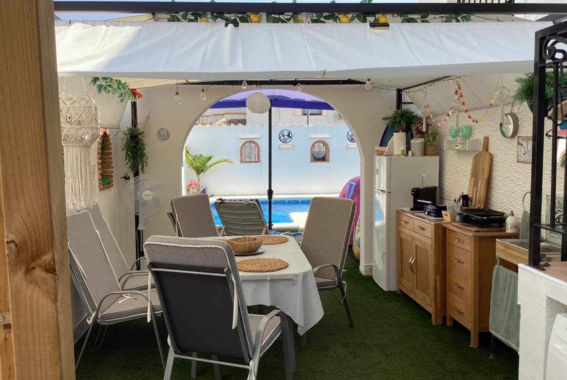 Welcome to your own Ibiza-style villa with a private pool in sunny Los Altos. Los Altos is a popular residential area just minutes from the coast and the vibrant city of Torrevieja. This beautiful, south-east-facing, fully renovated quad-home offers a wealth of light, a spacious feel, and breathtaking views of the salt lakes in the distance.