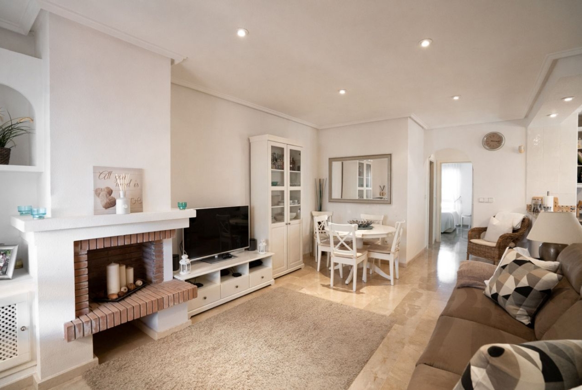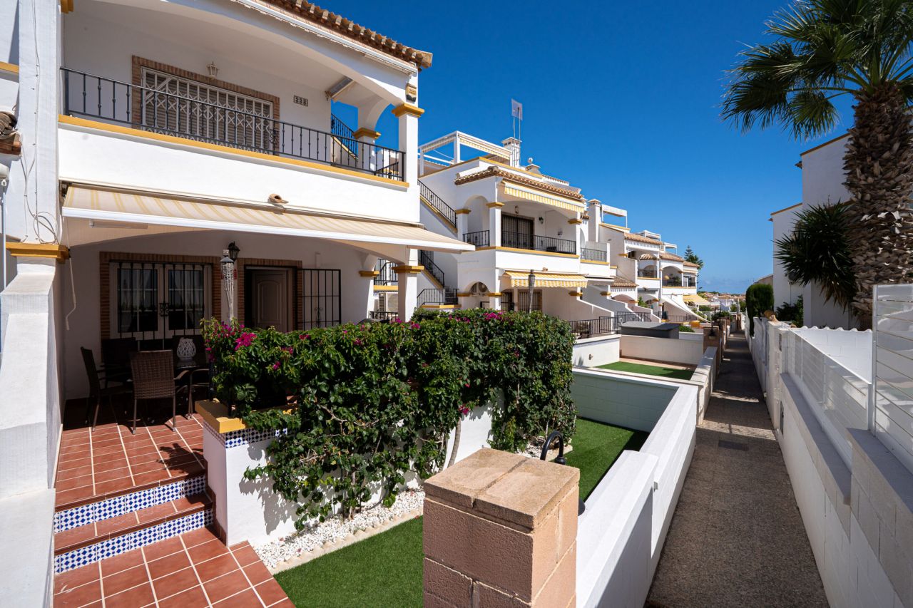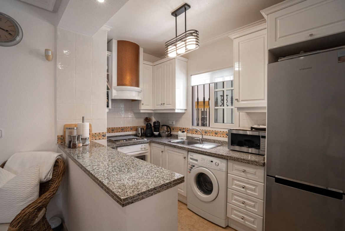 We are very pleased to welcome you to this cozy, well-kept and partially renovated ground floor apartment in one of Villamartin’s most sought-after areas, namely Los Dolses. The apartment consists of two bedrooms, two renovated bathrooms, living room and open kitchen with attached laundry room. From the living room you have access to the spacious terrace which is located in the sunniest south facing position with sun all day. From the terrace you can also go down to the plot. The home is in very good condition both inside and out. The community has a shared lush pool area where you can take a refreshing dip when it gets really hot.