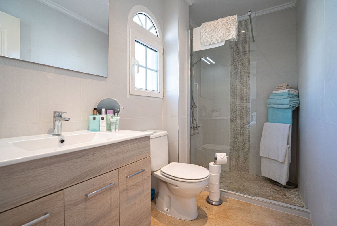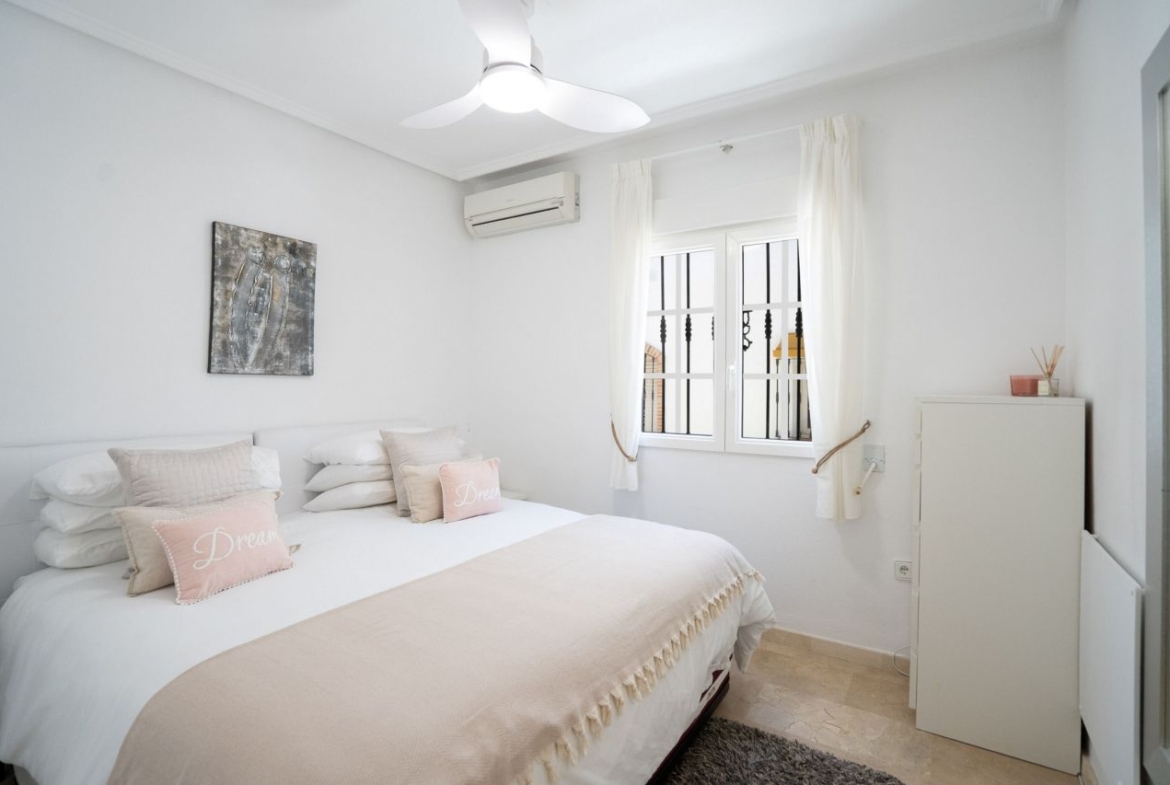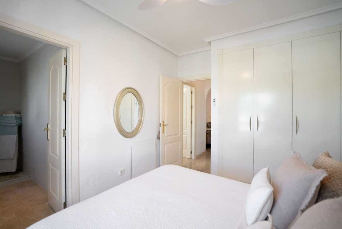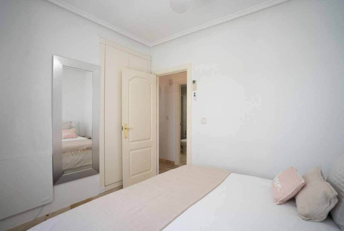 We are very pleased to welcome you to this cozy, well-kept and partially renovated ground floor apartment in one of Villamartin’s most sought-after areas, namely Los Dolses. The apartment consists of two bedrooms, two renovated bathrooms, living room and open kitchen with attached laundry room. From the living room you have access to the spacious terrace which is located in the sunniest south facing position with sun all day. From the terrace you can also go down to the plot. The home is in very good condition both inside and out. The community has a shared lush pool area where you can take a refreshing dip when it gets really hot.