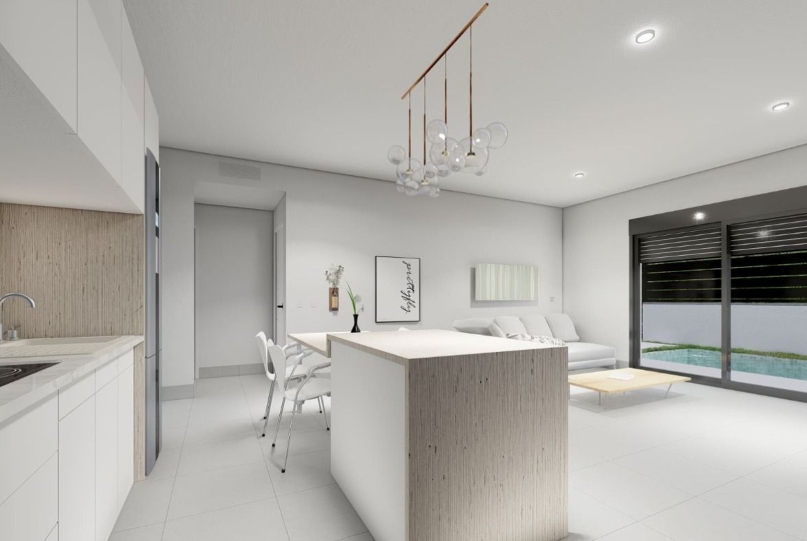 NEW BUILD SEMI-DETACHED VILLAS IN ROLDAN New Build luxury complex of one or two levels semi-detached villas in Roldan. You have an option of semi-datached villas with 2 bedrooms, 2 bathrooms build over one floor with solarium or with 3 bedrooms, 3 bathrooms build over two floors with lalrge terrace. On the top floor, on the terrace or solarium you will have a summer kitchen that allows you to enjoy all hours of sunshine, every day of the year. All villas has private garden with with pool and parking space. Designed with a contemporary style and open planned concept, comprising a fully-fitted kitchen and lounge-dining room. The development is located in Roldán (Murcia), within a gated and security control resort. Is near the beach, surrounded by services, parks, sports facilities and several Golf Courses. The property will meet the highest standards and will be equipped with: Private swimming pool preinstalled for heating system and with solar shower. Kitchen completely furnished and equipped with oven, microwave, fridge, integrated dishwasher and extractor fan. Also, central wooden island. Lighting: LED inside the property as well as in outdoor areas. Lined wardrobes with drawers. Fully fitted bathrooms with suspended toilet, shower screens, vanity unit, mirror with light and rainfall shower. Summer kitchen in solarium. Pre-installation for ducted air conditioning. Parking space on the plot. Roldan itself is a traditional town with all the local amenities you will need including Supermarkets, Restaurants, Bars, Health Clinic, Pharmacy, Police Station, Petrol Station, Mechanics, Dentists, Doctors and more. The nearby golf resorts of La Torre, & Terrazas are easily accessible, Corvera Airport is 15 minutes away & the beaches of the Mar Menor just 20 minutes drive.