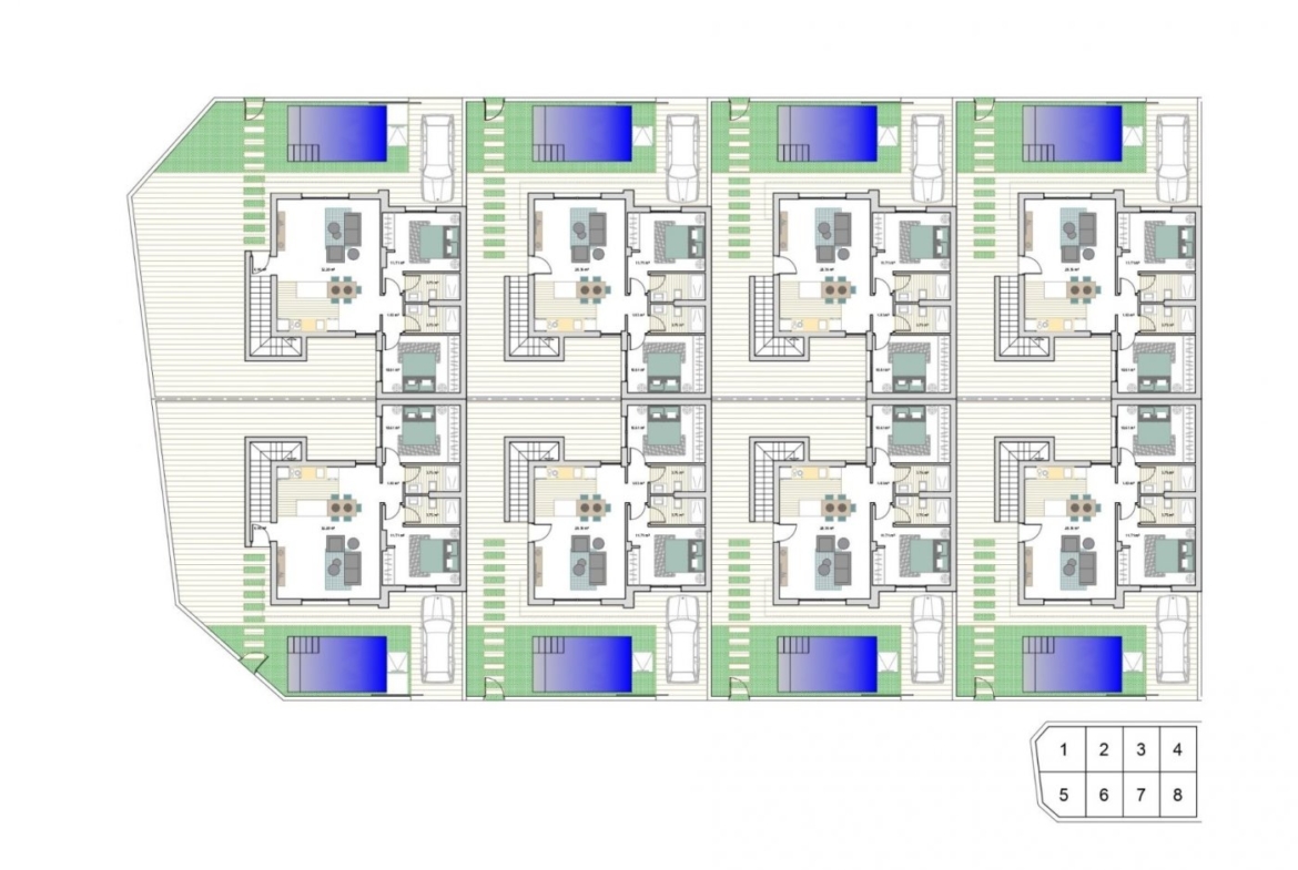 NEW BUILD SEMI-DETACHED VILLAS IN ROLDAN New Build luxury complex of one or two levels semi-detached villas in Roldan. You have an option of semi-datached villas with 2 bedrooms, 2 bathrooms build over one floor with solarium or with 3 bedrooms, 3 bathrooms build over two floors with lalrge terrace. On the top floor, on the terrace or solarium you will have a summer kitchen that allows you to enjoy all hours of sunshine, every day of the year. All villas has private garden with with pool and parking space. Designed with a contemporary style and open planned concept, comprising a fully-fitted kitchen and lounge-dining room. The development is located in Roldán (Murcia), within a gated and security control resort. Is near the beach, surrounded by services, parks, sports facilities and several Golf Courses. The property will meet the highest standards and will be equipped with: Private swimming pool preinstalled for heating system and with solar shower. Kitchen completely furnished and equipped with oven, microwave, fridge, integrated dishwasher and extractor fan. Also, central wooden island. Lighting: LED inside the property as well as in outdoor areas. Lined wardrobes with drawers. Fully fitted bathrooms with suspended toilet, shower screens, vanity unit, mirror with light and rainfall shower. Summer kitchen in solarium. Pre-installation for ducted air conditioning. Parking space on the plot. Roldan itself is a traditional town with all the local amenities you will need including Supermarkets, Restaurants, Bars, Health Clinic, Pharmacy, Police Station, Petrol Station, Mechanics, Dentists, Doctors and more. The nearby golf resorts of La Torre, & Terrazas are easily accessible, Corvera Airport is 15 minutes away & the beaches of the Mar Menor just 20 minutes drive.