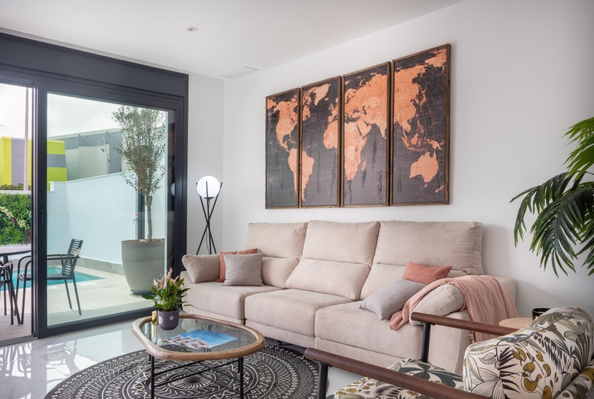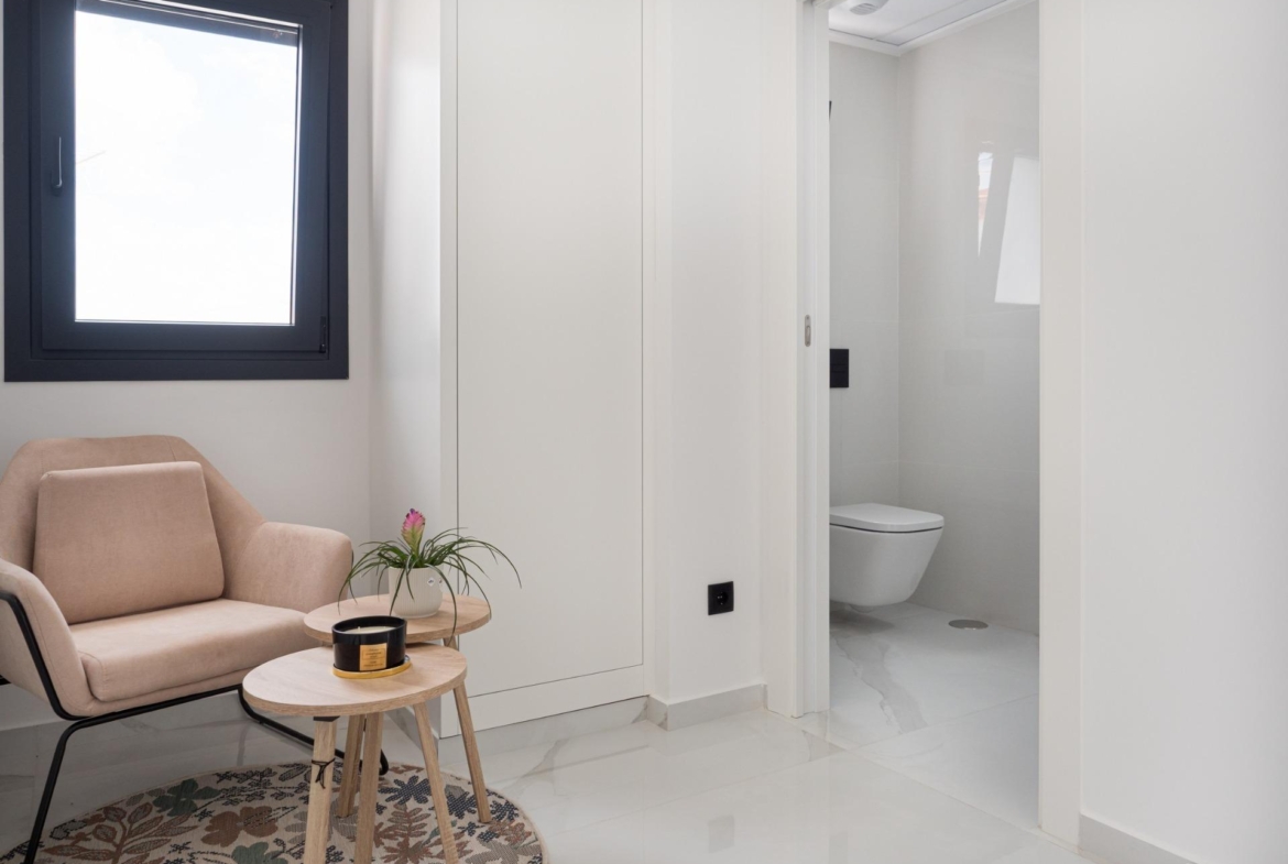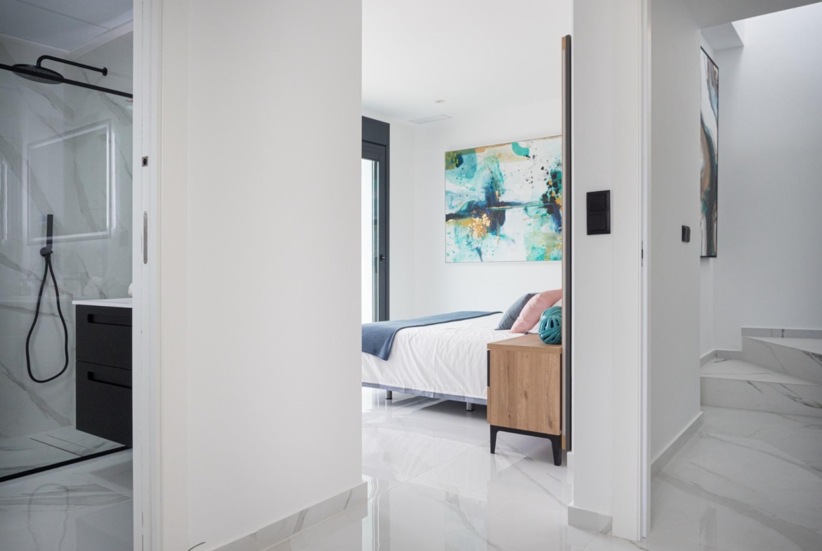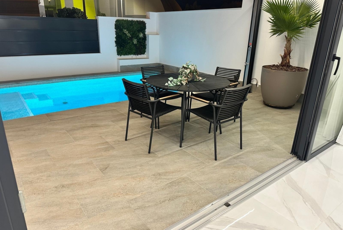 Modern New Build Villas for Sale in San Pedro del Pinatar – Close to Beach and Town Centre Exclusive Residential Project in Costa Cálida This new boutique development consists of just four contemporary independent villas, ideally located in a quiet residential area near the centre of San Pedro del Pinatar, Murcia. Just 1.4 km from the beaches of Lo Pagán, these homes offer the perfect combination of comfort, privacy, and proximity to essential services and coastal attractions. San Pedro del Pinatar is one of the most sought-after destinations on the Costa Cálida, known for its natural salt lagoons, therapeutic mud baths, and a wide variety of leisure, dining, and wellness options. With both the Mediterranean Sea and Mar Menor within easy reach, this location is ideal for enjoying year-round sunshine and a relaxed lifestyle. Contemporary Design and Smart Layout Each villa features: 3 bedrooms and 3 bathrooms, including two en-suite bathrooms Open-plan kitchen and living area, with direct access to a spacious terrace Ground floor bedroom and bathroom, ideal for guests or multi-generational living Private swimming pool with LED lighting and outdoor solar shower Large rooftop solarium for sunbathing, entertaining or relaxing Plot with private parking space The homes have been designed with modern living in mind, offering high-quality finishes and smart installations: Security entrance door Motorised aluminium shutters Pre-installation of ducted air conditioning Underfloor heating in bathrooms Fitted bathrooms with illuminated mirrors and furniture A show villa is available for viewing, allowing you to experience the high standards and layout in person. Prime Location with Excellent Connectivity These villas are perfectly located to enjoy both tranquillity and convenience. All daily services including shops, restaurants, supermarkets, and health centres are within walking distance. In addition, the area is well connected by road and public transport. Distances to main points of interest: Lo Pagán Beach: 1.4 km Mar Menor beaches: 2 km Dos Mares Shopping Centre: 3.5 km Lo Romero Golf Course: 10 km Roda Golf Resort: 9 km Murcia International Airport: 35 km (25 minutes by car) Alicante Airport: 75 km (45 minutes by car) Reserve Your New Villa in San Pedro Today This is a rare opportunity to own a newly built villa in one of the most desirable coastal areas of Murcia. With limited units available, contact us now to receive more information, schedule a visit, or secure your dream home by the sea.
