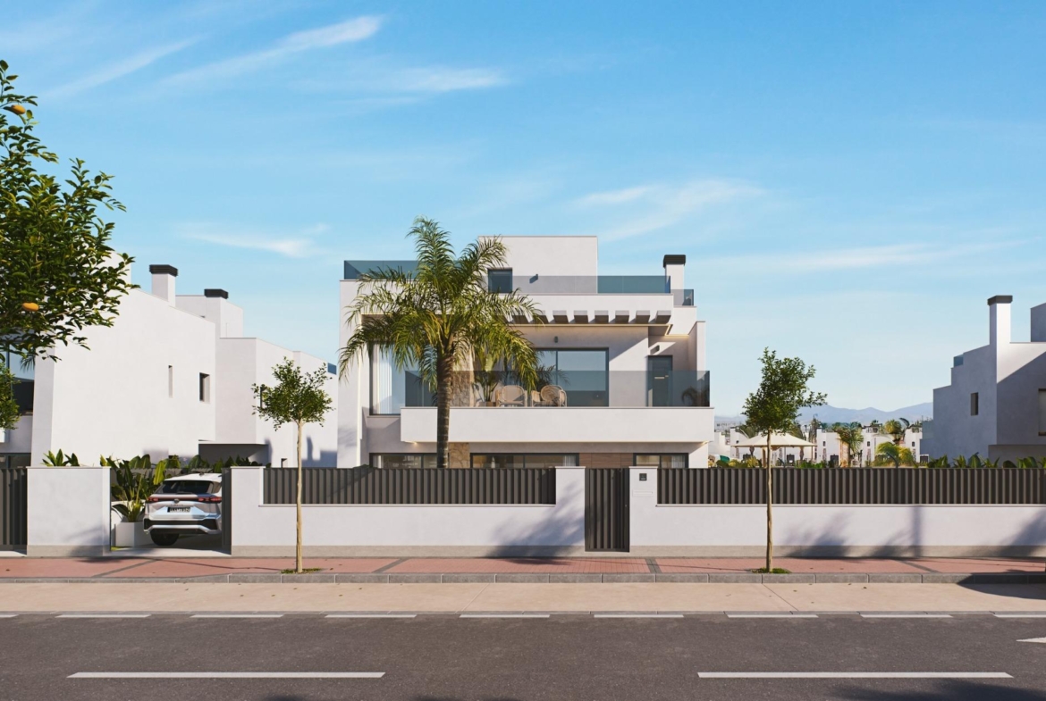 Modern Semi-Detached Villas at Santa Rosalía Lake and Life Resort – A New Standard of Mediterranean Luxury Contemporary Design Inspired by the Mediterranean Discover these exclusive new semi-detached villas located in the prestigious Santa Rosalía Lake and Life Resort, a unique residential destination on the Costa Cálida. Inspired by Mediterranean architecture, these villas combine clean lines, natural light, and modern comfort to create a harmonious and elegant living environment. Each villa is designed to provide a perfect balance between luxury and relaxation, making it ideal as a permanent residence, holiday home, or investment opportunity. Spacious Layout and High-End Finishes Each villa offers 220 m² of living space distributed across a basement, two main floors, and a rooftop solarium, set on generous 295 m² plots. The homes feature 4 bedrooms and 4 bathrooms (3 en suite), providing ample space for family and guests. The private pool with jacuzzi area, large terraces, and rooftop solarium with summer kitchen and toilet invite you to enjoy the region’s exceptional climate all year round. Premium specifications include: Fully furnished kitchen with Bosch appliances Bathrooms with furniture, mirrors, shower screens, and towel heaters Armoured entrance door and motorized access gate for vehicles LED spotlights throughout the interior and exterior Ducted air conditioning (installed on both floors) Private pool with jacuzzi area 2 photovoltaic solar panels for energy efficiency Summer kitchen in the garden Underground level with English patio for natural light and ventilation Resort-Style Living at Santa Rosalía Santa Rosalía Lake and Life Resort is a private, gated community with 24-hour security, designed around an impressive 126,000 m² of green areas. Residents enjoy walking and cycling paths, sports facilities, paddle and tennis courts, mini-golf, gardens, dog parks, and leisure zones. The clubhouse and the resort’s centerpiece-a stunning 17,000 m² crystal-clear lagoon surrounded by white sandy beaches and palm trees-offer a true Caribbean-inspired lifestyle. The lagoon even features two islands, one with its own bar, and several beach chiringuitos for relaxed dining. Prime Location on the Costa Cálida The development enjoys a central location within the resort, close to the lagoon and beach club. It’s less than 4 km from Los Alcázares Beach, 15 minutes from Cartagena, and only 22 km from Murcia International Airport. Golf enthusiasts will find several top-rated courses within a short drive, while local marinas, restaurants, and shopping areas complete the vibrant lifestyle offering. Your Exclusive Mediterranean Retreat Awaits Experience the perfect combination of luxury, comfort, and wellbeing in the heart of the Costa Cálida. Contact us today to schedule a visit and discover your dream villa at Santa Rosalía Lake and Life Resort.