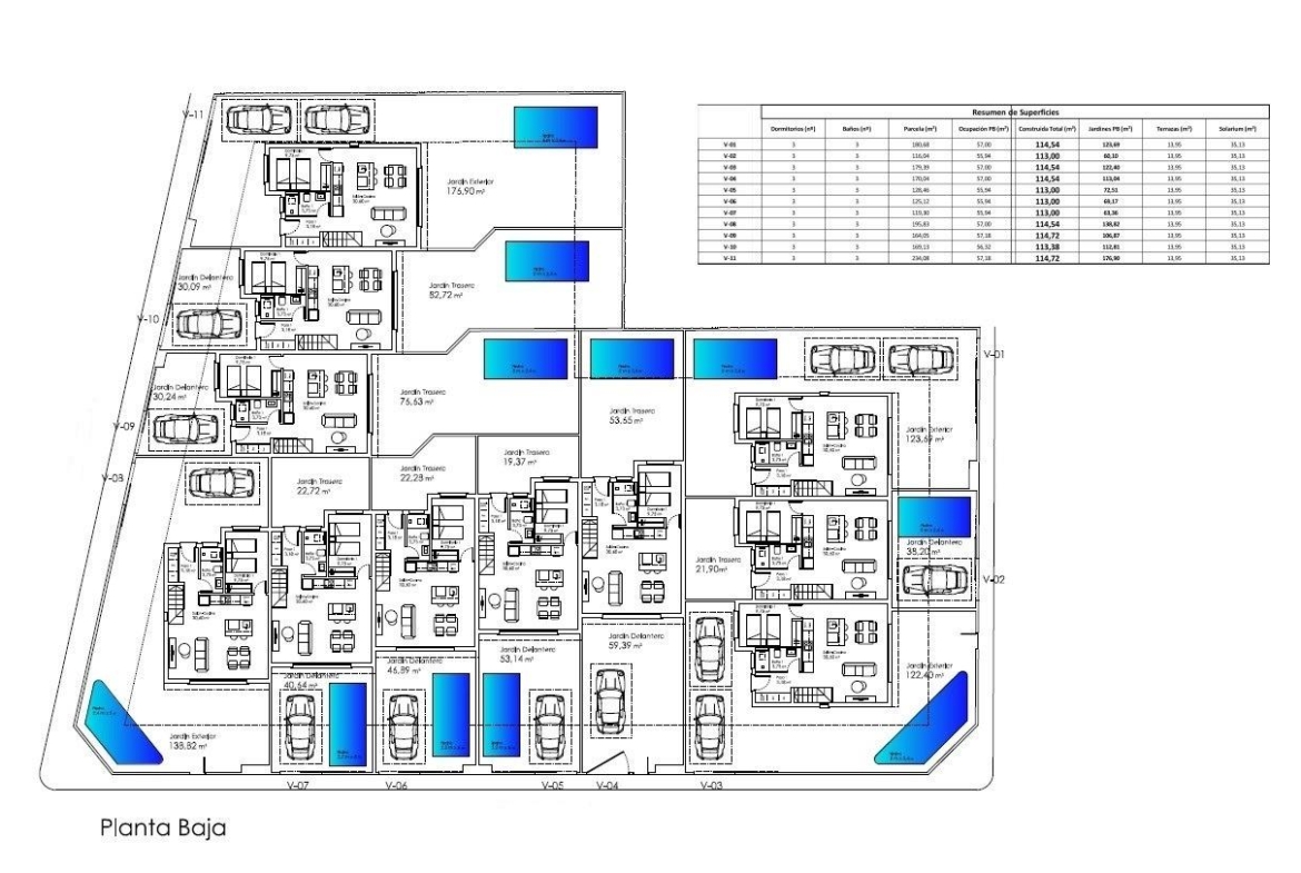 NEW BUILD TOWNHOUSES IN SANTIAGO DE LA RIBERA New Build development of 11 townhouses in Santiago de la Ribera, 100 metres from the beach! Beautiful properties with 3 bedrooms and 3 bathrooms, open plan kitchen with living room, fitted wardrobes, terrace, solarium, private garden with swimming pool and parking space. Just 5 minutes walk along the promenade, next to the yacht club, will take you to the centre of Santiago de la Ribera, with all the services at your fingertips, street market, bars, restaurants, ice cream parlours, shops, water activities and everything you need to enjoy the Mediterranean lifestyle in the Mar Menor. Santiago has a modern feel, although it still maintains its ‘fishing village’ atmosphere. It has a very beautiful promenade, which is lined by majestic palm trees and 2 kilometres of wonderful sandy beaches. From here you can take a boat trip out across the calm waters of the Mar Menor, to the La Manga Strip on the opposite side. The main shopping area is really in the town of San Javier, but there are some some shops in the narrow streets to browse, try visiting on a Wednesday morning when there is a large street market. The villas are walking distance to shops, bars, restaurants, Dos Mares shopping centre and the fantastic beaches of the Mar Menor and 20 minutes to the popular Zenia Boulevard – everything is within easy reach! Just 30 minutes from Cartagena city and the new International Murcia airport. 1049
