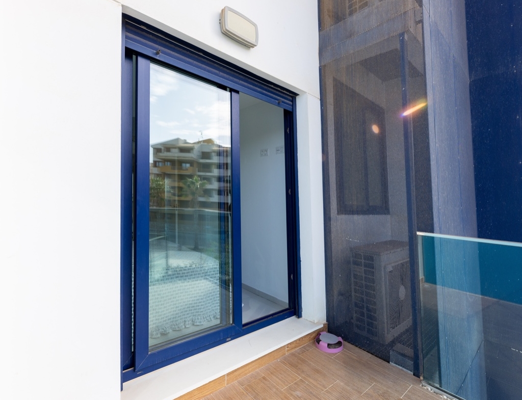 We offer you for sale this beautiful apartment situated in the best frontline community in Punta Prima – in “Sea Senses”. On the first spacious terrace you can enjoy panoramic sea views and the communal areas, and from the second one surrounding beauty. Apartment consists of 2 bedrooms, 2 bathrooms, living room, fully equipped kitchen with breakfast bar and utility room.
