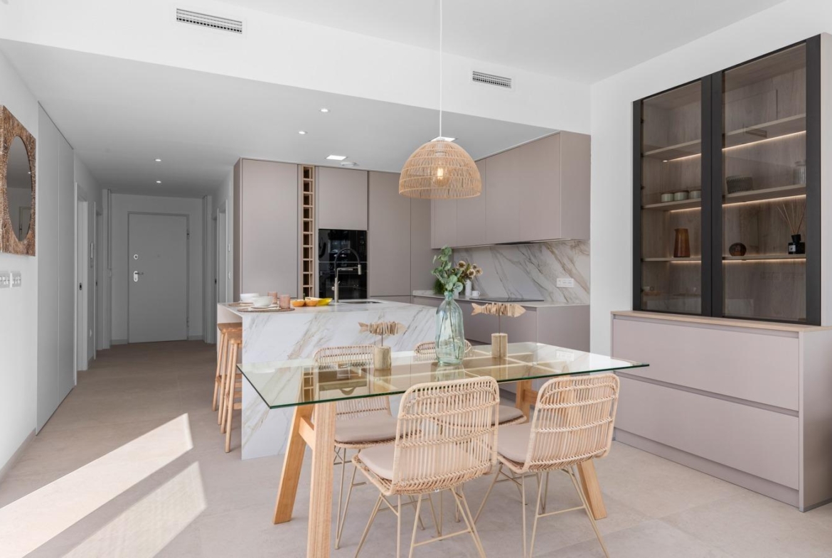 New Build Apartments and Villas Frontline Golf in Los Alcazares Costa Calida Exclusive Residential Development Near the Beach and Golf Discover this exceptional new build residential complex in Los Alcazares, one of the most desirable coastal towns on the Costa Calida. Ideally located just 1.2 km from the beaches of the Mar Menor and frontline to La Serena Golf, this development offers a perfect blend of modern living, coastal lifestyle and peaceful golf surroundings. Los Alcazares is a charming seaside town known for its relaxed atmosphere, long promenade, local restaurants and year round services, making it ideal for both permanent living and holiday homes. Modern Apartments and Exclusive Villas The development consists of 37 contemporary apartments distributed across three low rise buildings, designed around a beautiful communal pool and landscaped gardens. Buyers can choose between 2, 3 or 4 bedroom apartments, including ground floor units with terraces, middle floor apartments and penthouses with private solariums offering open views to the golf course and the sea. In addition, the project includes 7 exclusive single level villas with 3 bedrooms, each featuring a private pool and a prime frontline golf position. High Quality Features and Comfort All properties are built with modern finishes and designed for comfort and functionality. Each home includes fully equipped bathrooms with furniture and shower screens, pre installation for ducted air conditioning and motorized shutters in bedrooms. Apartments also benefit from a private parking space and storage room in the underground garage, accessible by lift, ensuring convenience and security. Prime Location in Los Alcazares This residential complex enjoys a strategic location with easy access to all amenities, golf courses and major road connections. The town center is within walking distance, offering supermarkets, shops, restaurants and leisure facilities. The Mar Menor is known for its calm and warm waters, perfect for swimming, sailing and water sports, while La Serena Golf is highly regarded for its unique design with water features throughout the course. Distances to Key Points of Interest Mar Menor beaches 1.2 km La Serena Golf adjacent Roda Golf 4 km Cartagena 20 km Murcia International Airport 35 km Alicante Airport 95 km Your Ideal Home on the Costa Calida Whether you are looking for a permanent residence, a holiday retreat or a smart investment, this development offers an unbeatable combination of location, quality and lifestyle. Contact us today to receive more information or arrange a visit and secure your new home in Los Alcazares. 1049