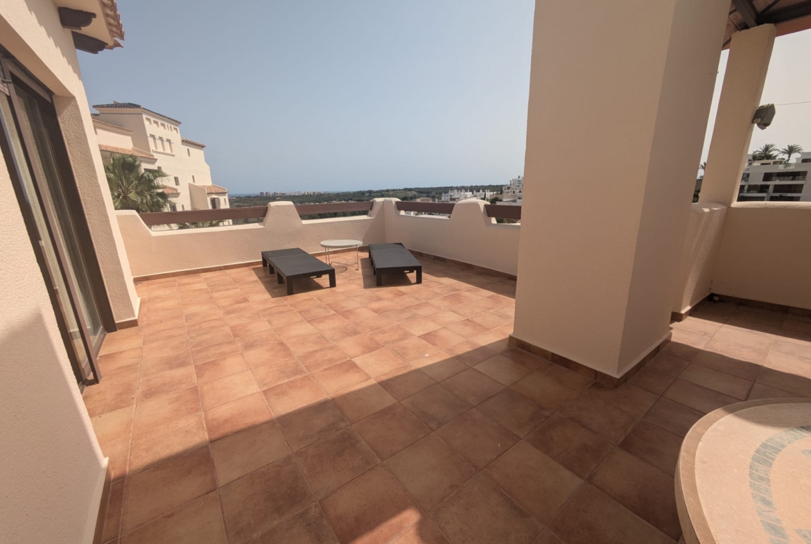 South facing, spacious 3 bed duplex corner penthouse apartment with stunning open views towards the sea in Las Ramblas Golf.
