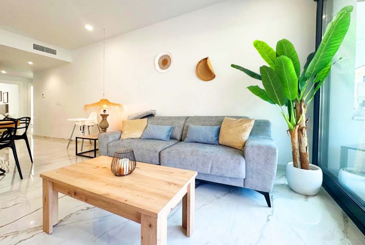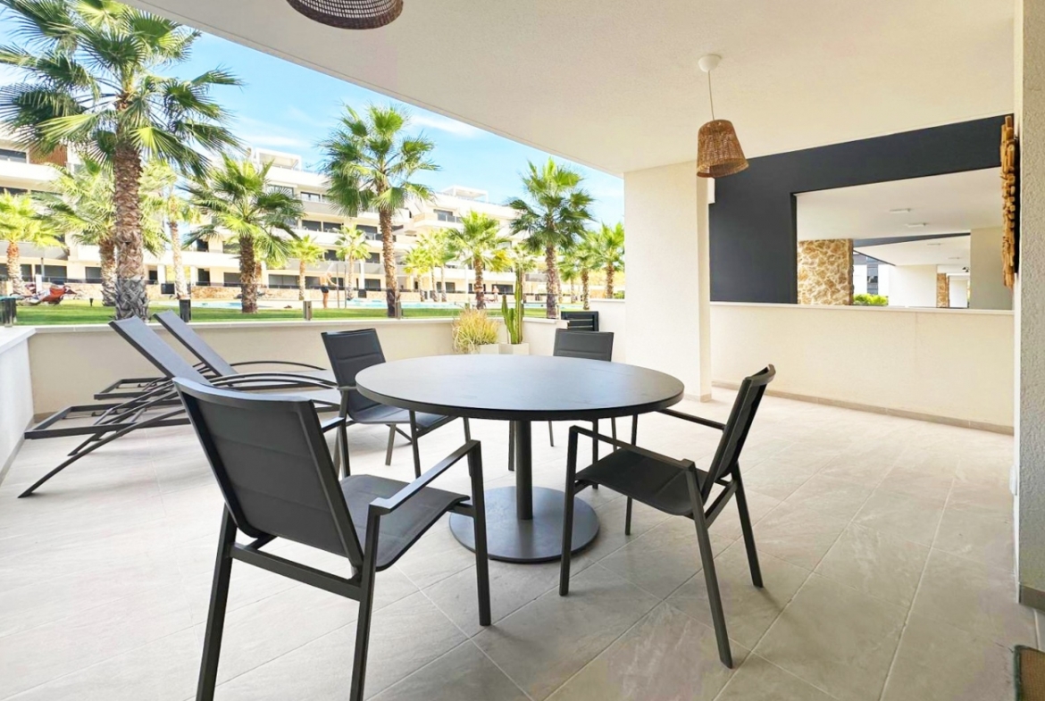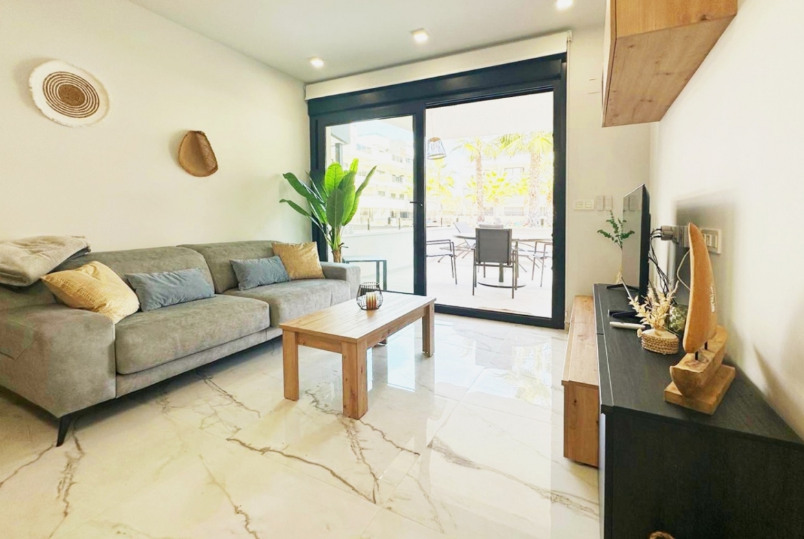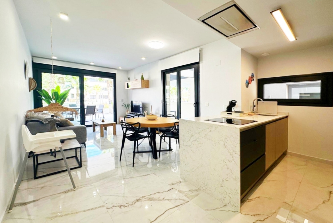 This beautiful, fully furnished luxury apartment, built in 2023, offers the best lifestyle in a privileged setting. Greeted by a bright and welcoming atmosphere, due to its east/west orientation, the apartment, located on the ground floor of the building, offers a living room with 2 accesses to the outdoor terraces where you can enjoy private access to the the community gardens and pool area and the Mediterranean climate.