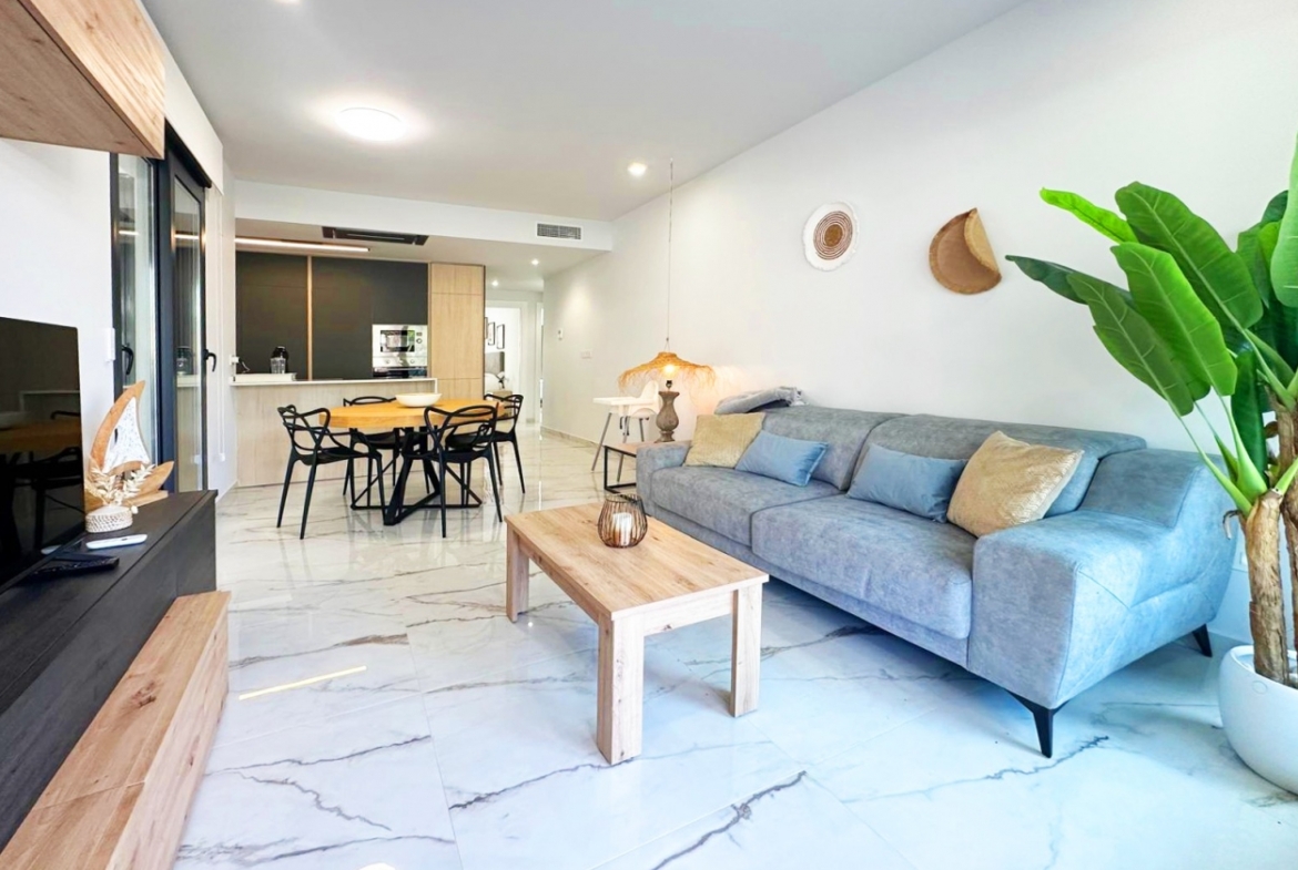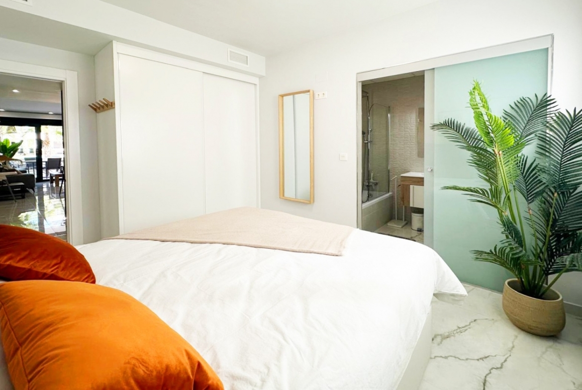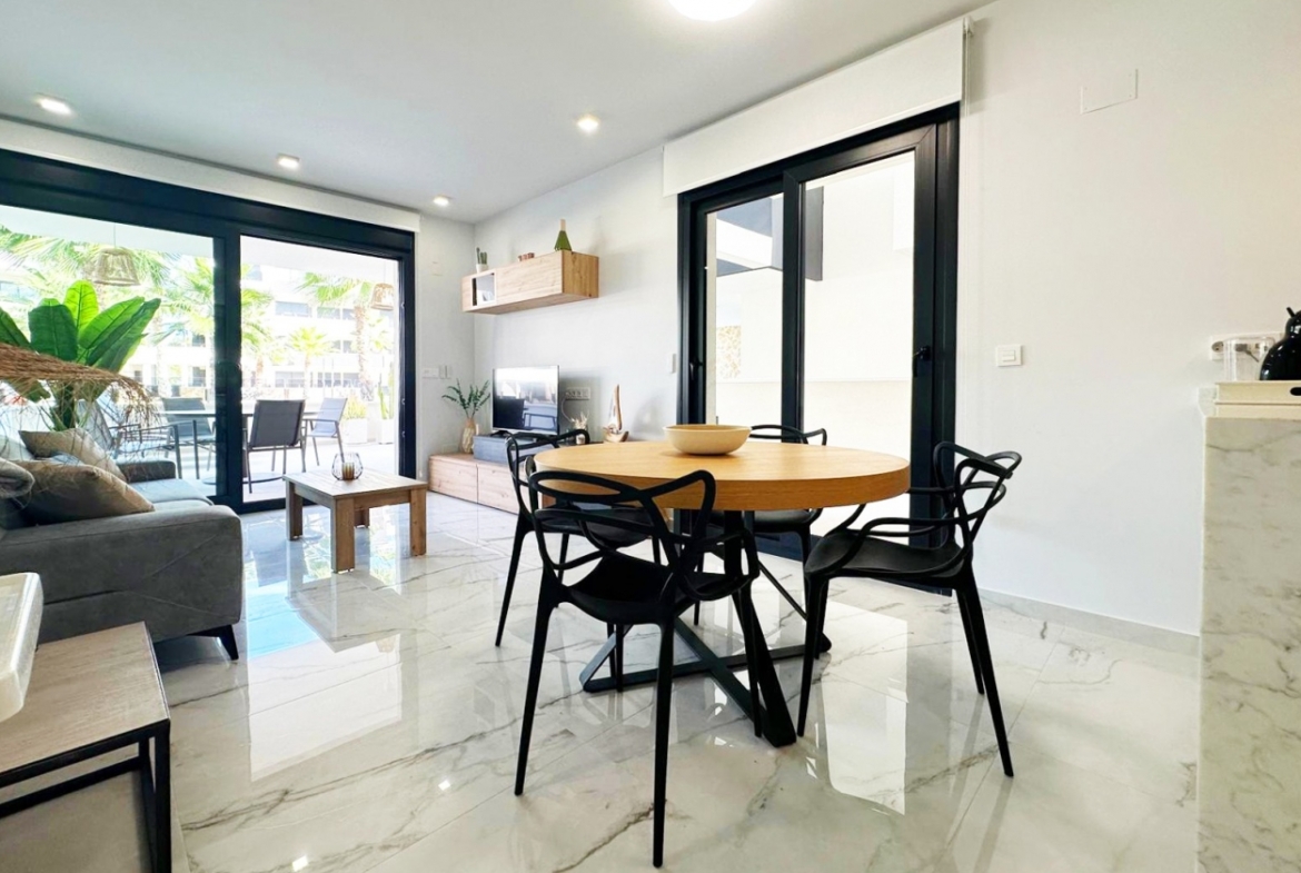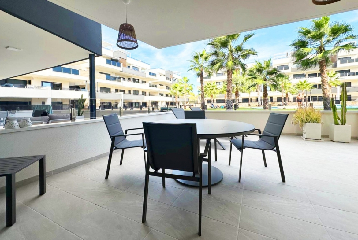 This beautiful, fully furnished luxury apartment, built in 2023, offers the best lifestyle in a privileged setting. Greeted by a bright and welcoming atmosphere, due to its east/west orientation, the apartment, located on the ground floor of the building, offers a living room with 2 accesses to the outdoor terraces where you can enjoy private access to the the community gardens and pool area and the Mediterranean climate.