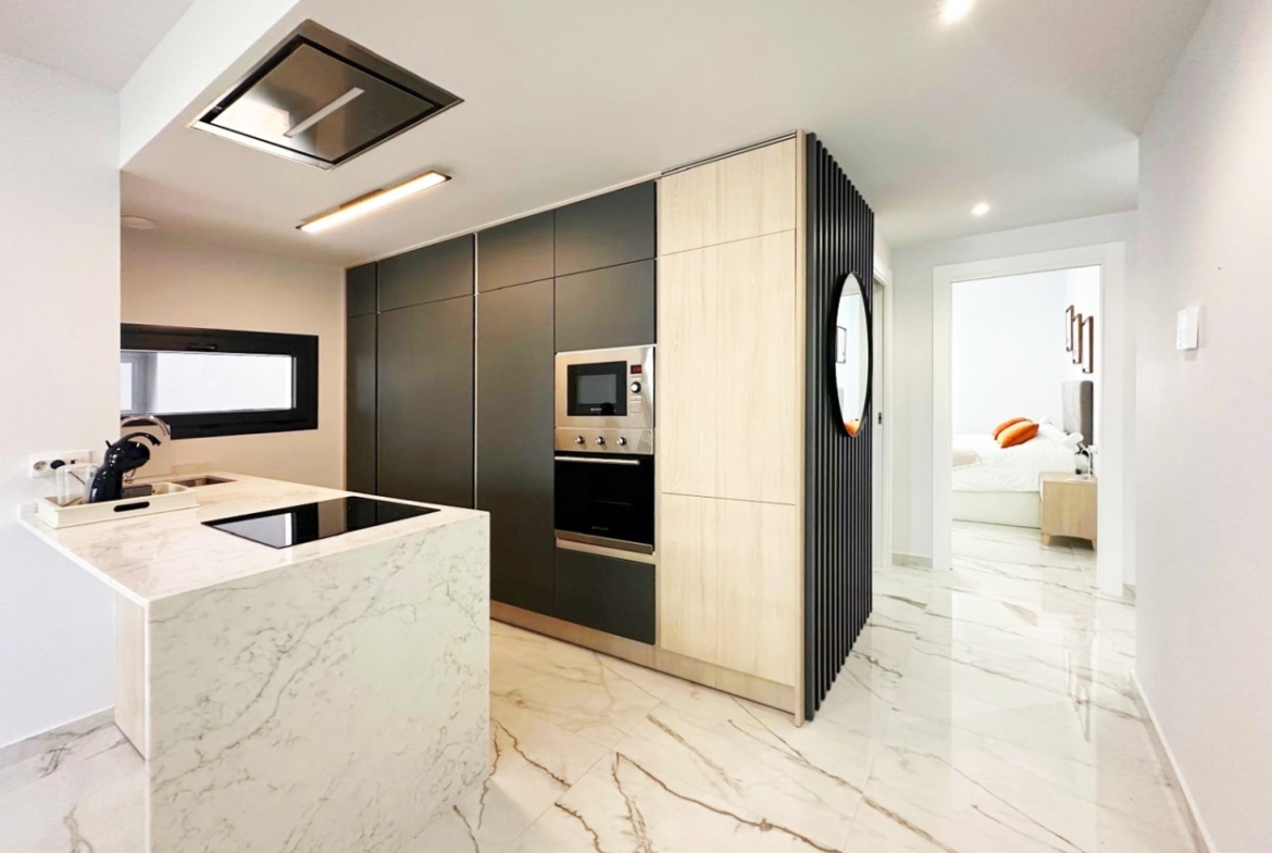 The kitchen is the epitome of luxury, boasting high-quality finishes and seamlessly integrating with the living room, creating an ideal space for sharing moments with family and friends. From the living room, you access a charming 14 sq. m terrace, where you can enjoy unobstructed views and the Mediterranean climate.